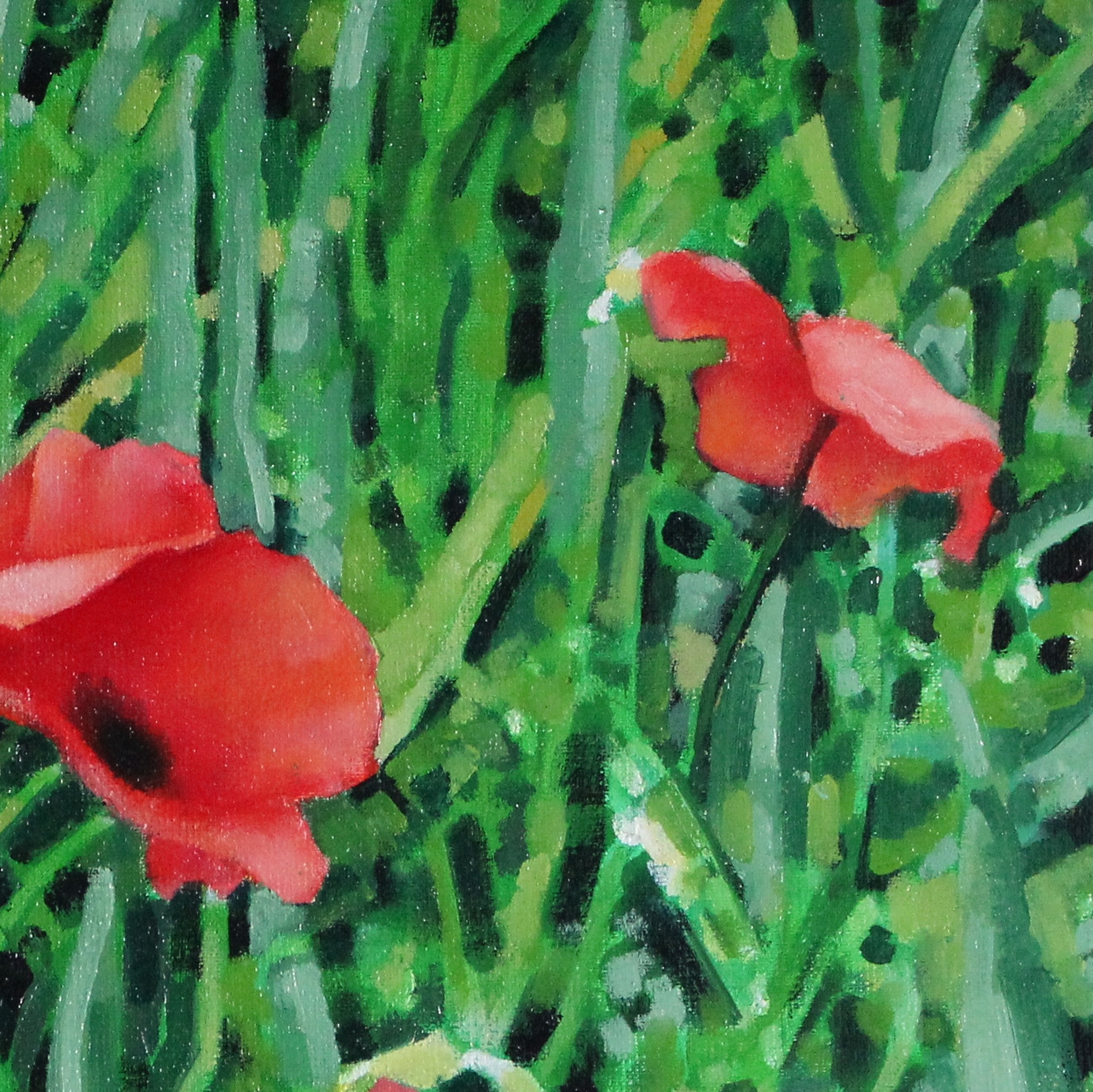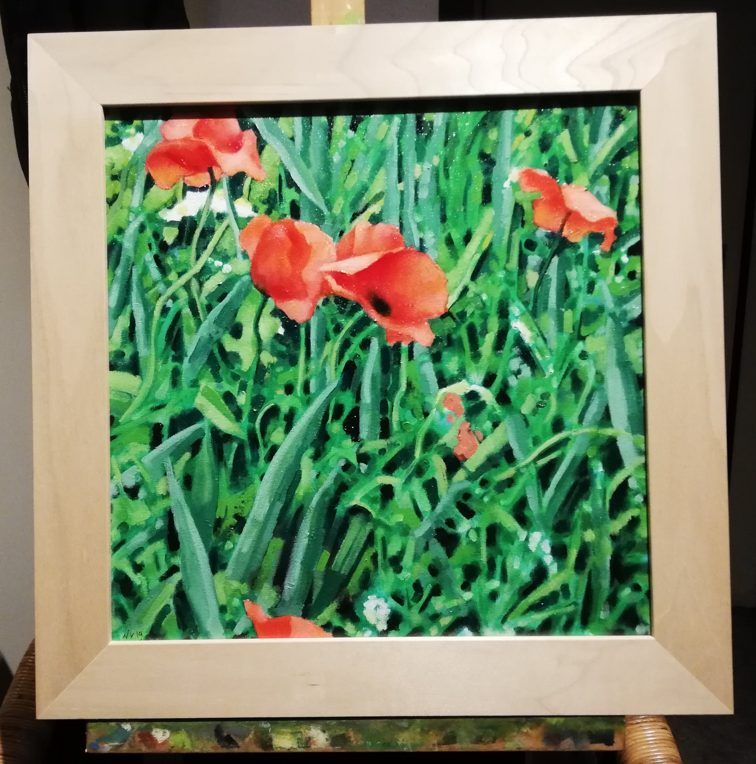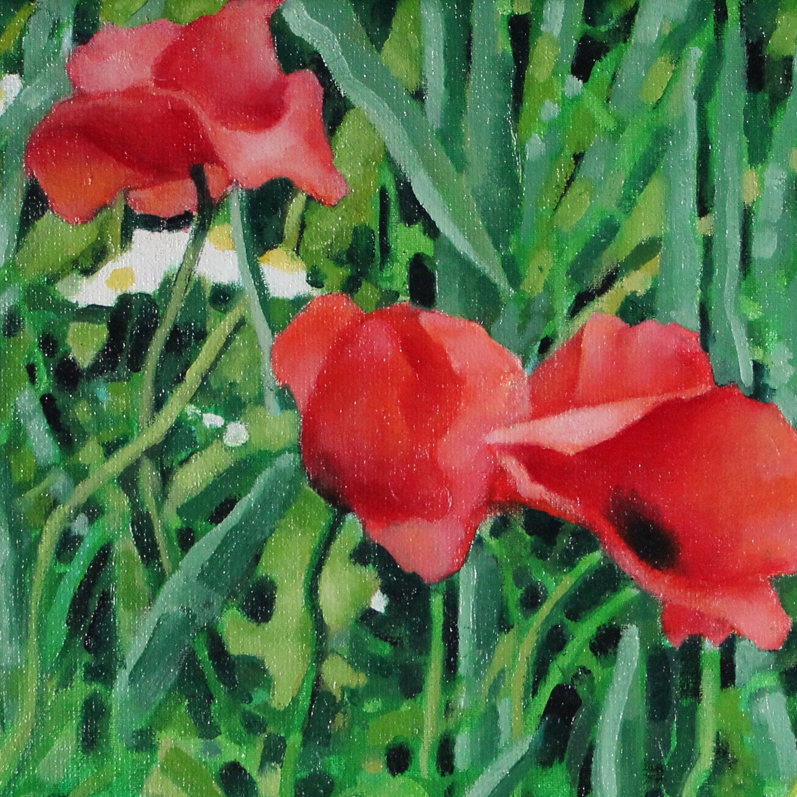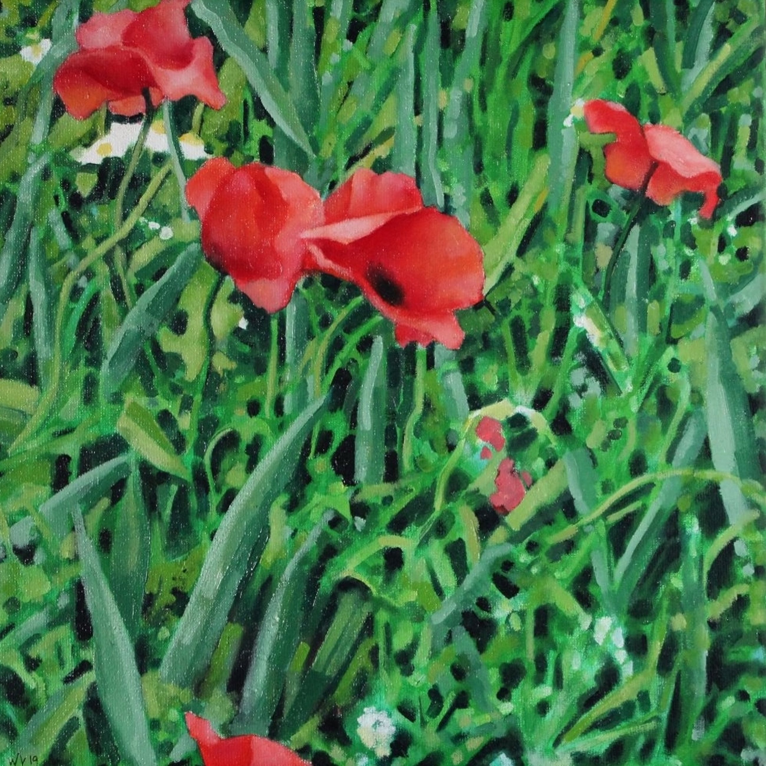 Willem Visser is figuratief schilder. Hij volgde tussen 1974 - 1979 een opleiding aan de Akademie van Beeldende Kunsten in Rotterdam. Van 1979 t/m 2002 was hij werkzaam als beeldend kunstenaar met exposities in Nederland en België. Sinds 2017 heeft hij het schilderen weer opgepakt. De close up van klaprozen tegen een groene achtergrond waar een weelderige vegetatie te zien is, dateert uit 2019. Willem Visser woont en werkt in Rotterdam.