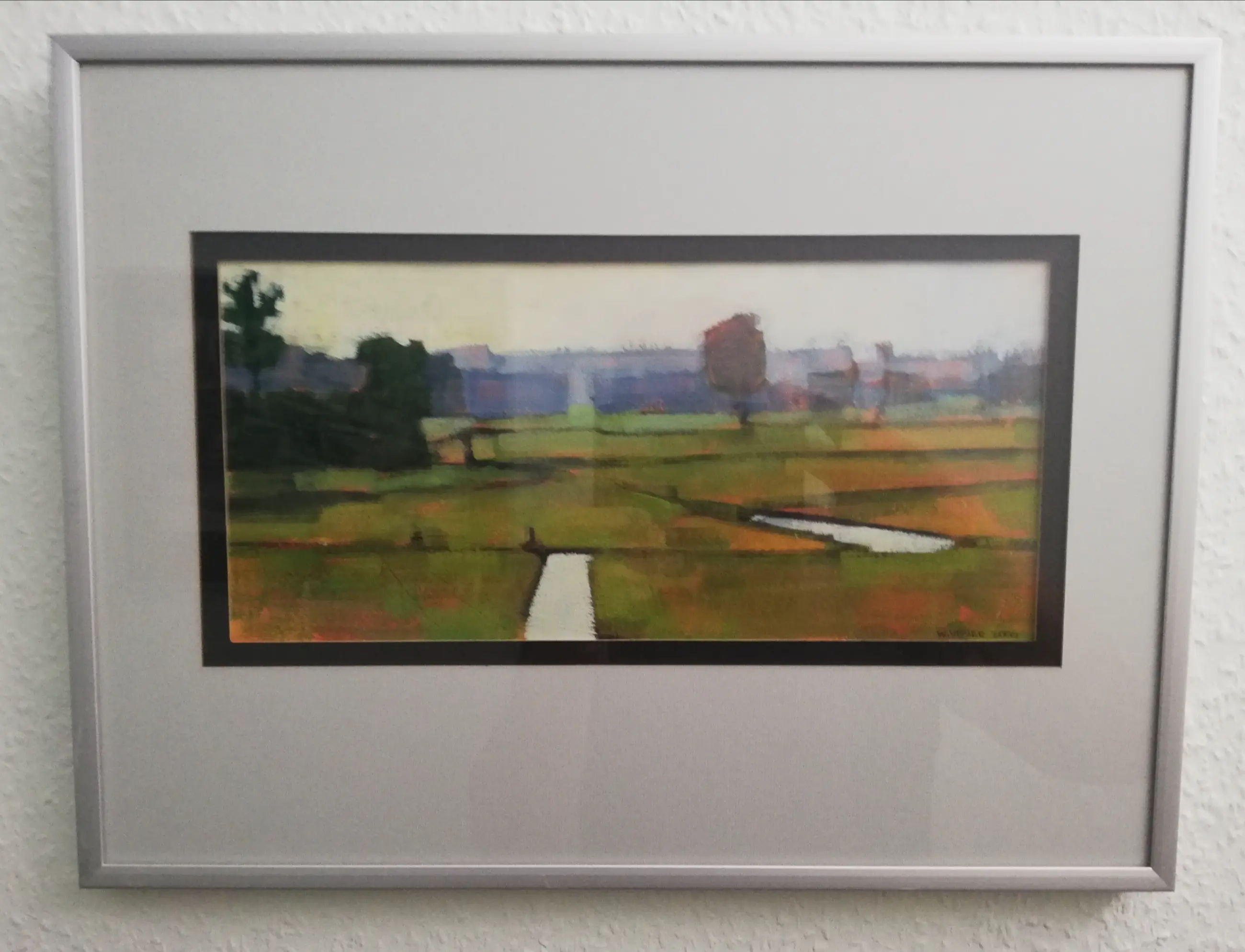 Willem Visser volgde van 1974 t/m 1979 een opleiding op de Rotterdamse Academie. Tussen 1979 en 2002 exposeerde hij regelmatig landschappen en stadsgezichten in Nederland en België. Vooral het polderlandschap had in die tijd zijn belangstelling. Werk van hem bevindt zich in particuliere en openbare collecties in binnen- en buitenland. Tussen 2003 en 2017 stond het schilderen op een laag pitje. In deze tijd was hij werkzaam als projectondersteuner, ontwerper en webmaster bij een non-profit organisatie. In 2017 pakte hij het schilderen weer op en ging - naar eigen zeggen - weer verder met waar hij 'in 2002 was gestopt'. Dit polderlandschap uit 2000 is onderdeel van een serie kleine acrylstudies die hij in de jaren negentig maakte van polderlandschappen in de Krimpenerwaard en rond Rotterdam. Wat hem in dit landschap fascineerde was de dieptewerking door lijnen die allemaal naar de horizon van het vlakke land leiden en de kleuren die aan de horizon steeds meer lijken samen te vloeien in een waas van blauw-groene tinten.