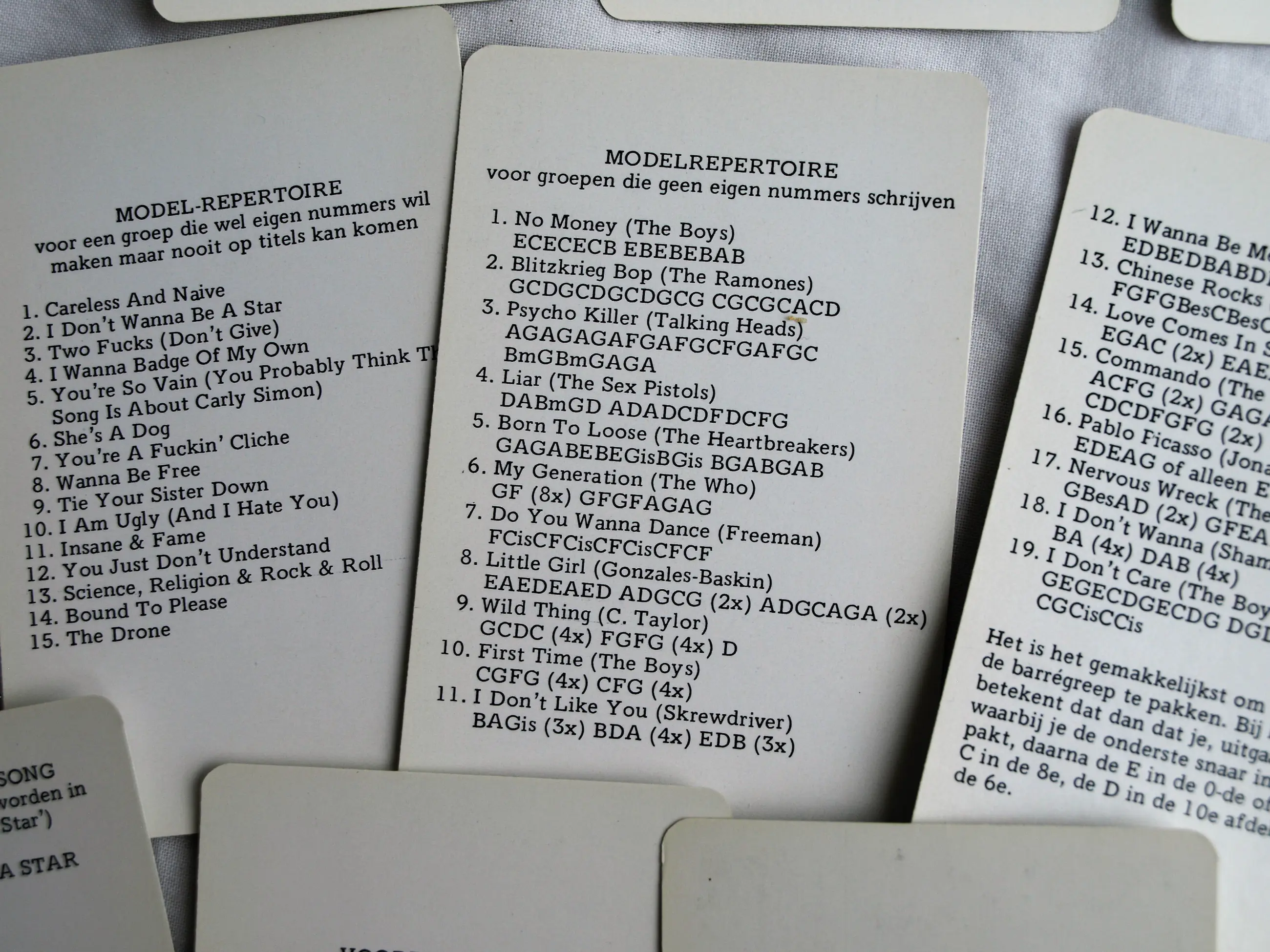 -Het kwartetspel bestaat uit 60 karikaturen van artiesten van 15 bands + 12 extra kaarten met de spelregels en informatie m.b.t. punk-bands.