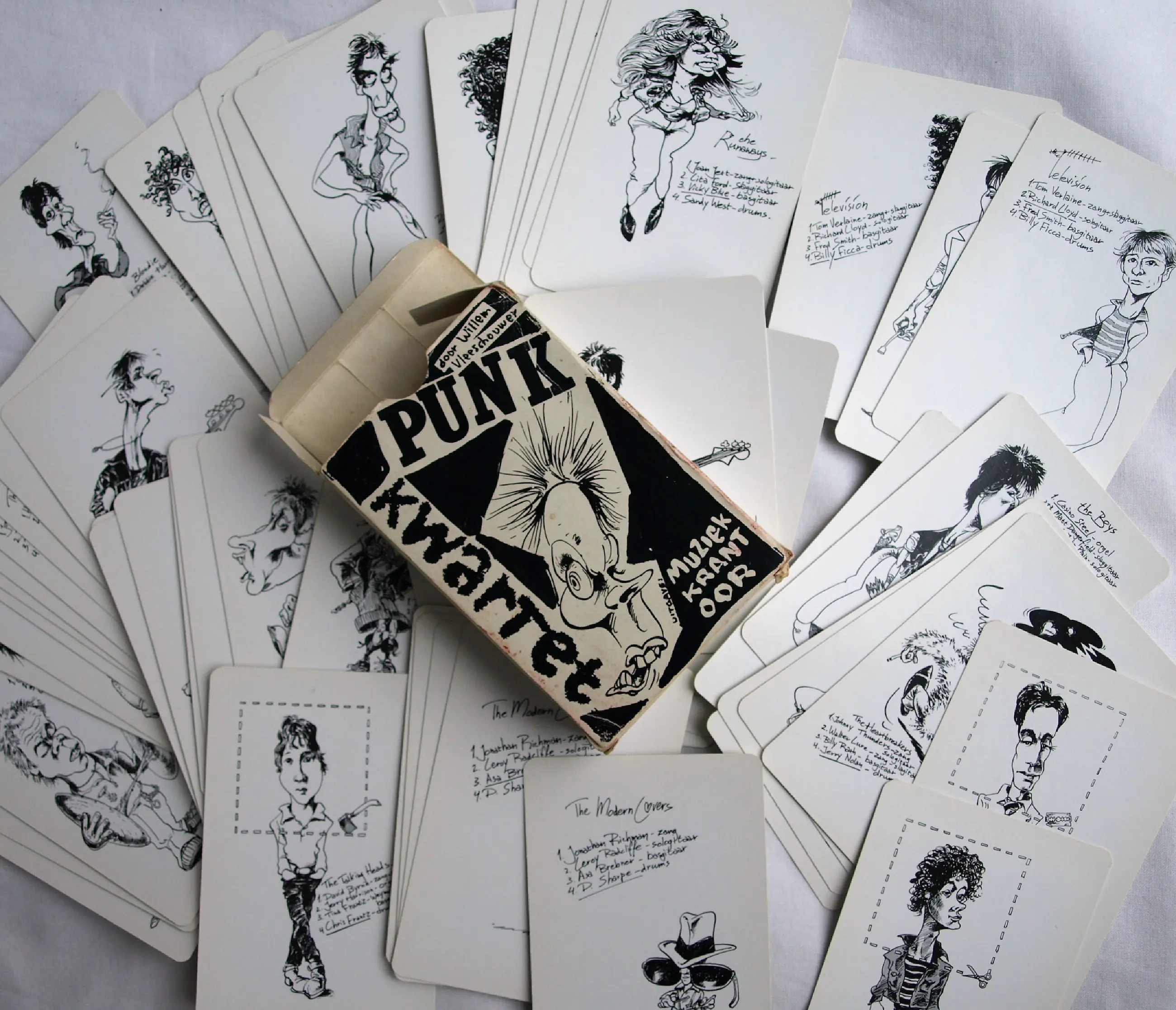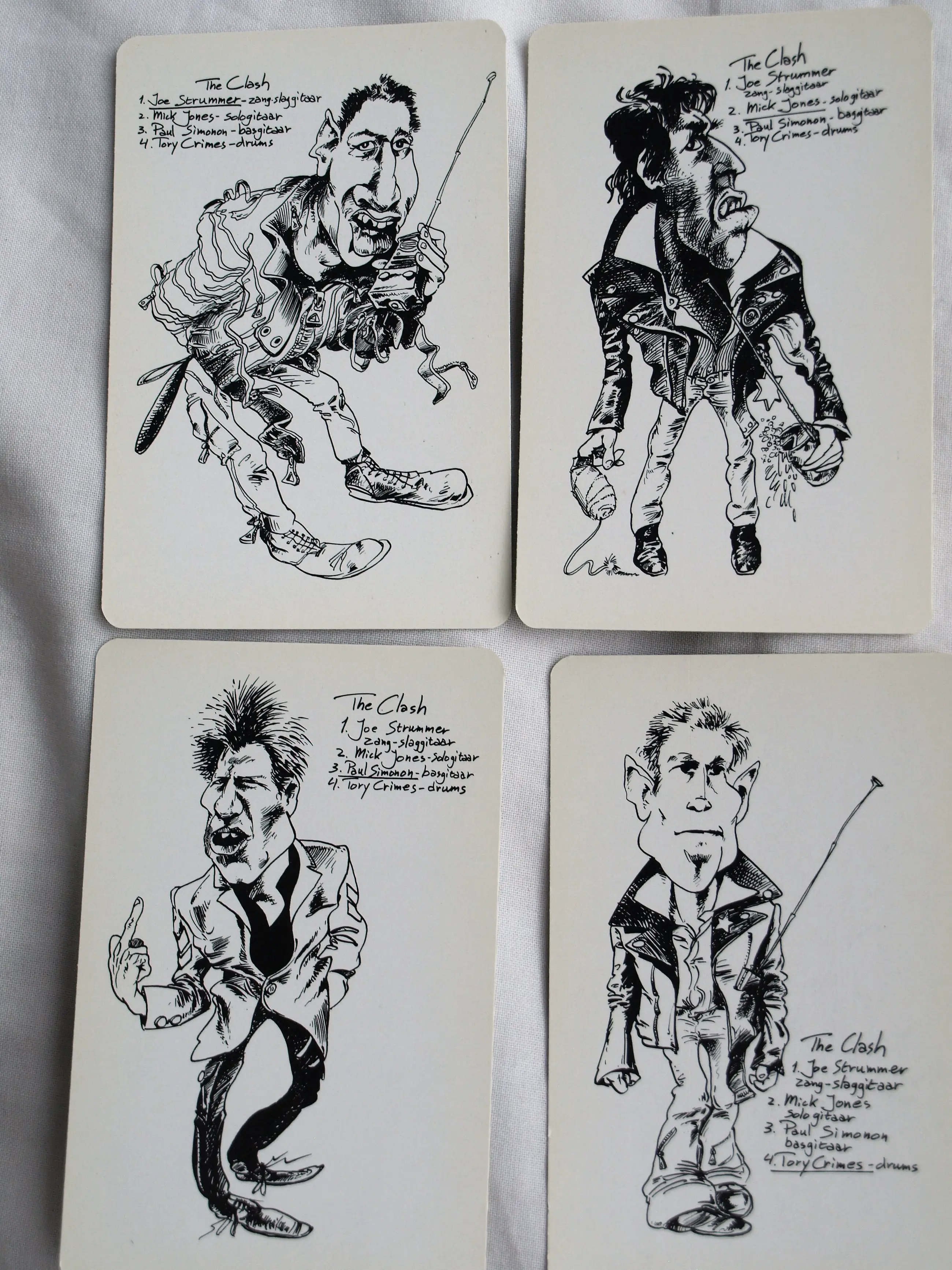 Karikaturen van Punk-bands en Punk-artiesten, gemaakt door de Nederlandse kunstenaar Willem Vleeschouwer (1950).