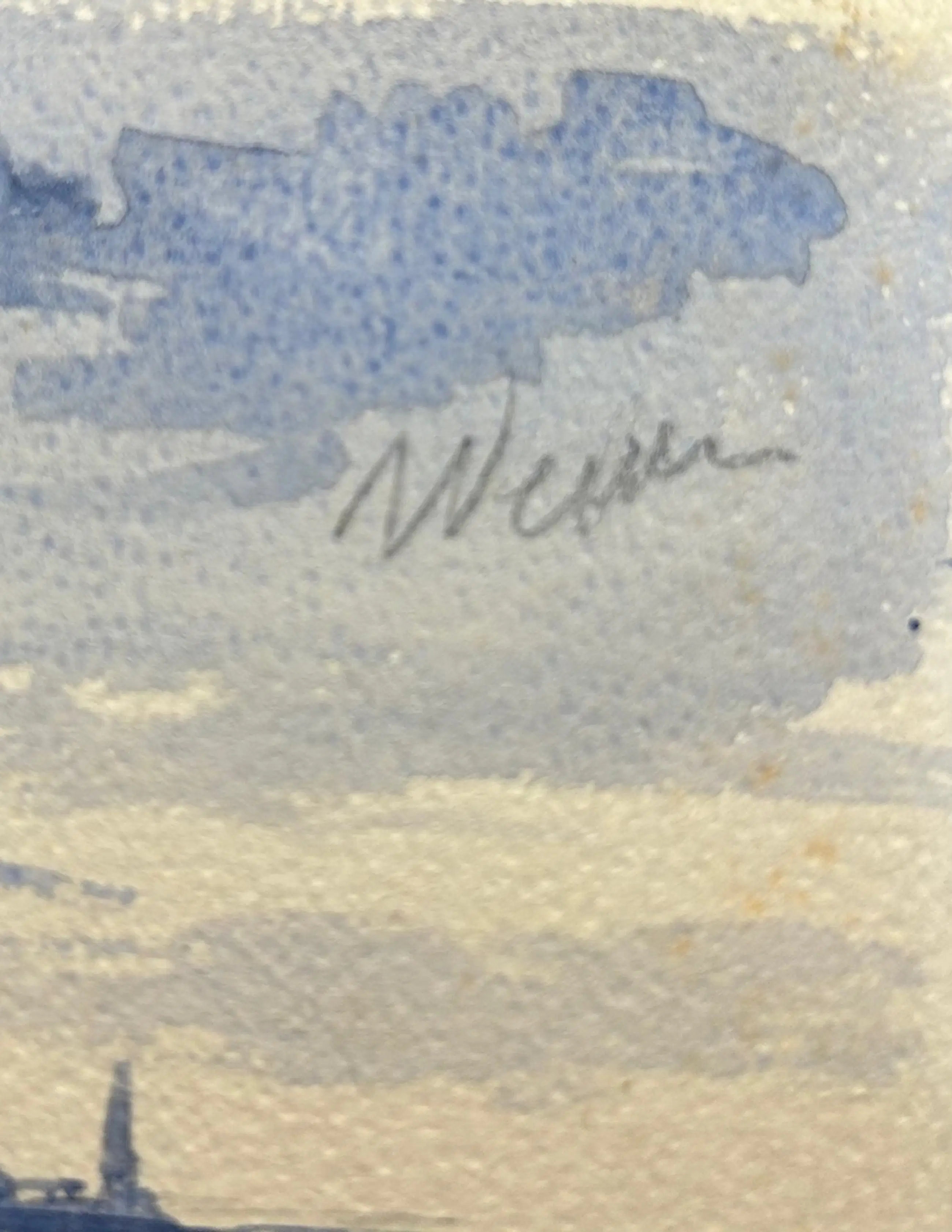 Kleine aquarel - aan de voorzijde potloodgesigneerd "Weissen". Op de achterzijde met potlood door de vorige eigenaar: "Gekocht van Wim van Woerkom". Dat is de Nijmeegse schilder dus.