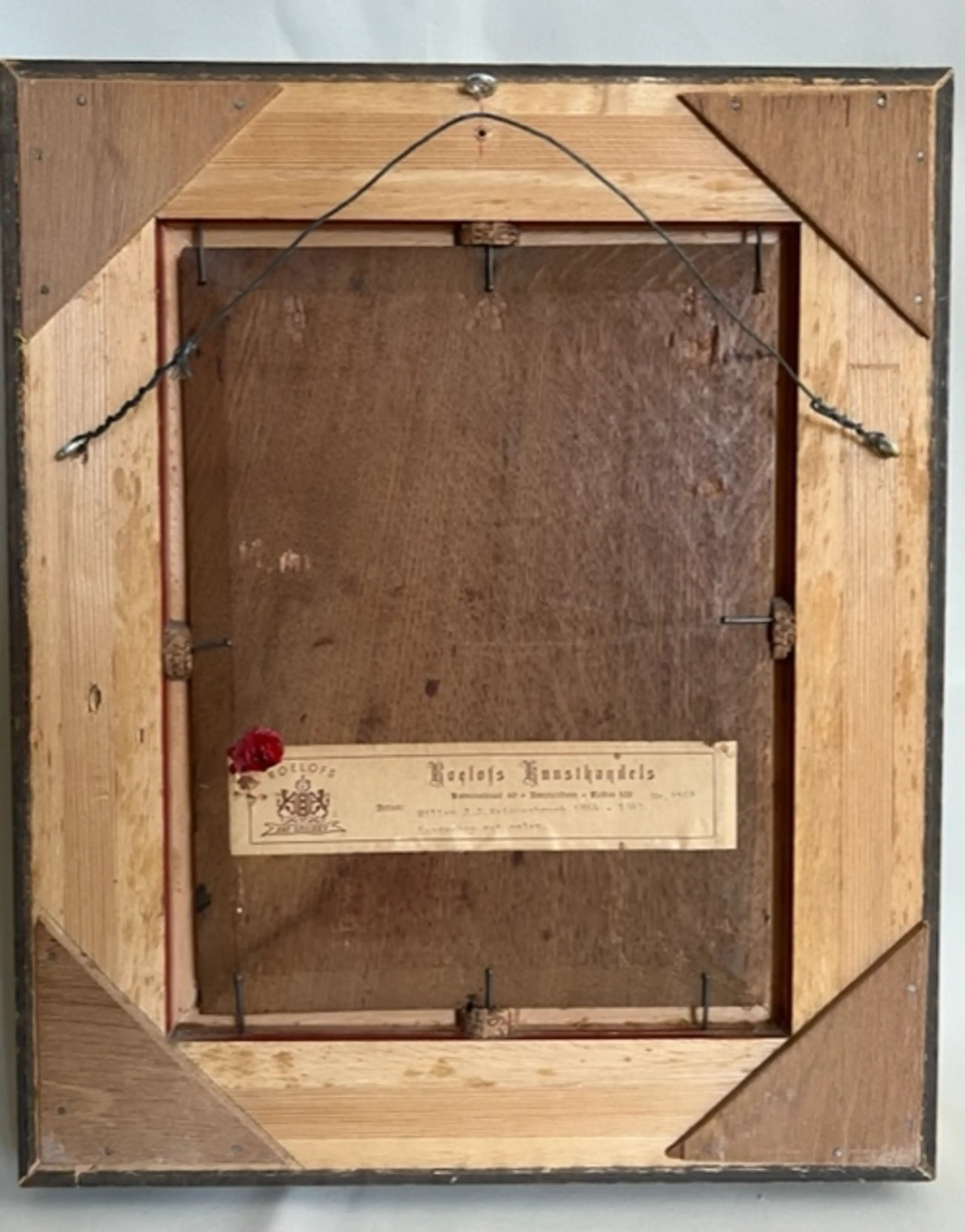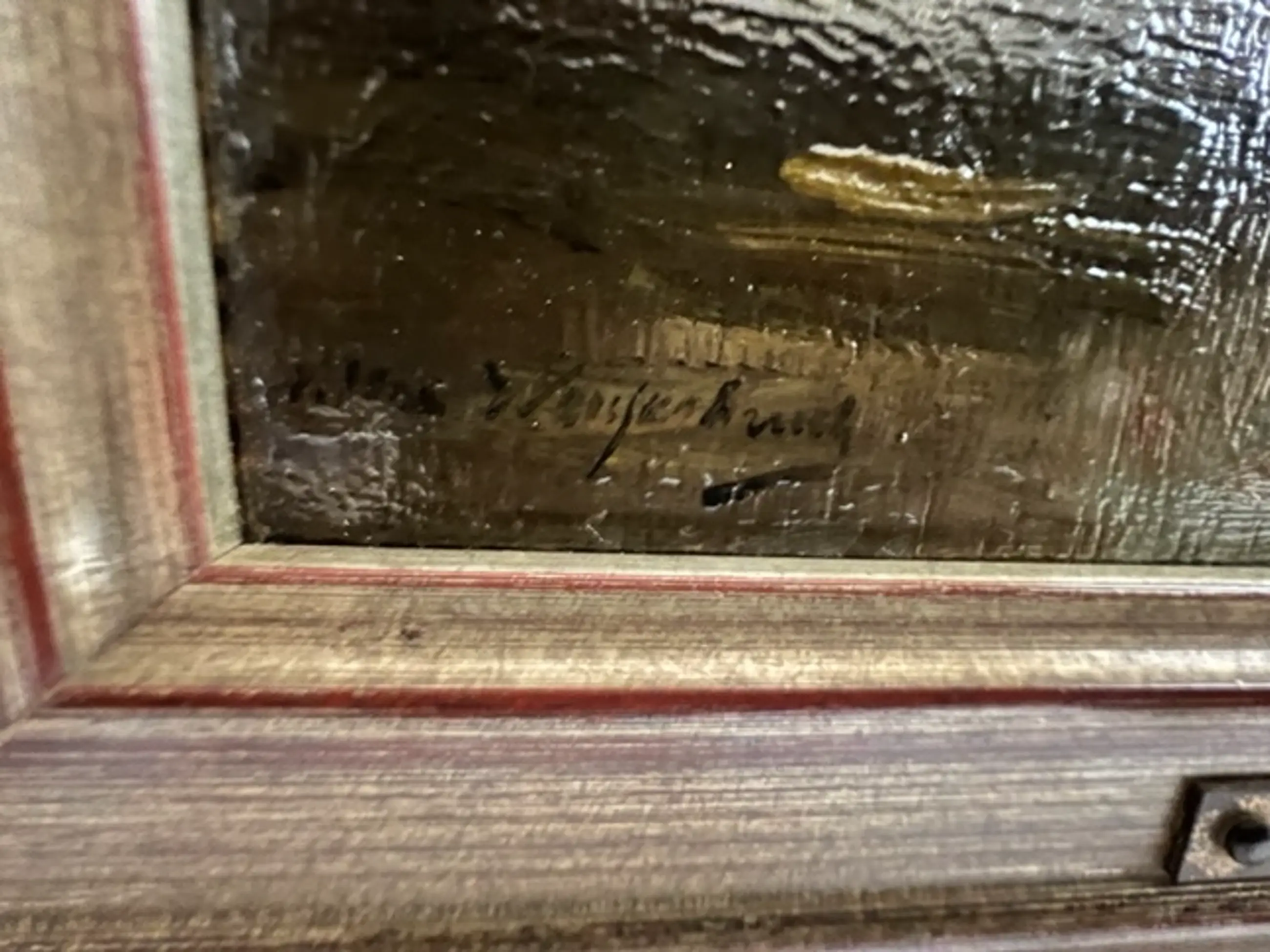 Olieverf op paneel. Gesigneerd rechtonder. Ingelijst . De lijst heeft plaatje met de naam van de kunstenaar