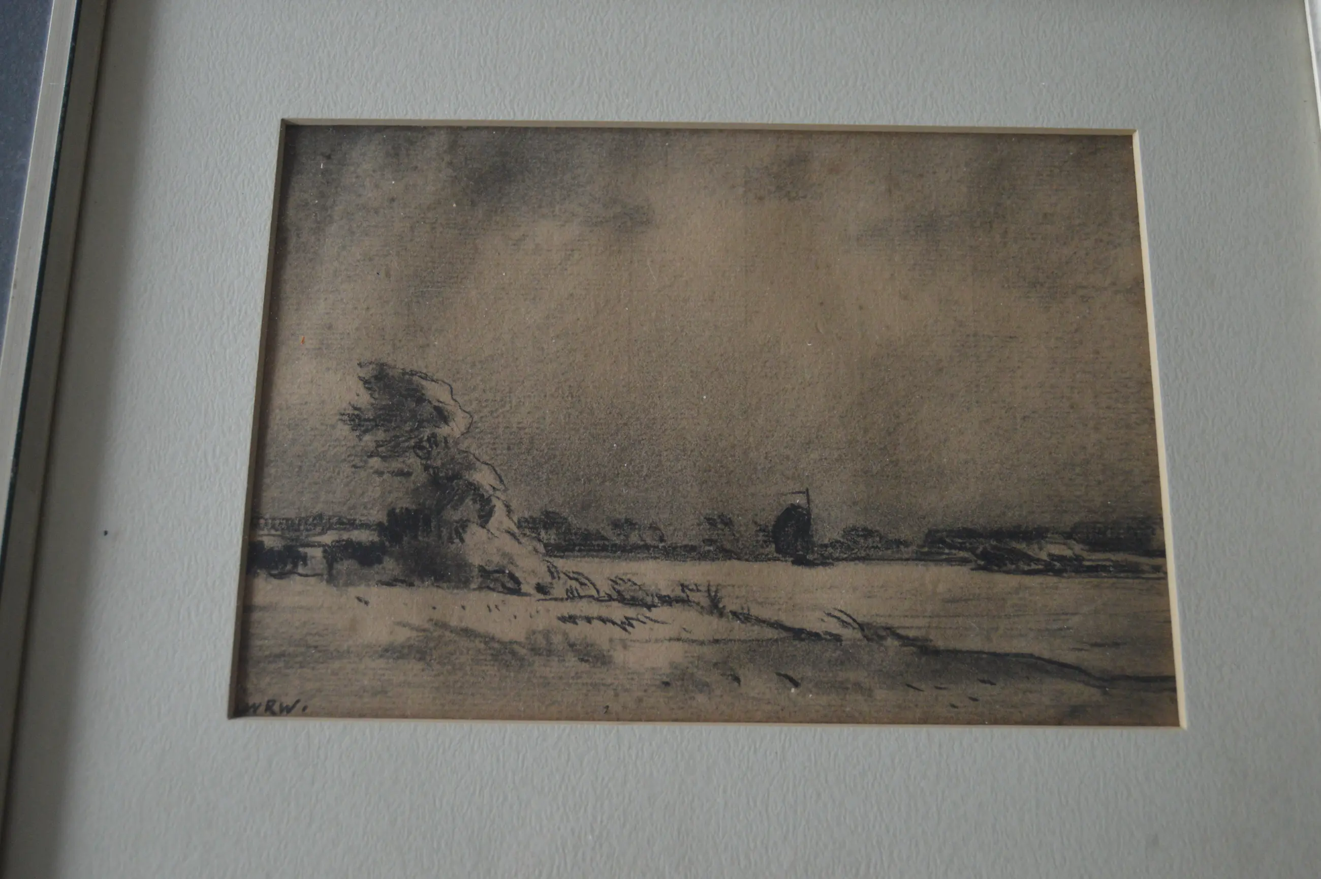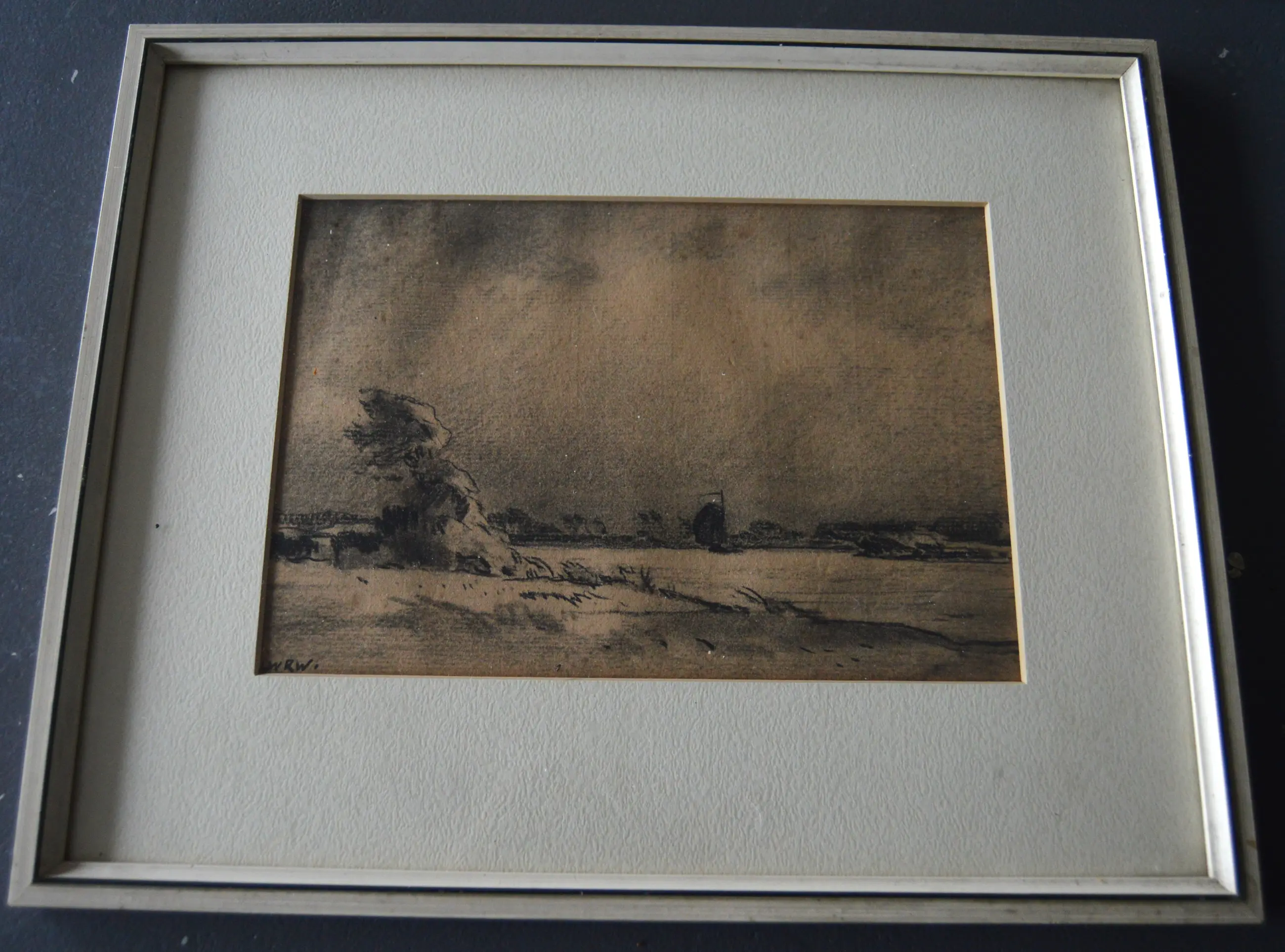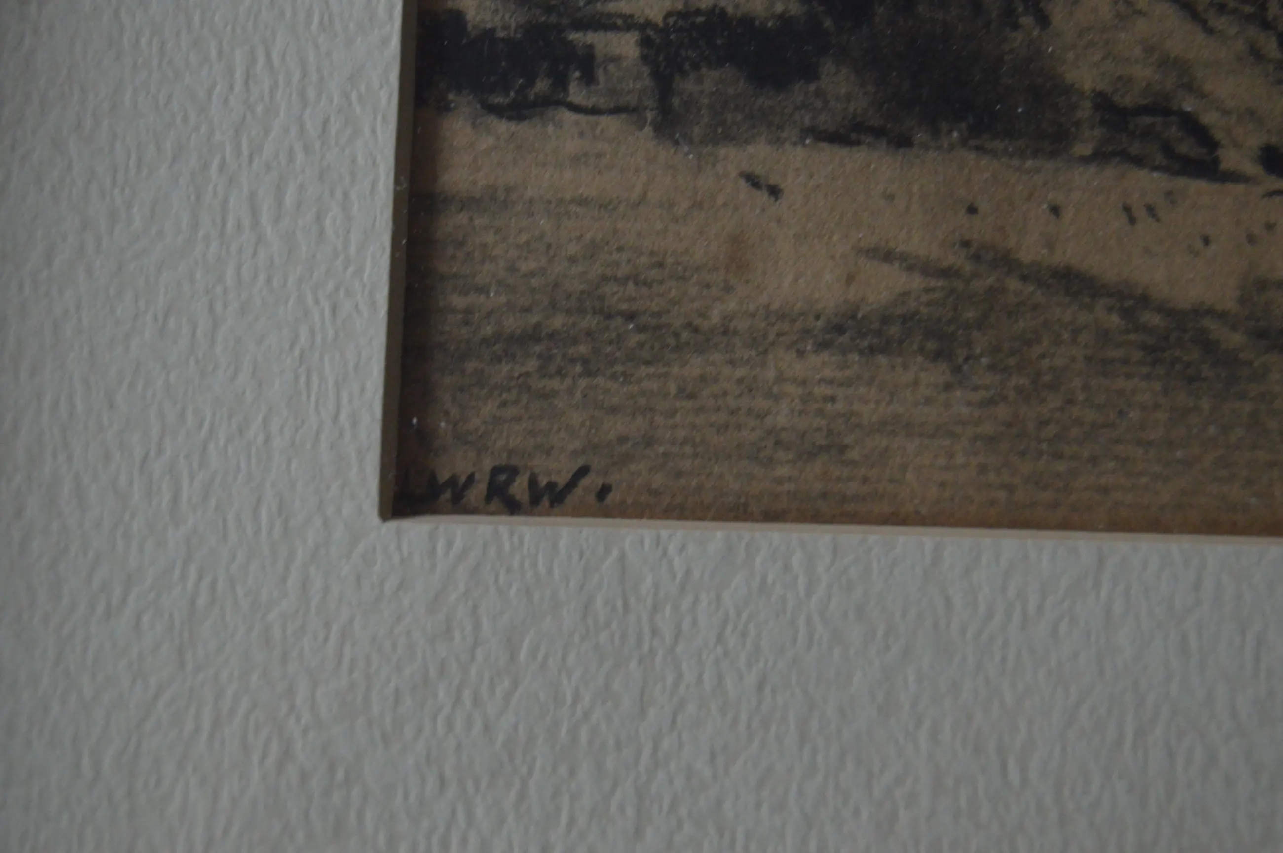Ingelijst achter glas. Monogram linksonder in het werk.