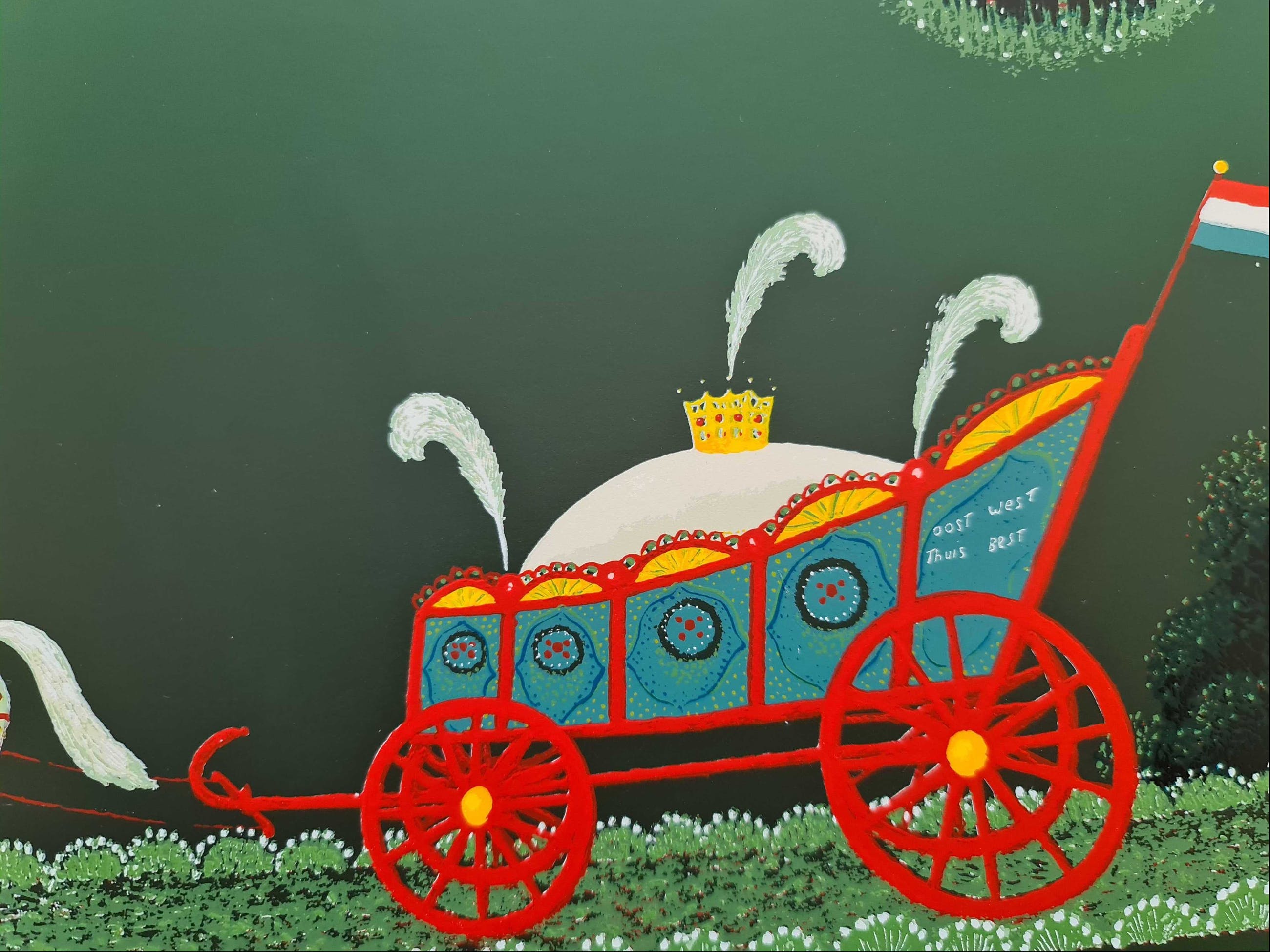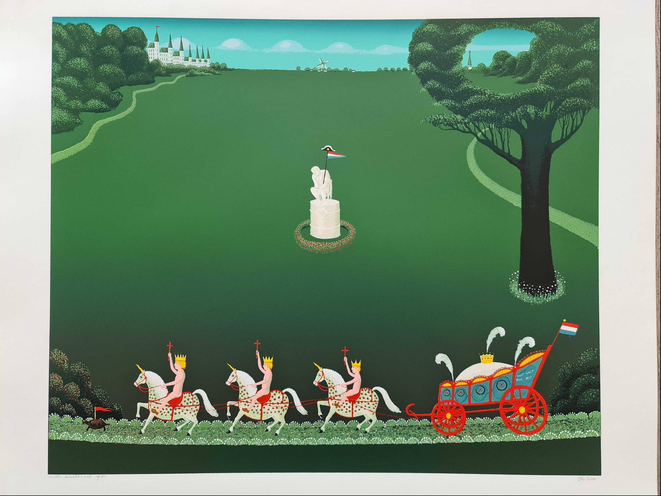| Mooie zeefdruk van Willem Westbroek. De linker boven en benedenhoek zit een vouw. Zie foto' s voor details. | |||||||||||