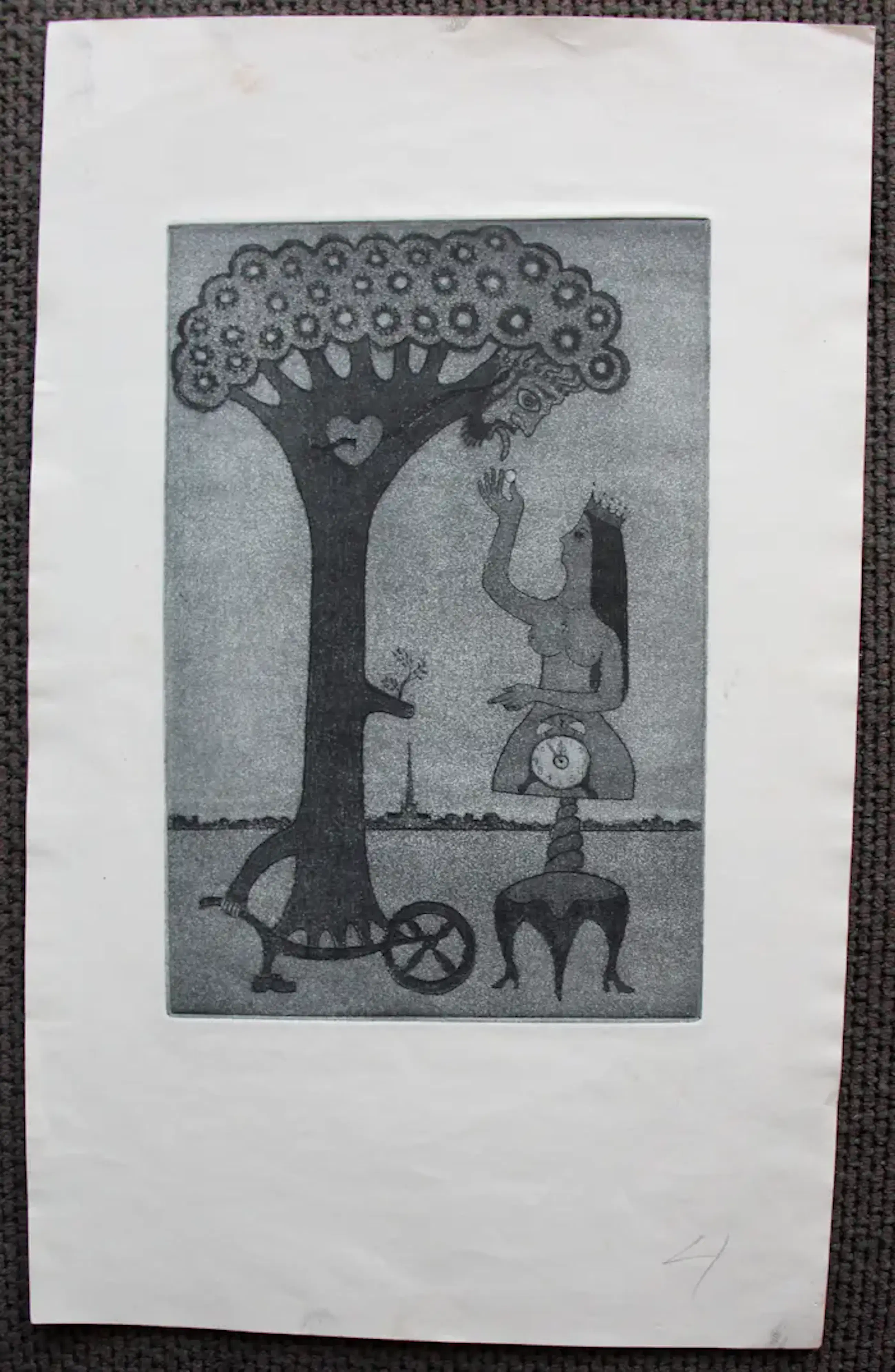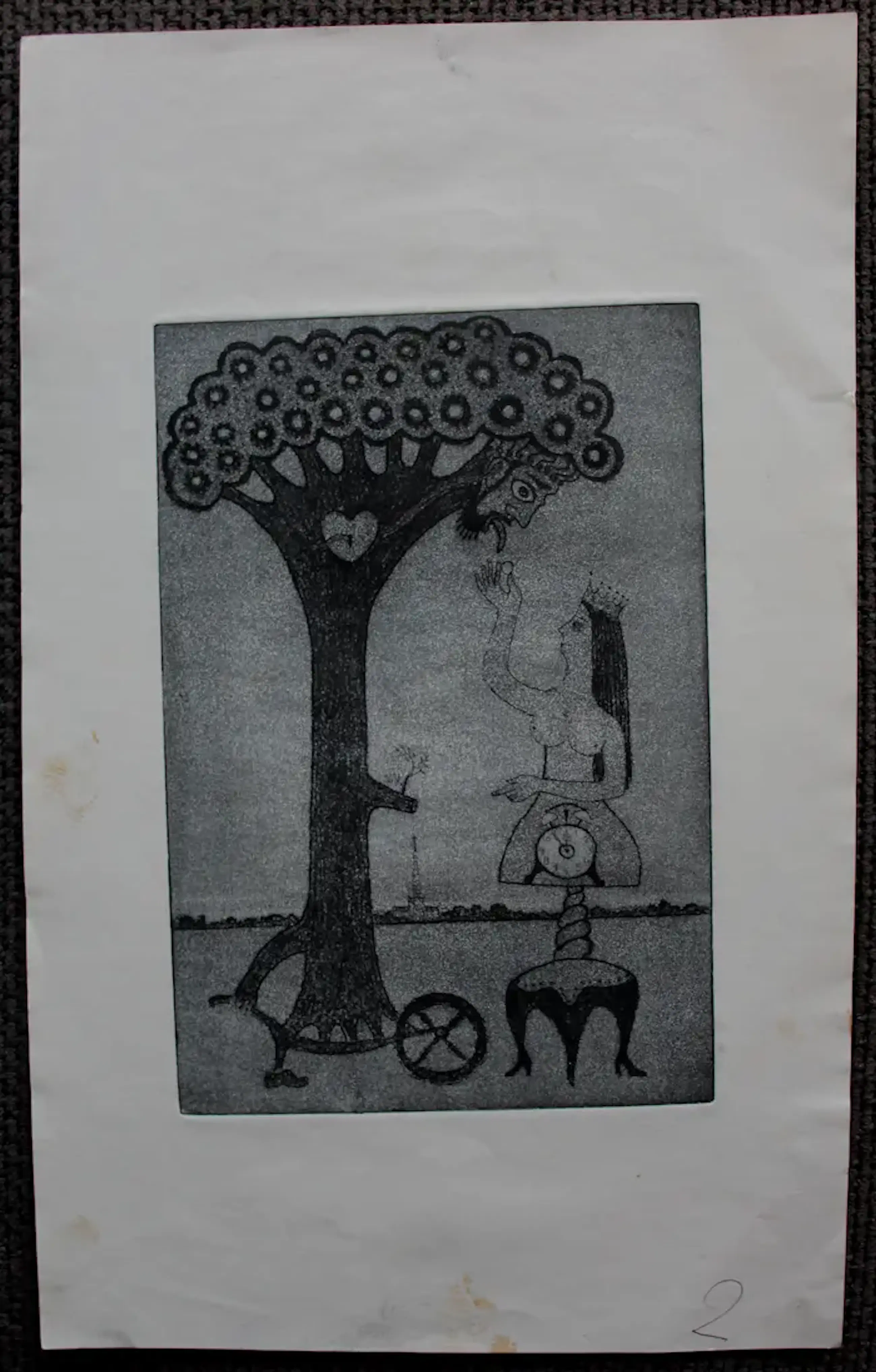 Willem Westbroek - 2 etsen op 1 blad: "voor Joop" - 1971