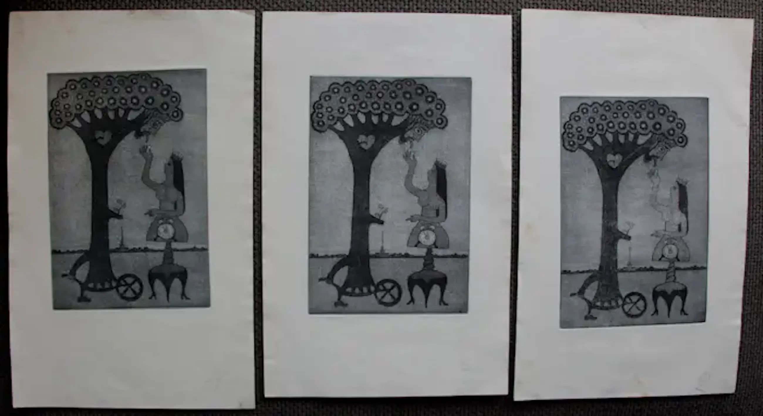 2 etsen op 1 blad van Willem Westbroek. Jaar: 1971. Met opdracht: "Voor Joop". Afmetingen blad: H16.5 x b21cm. Afmetingen per voorstelling: H13 x b9.5cm. Links onderaan gesigneerd door de kunstenaar. De authenticiteit van dit werk wordt volledig gegarandeerd. Een certificaat van echtheid kan, op aanvraag, worden gemaild.