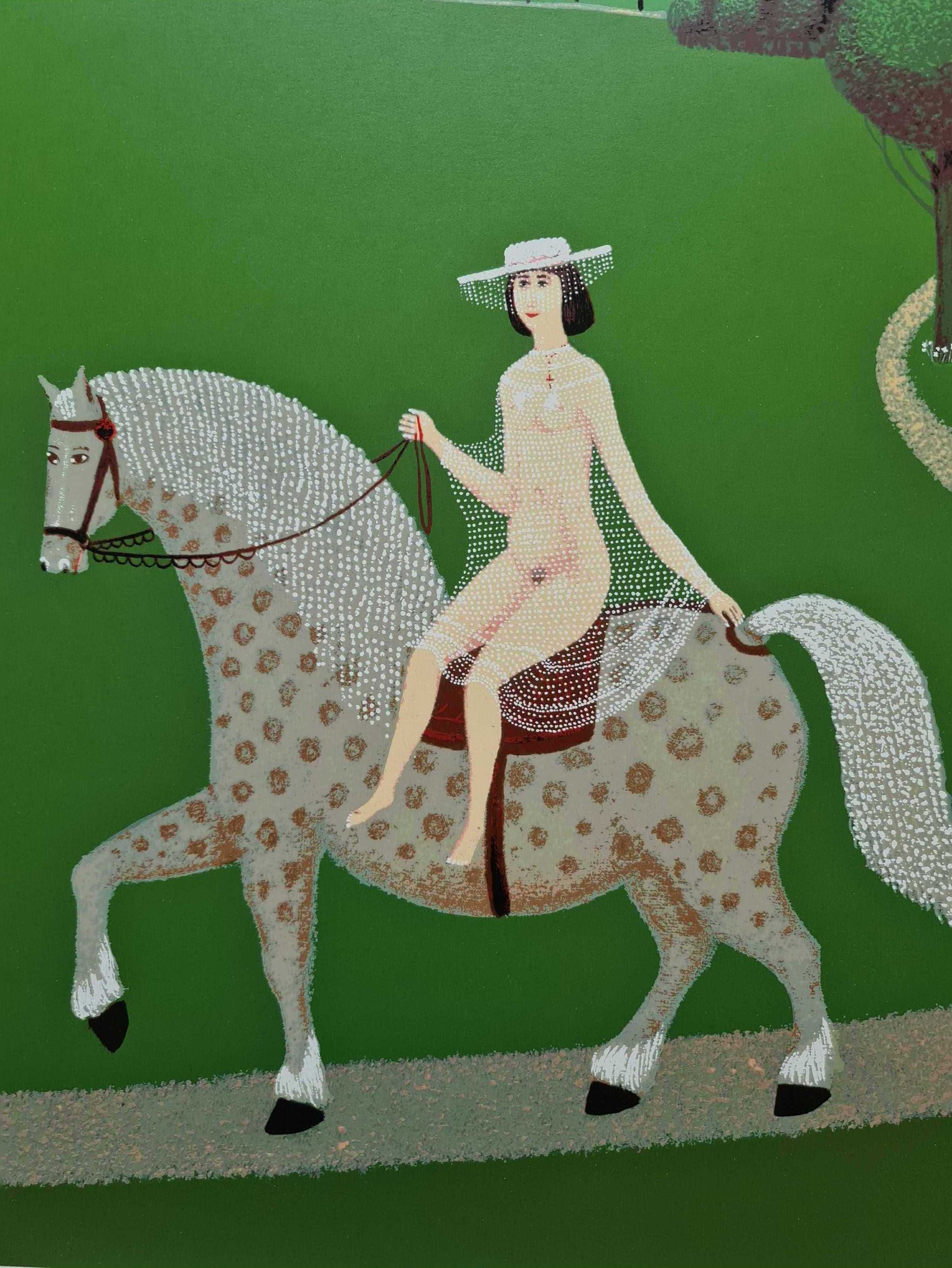 Achter het paard zit een klein vlekje in de druk. Ontstaan tijdens het drukken Verder in goed staat. | |||||||||||