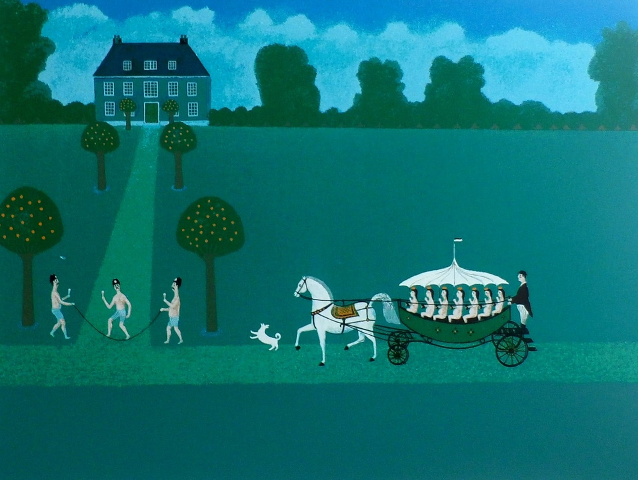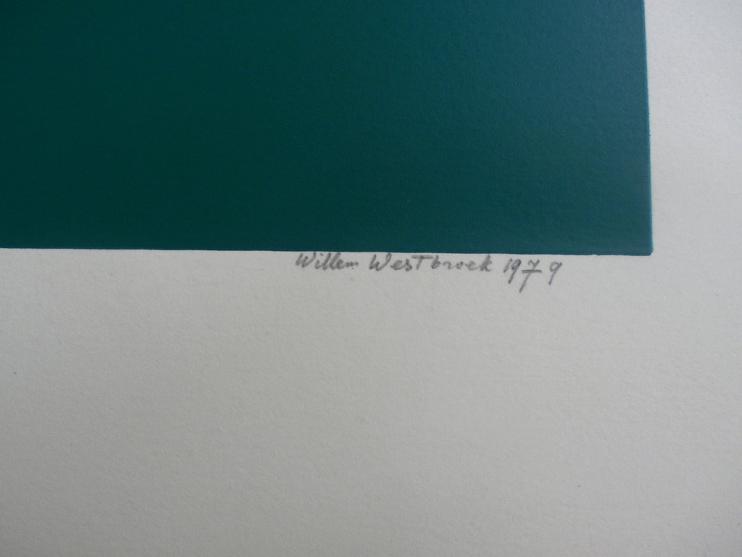 Kleurenzeefdruk van Willem Westbroek uit 1979. Het werk is rechtsonder met potlood gesigneerd en gedateerd. Afmetingen blad: H74 x b89 cm. Afmetingen voorstelling: H44 x b58 cm. Conditie: de voorstelling is in perfecte staat. Aan de randen van het blad zit hier en daar een kreukel. De rand is ook licht verkleurd. Bij inlijsting valt dit onder de passe-partout.