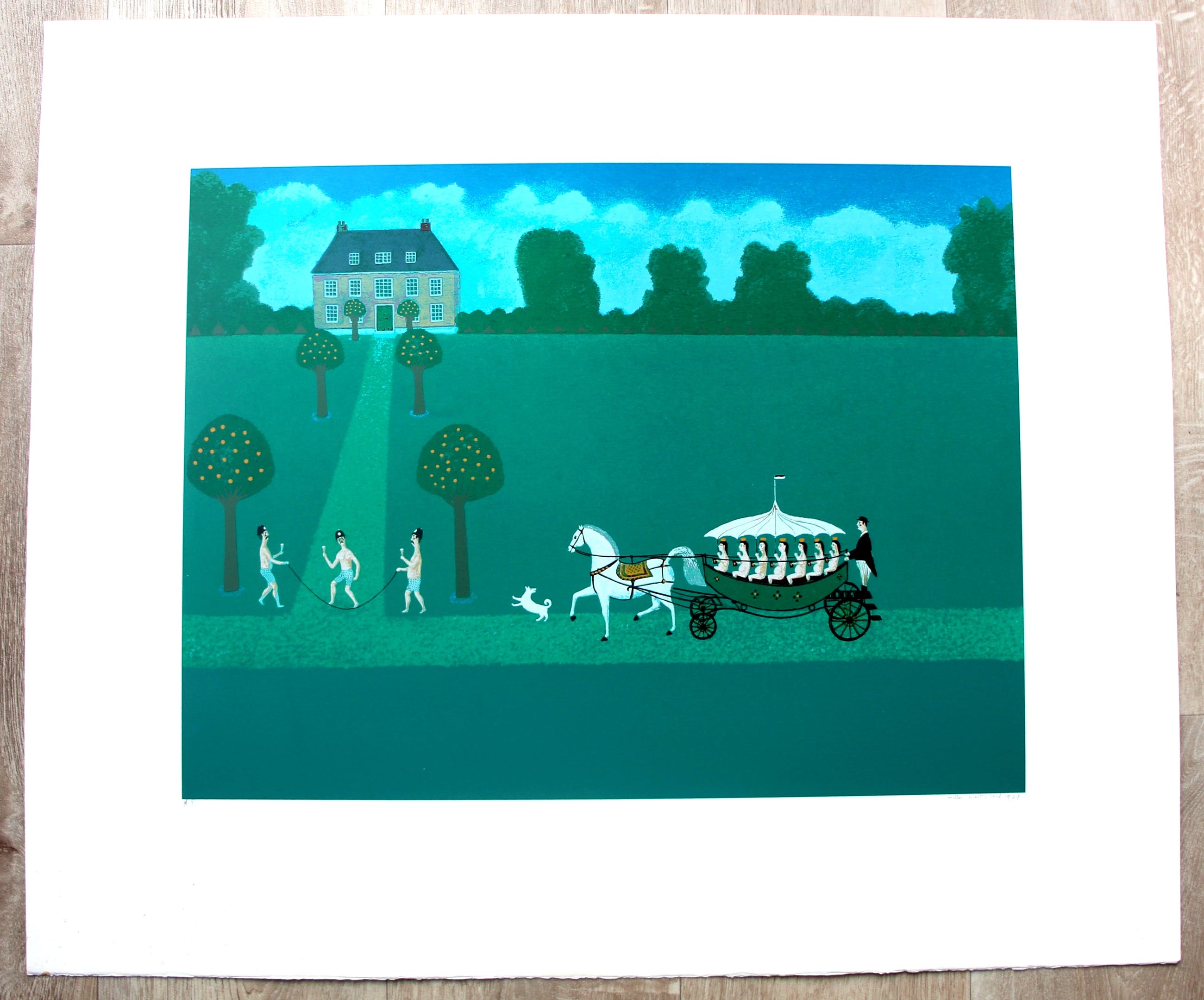 Kleurenzeefdruk van Willem Westbroek uit 1979. Afmetingen blad: H74 x b89 cm. Afmetingen voorstelling: H44 x b58 cm. Het werk is rechtsonder met potlood gesigneerd en gedateerd. De authenticiteit van het aangeboden werk wordt volledig gegarandeerd. Een certificaat van echtheid kan, op aanvraag, worden gemaild.