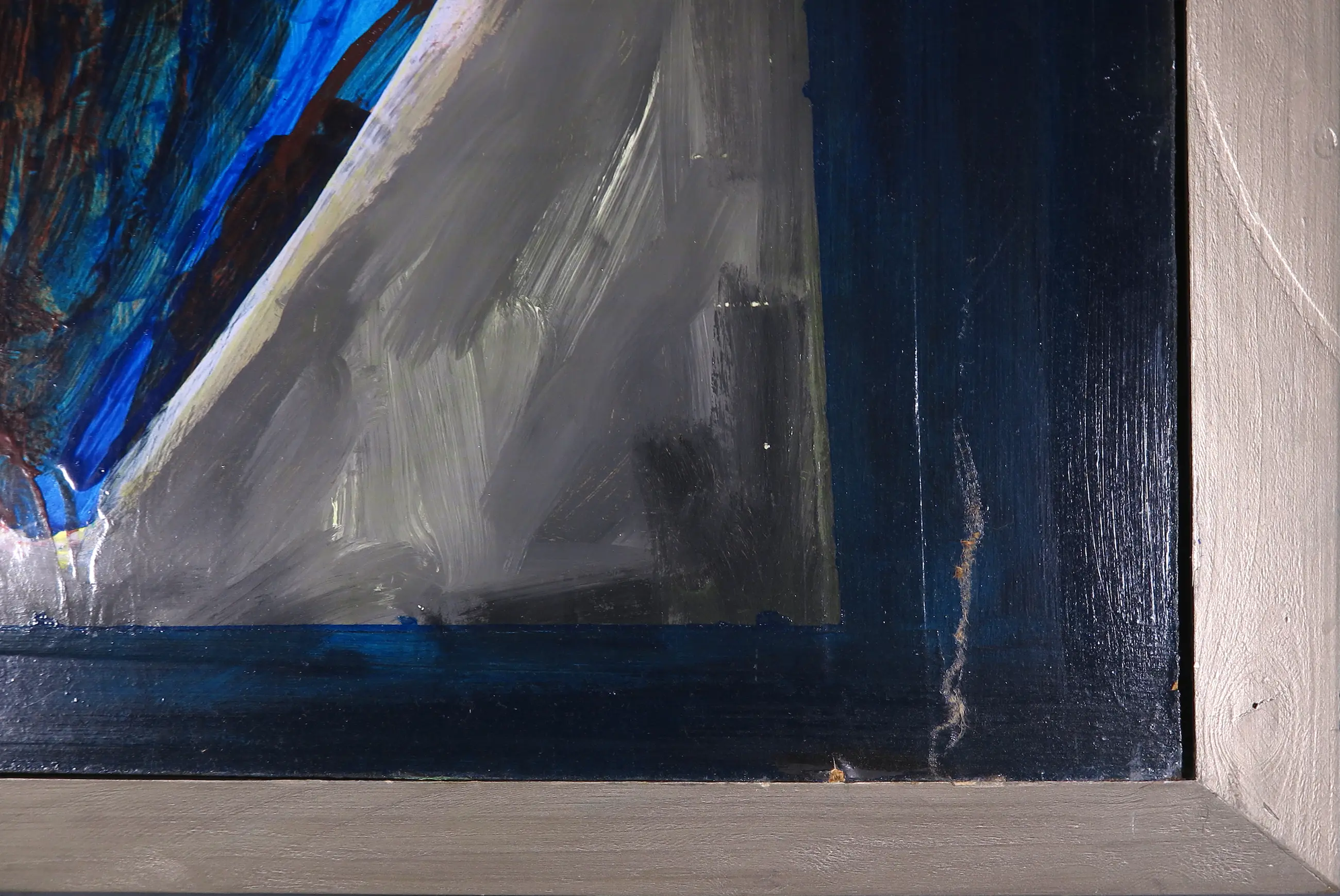 | In de hoek rechtsonder is het paneel enigszins vrijgekomen van de lijst. Daarnaast bevat het paneel vuil, plekjes verfschade en krasjes. Zie foto's voor details. | |