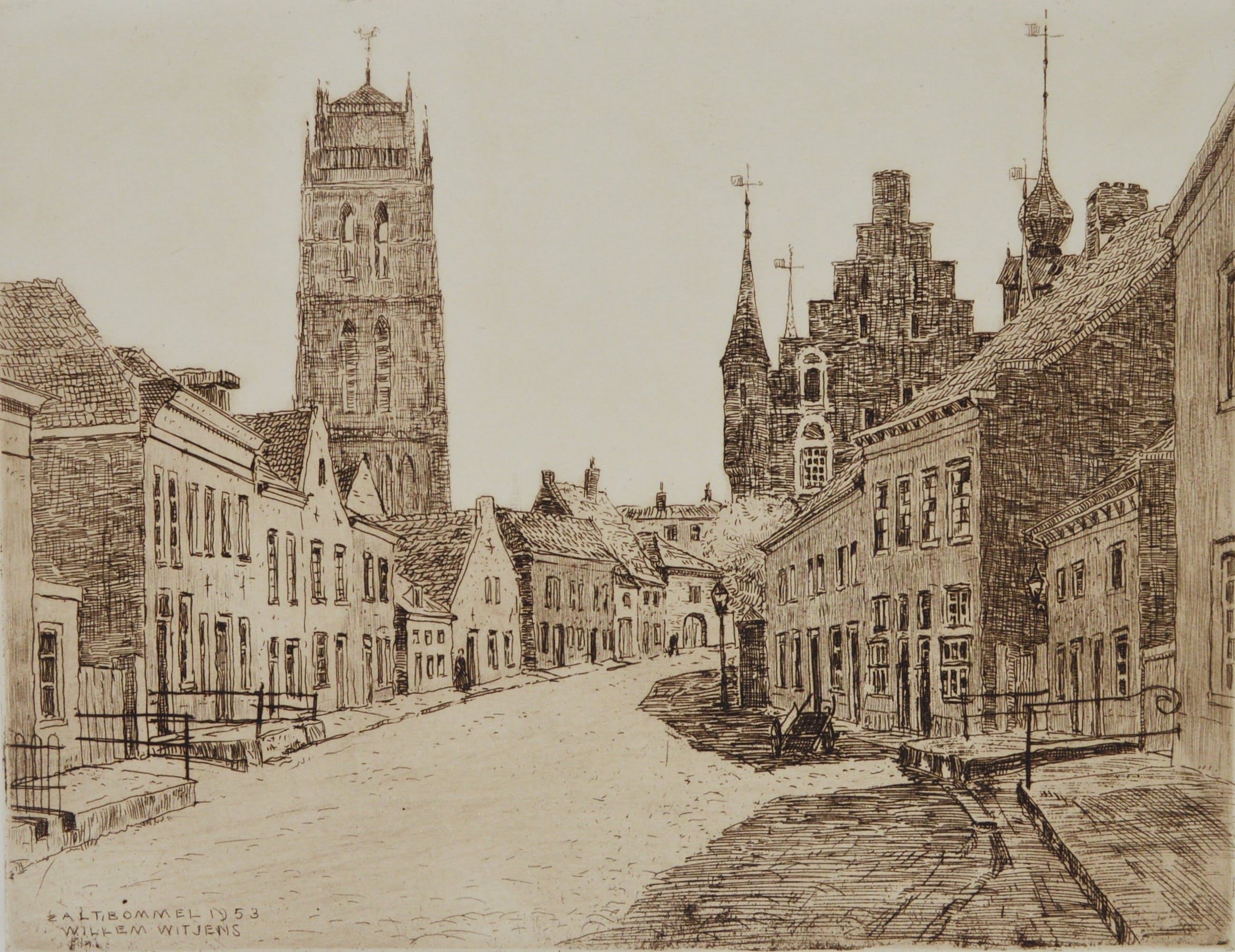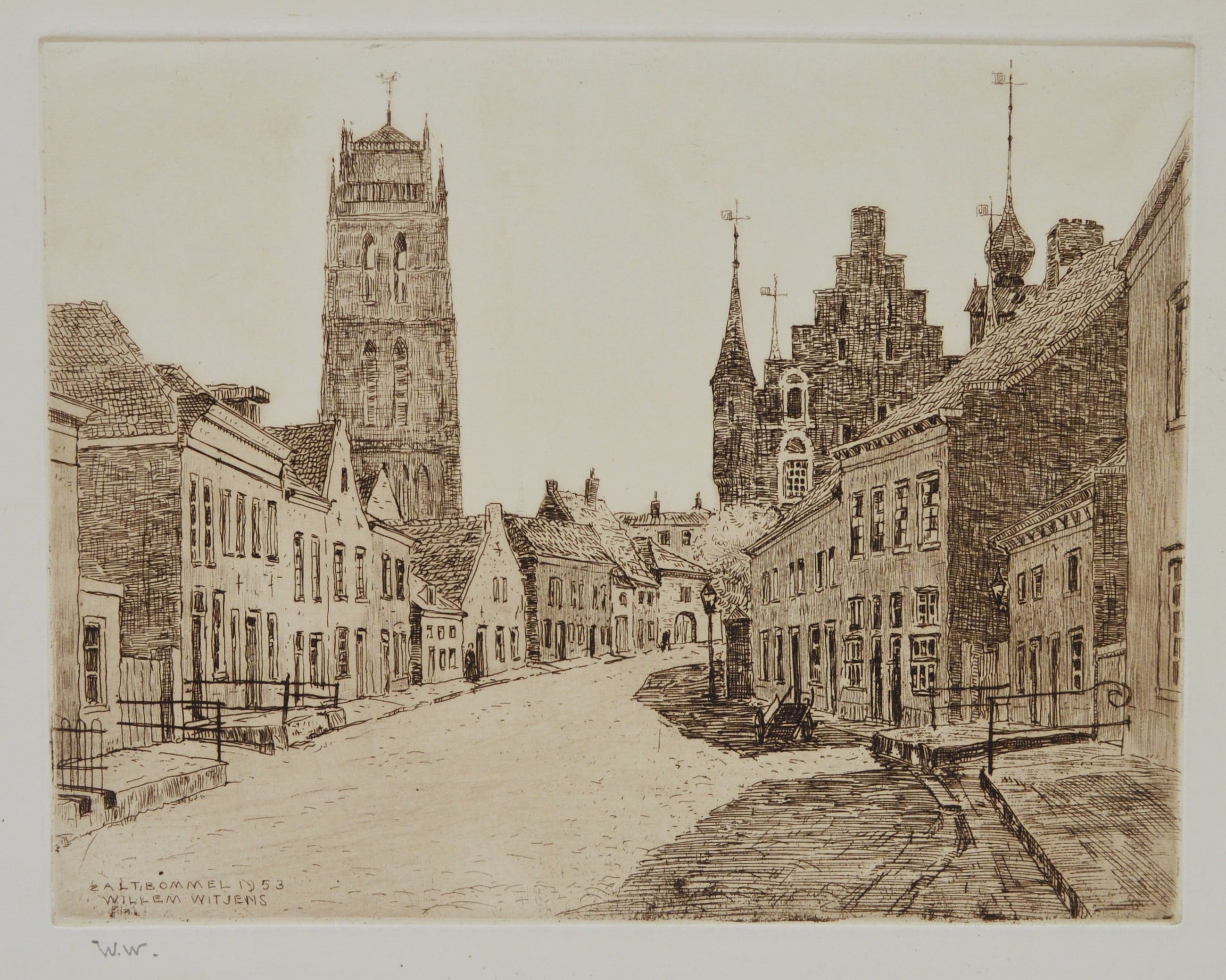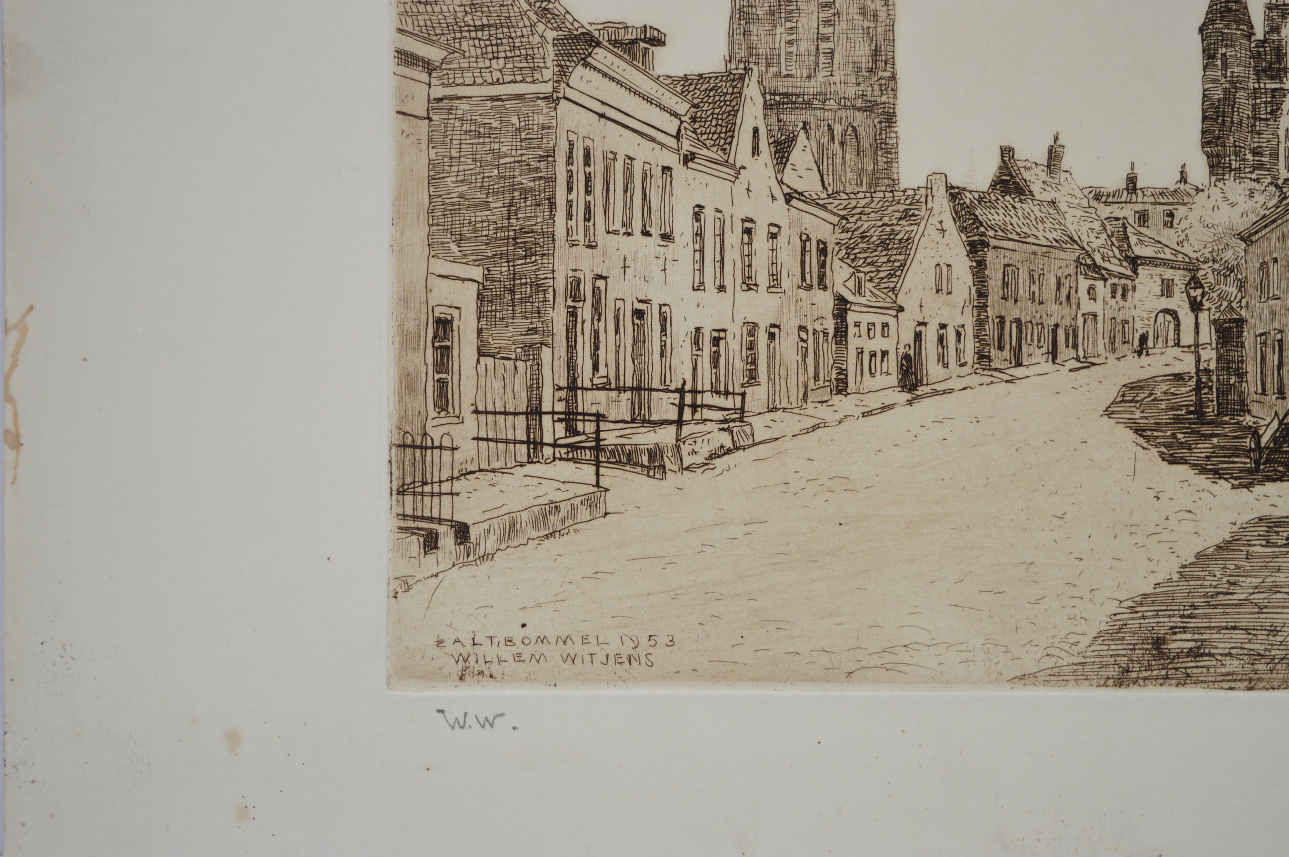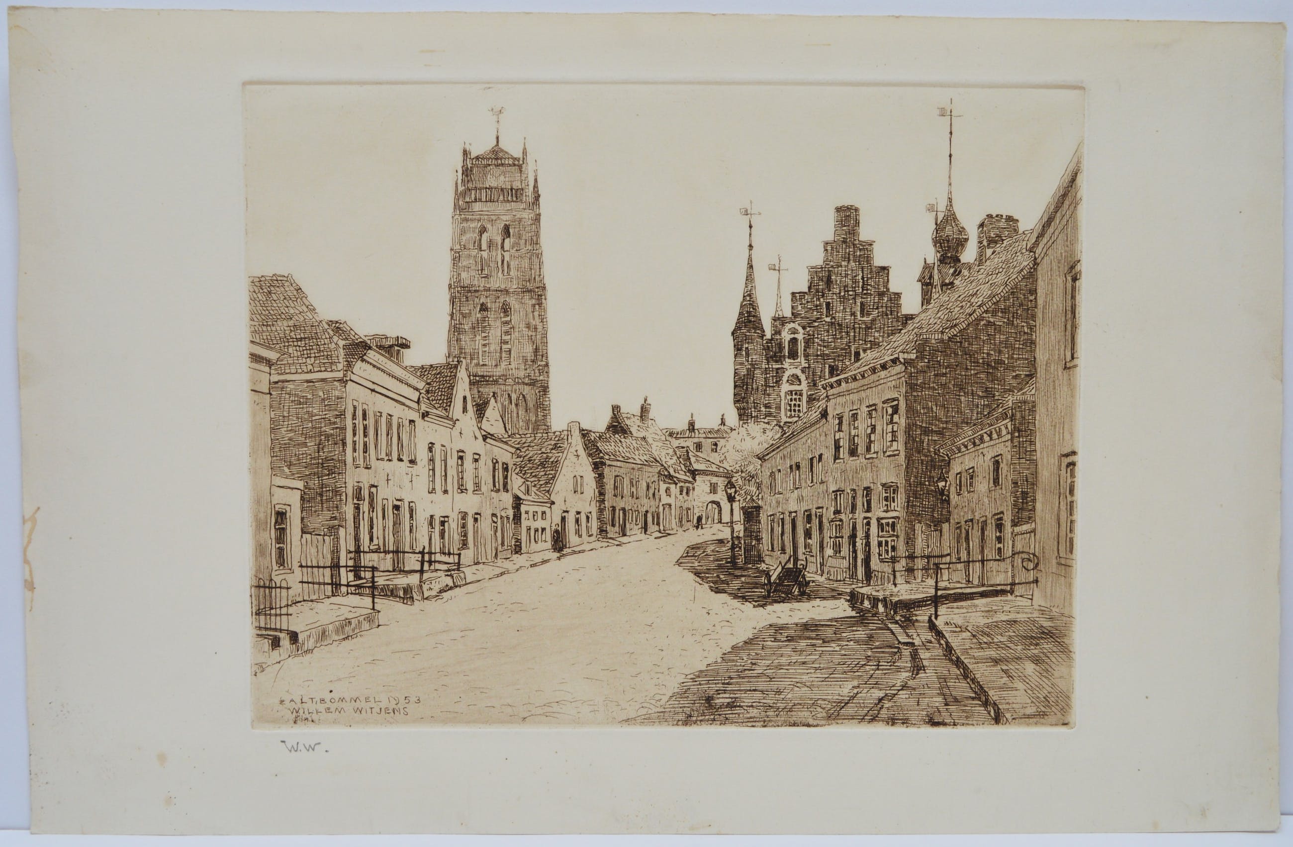 Het afbeelding is 26,5 x 34,5 cm groot en is gesigneerd in de ets.