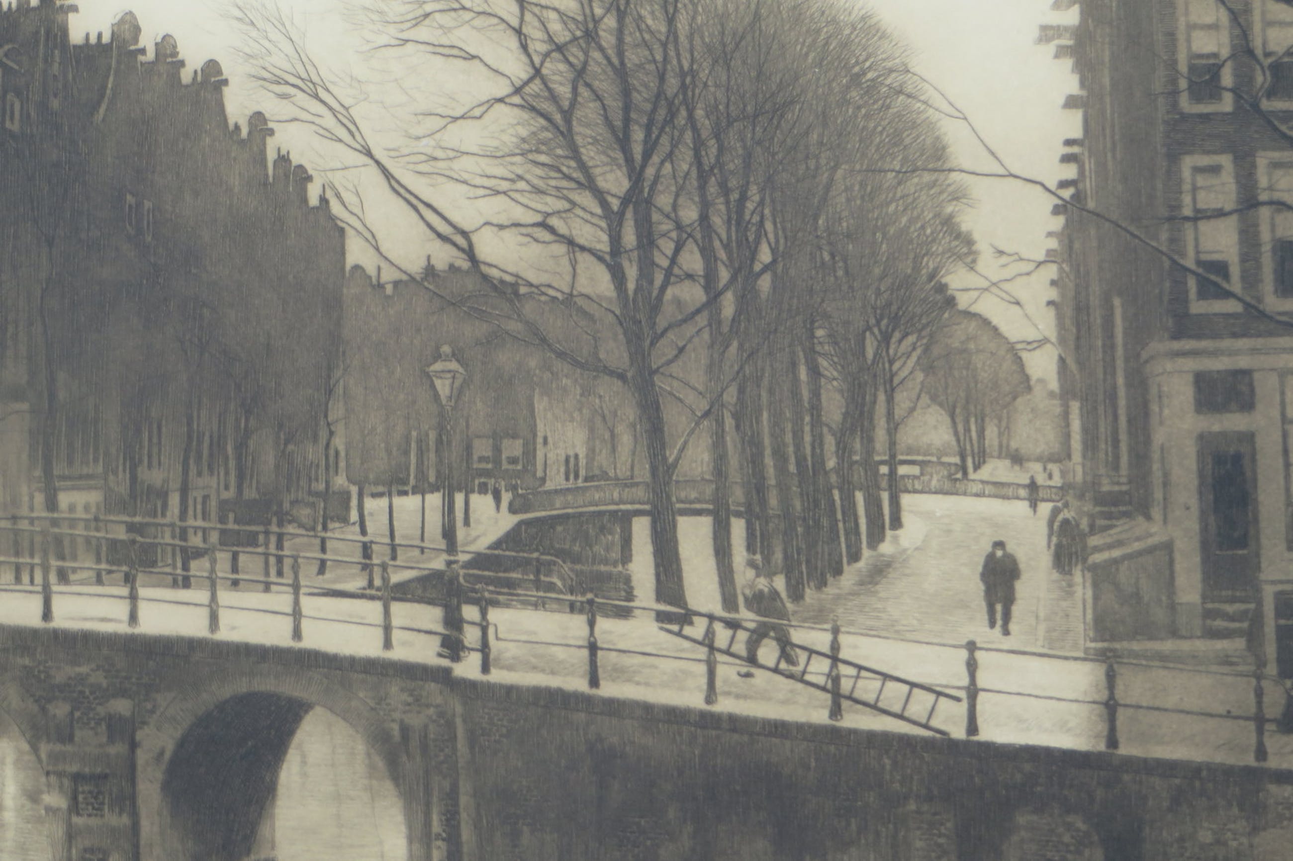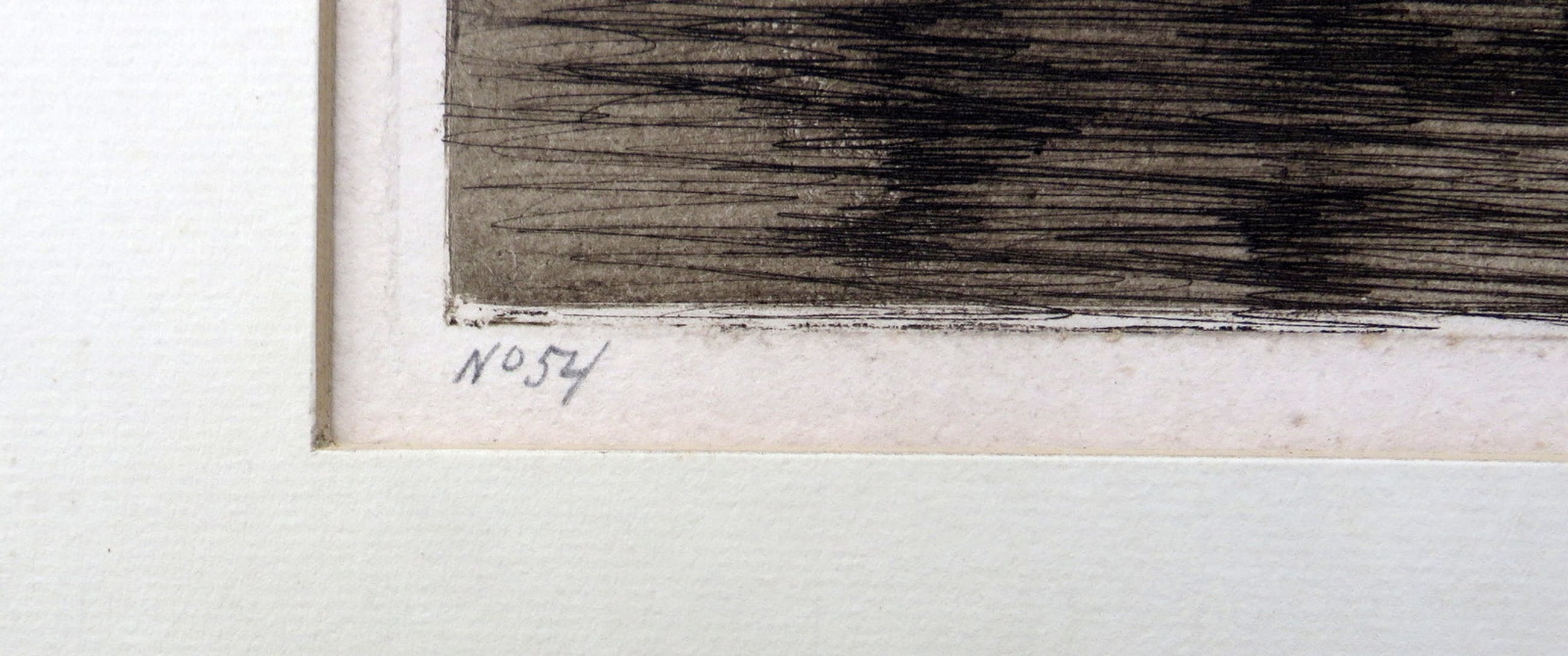 Gesigneerde ets door W.Witsen en genummerd 54.Buiten de plaat de naam van de drukker J.van Wisselingh&Co,Amsterdam. Helaas beschadigd maar redelijk goed gerestaureerd.Uitzonderlijk formaat.