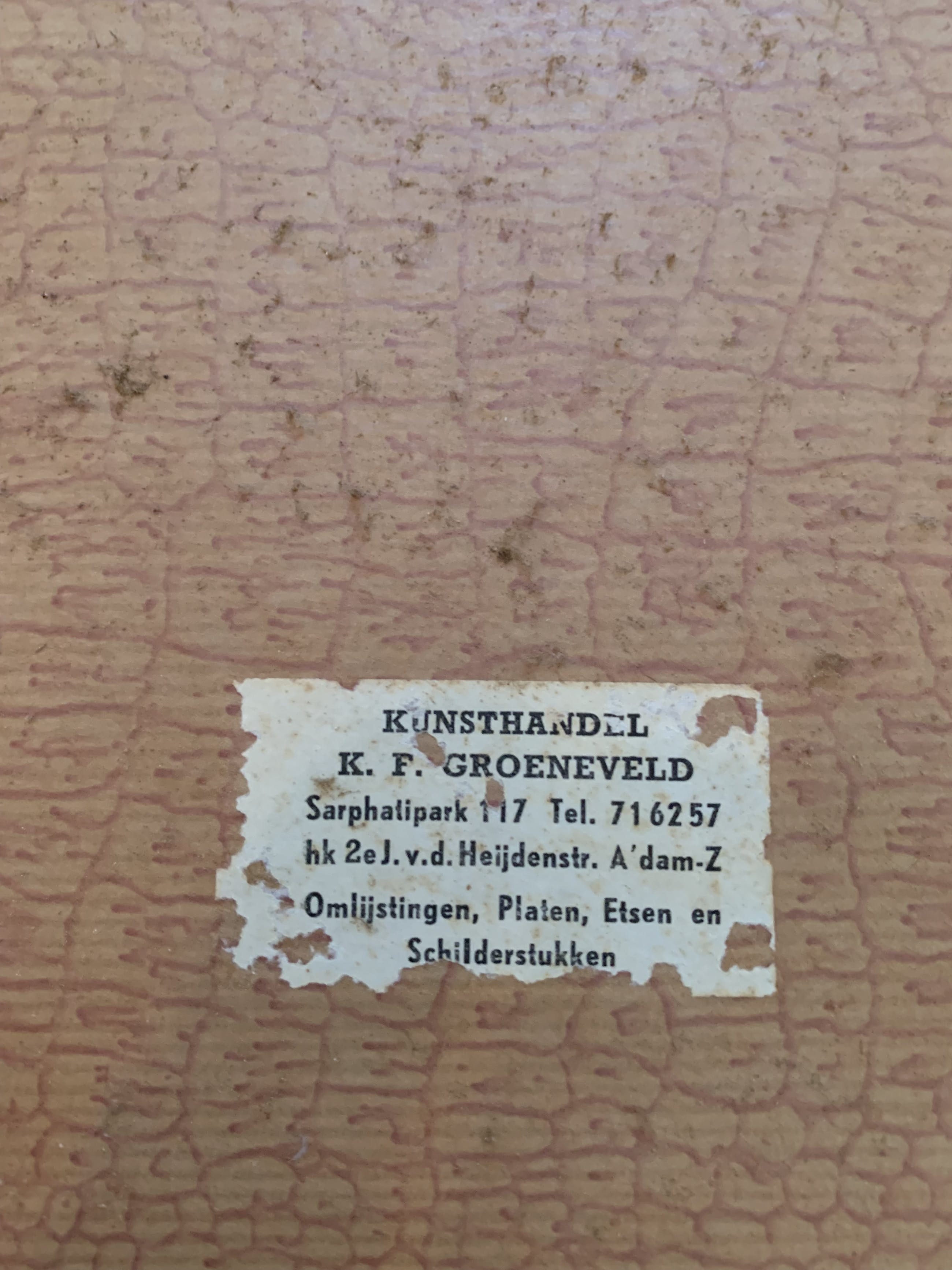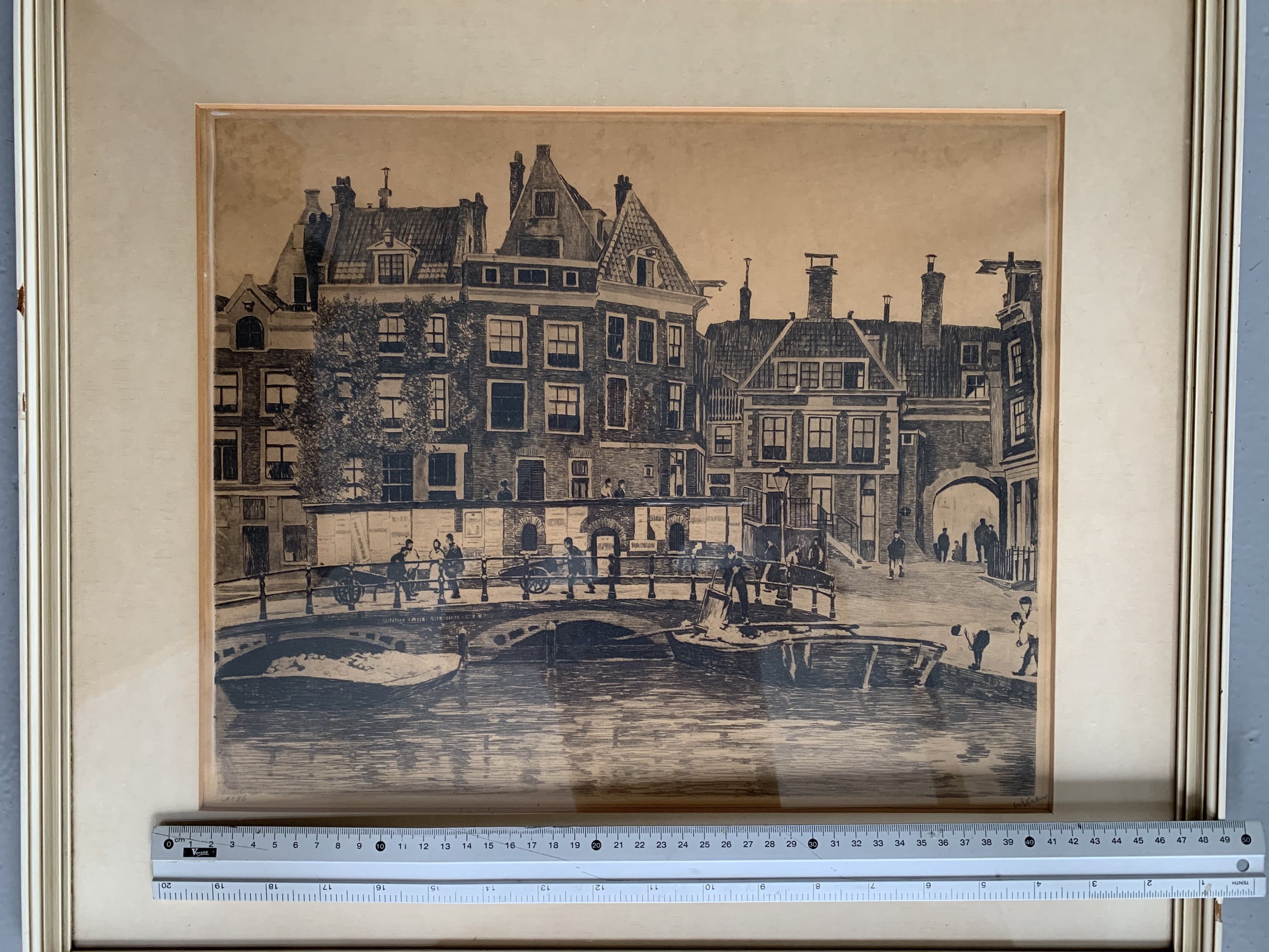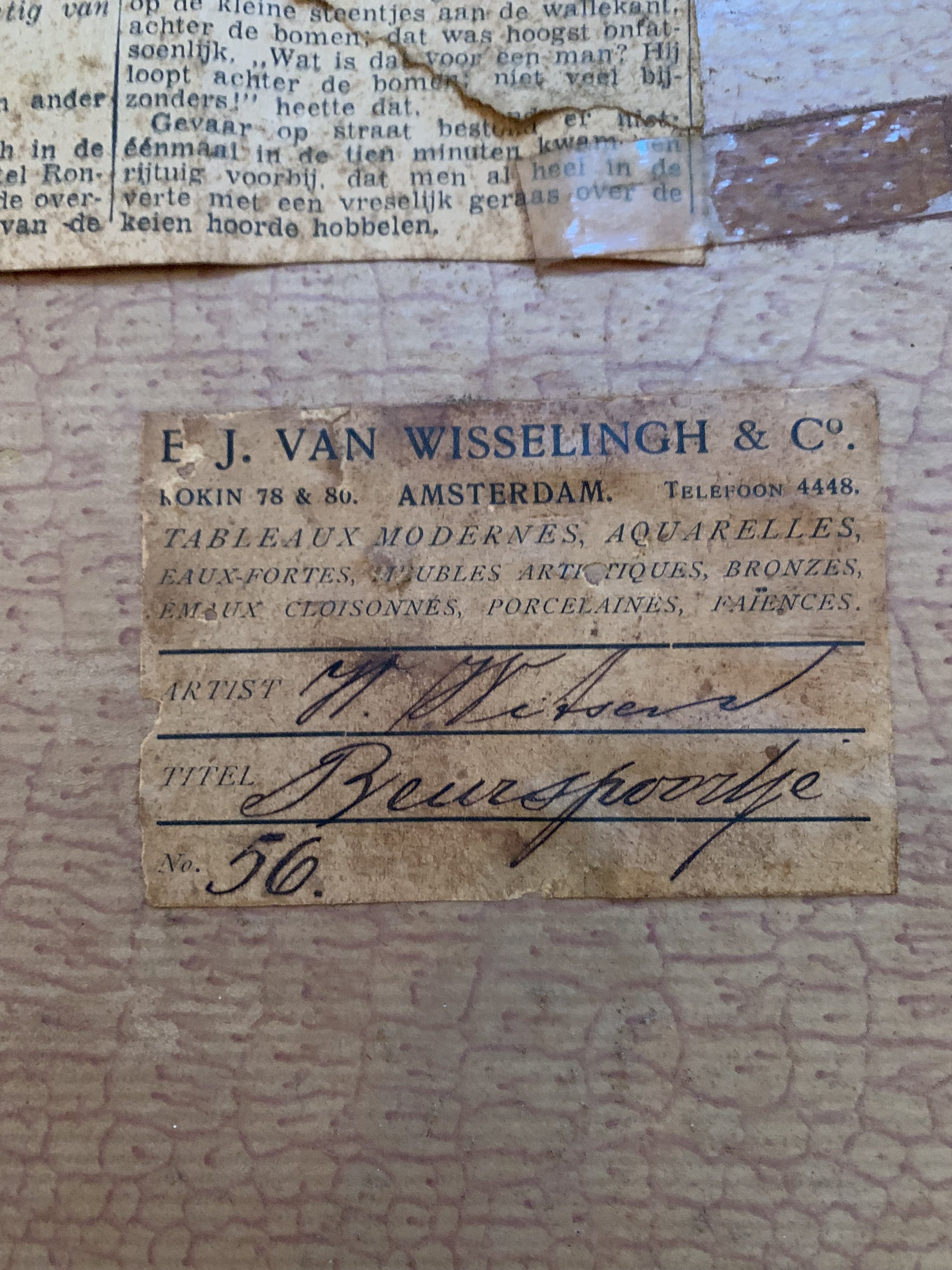 uit de erfenis van onze ouders, een van de meer bekendere Witsens: het Beurspoortje Nummer 56 uit 100. Gesigneerd met potlood. Door mijn overgrootouders gekocht bij kunsthandel E.J. Van Wisselingh & Co, Rokin te Amsterdam, waarvan het originele etiket aanwezig is. Alsmede nog wat verdere documentatie.