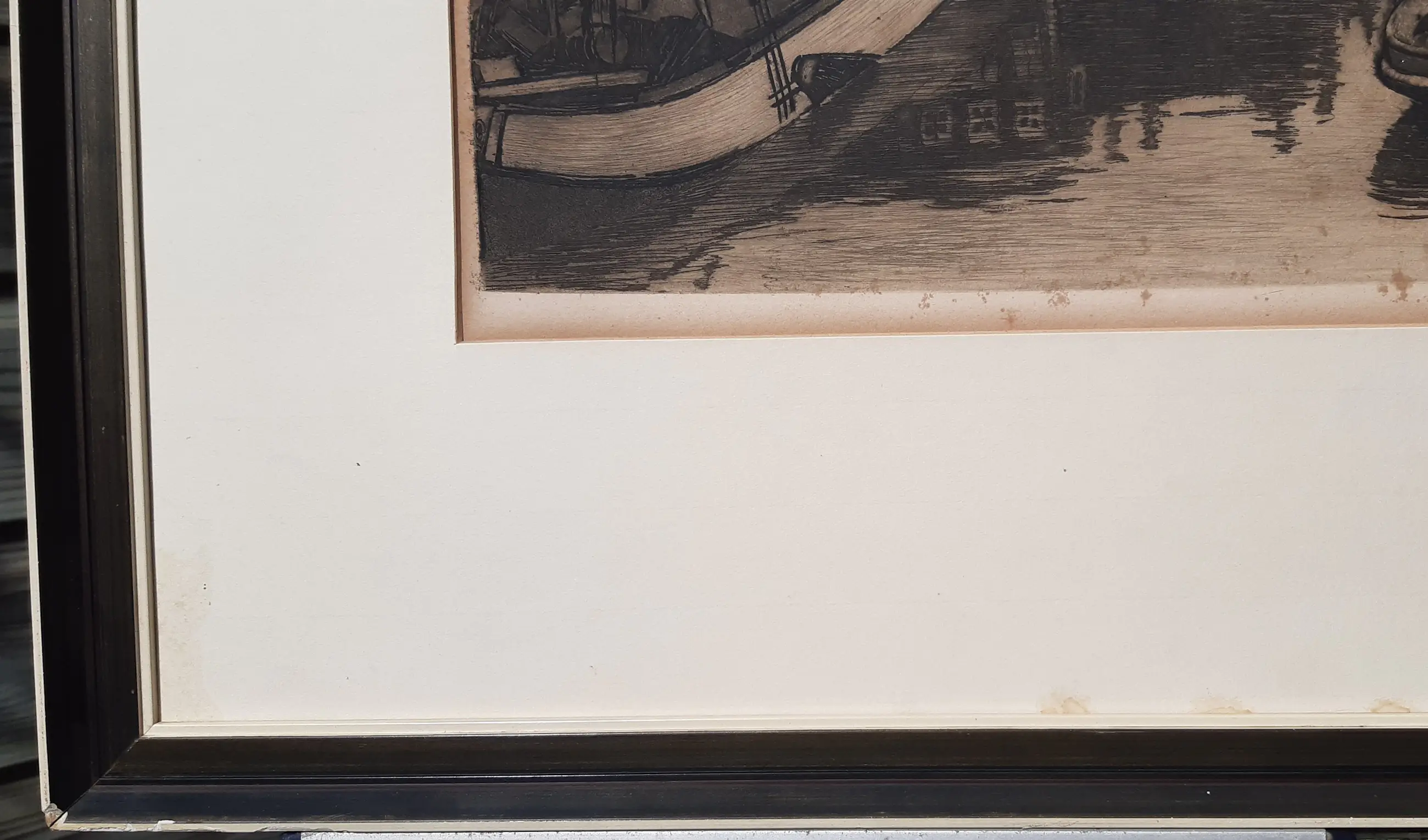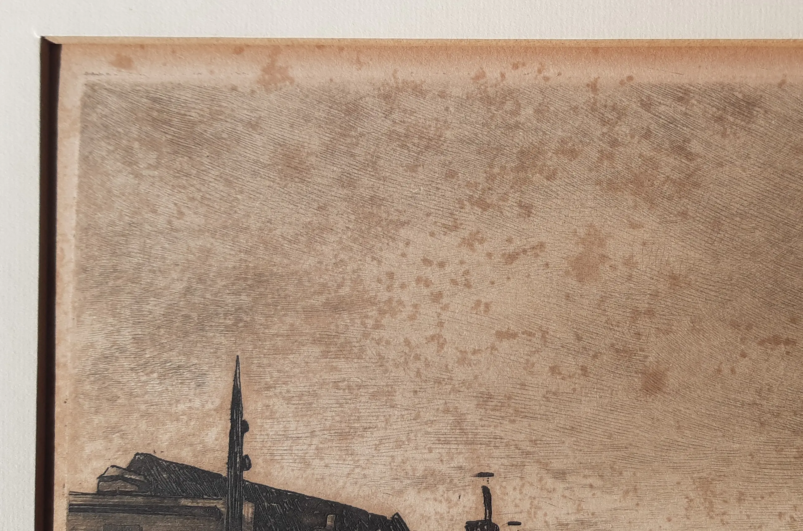 Ets is in redelijke tot goede conditie. In de ets zitten links boven vlekjes, ook onder in de marge. Bekijk de foto's goed.