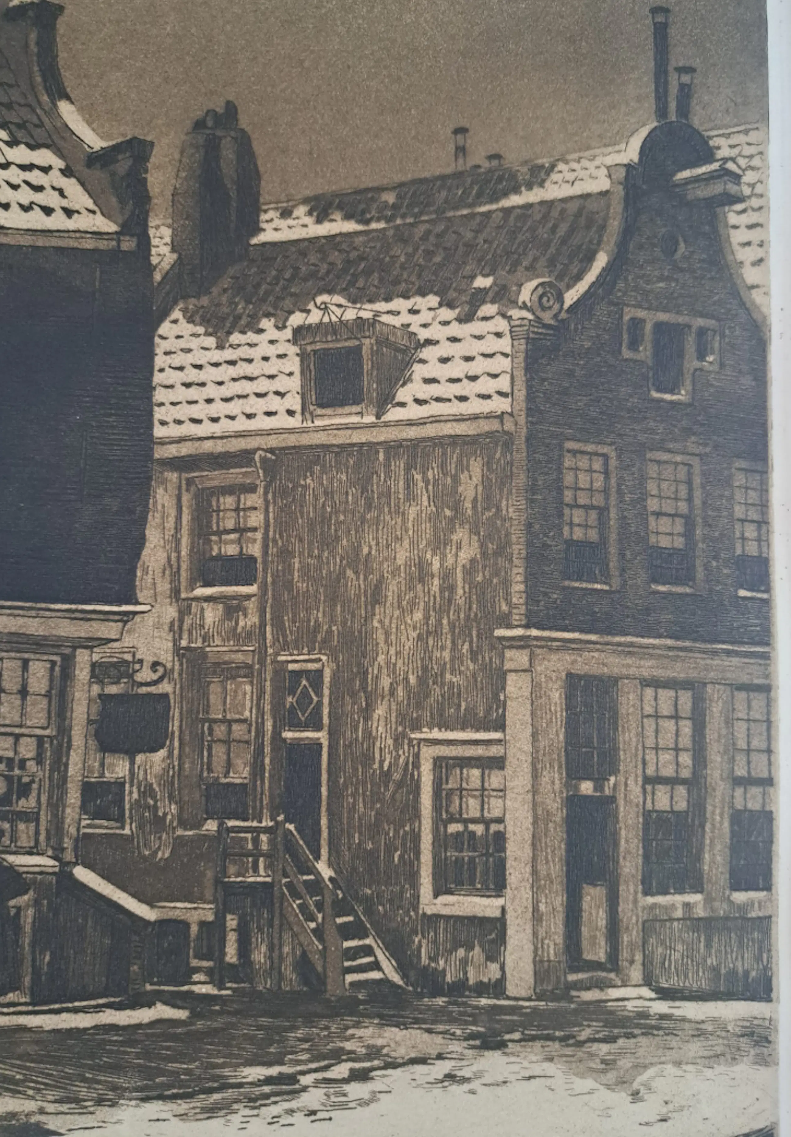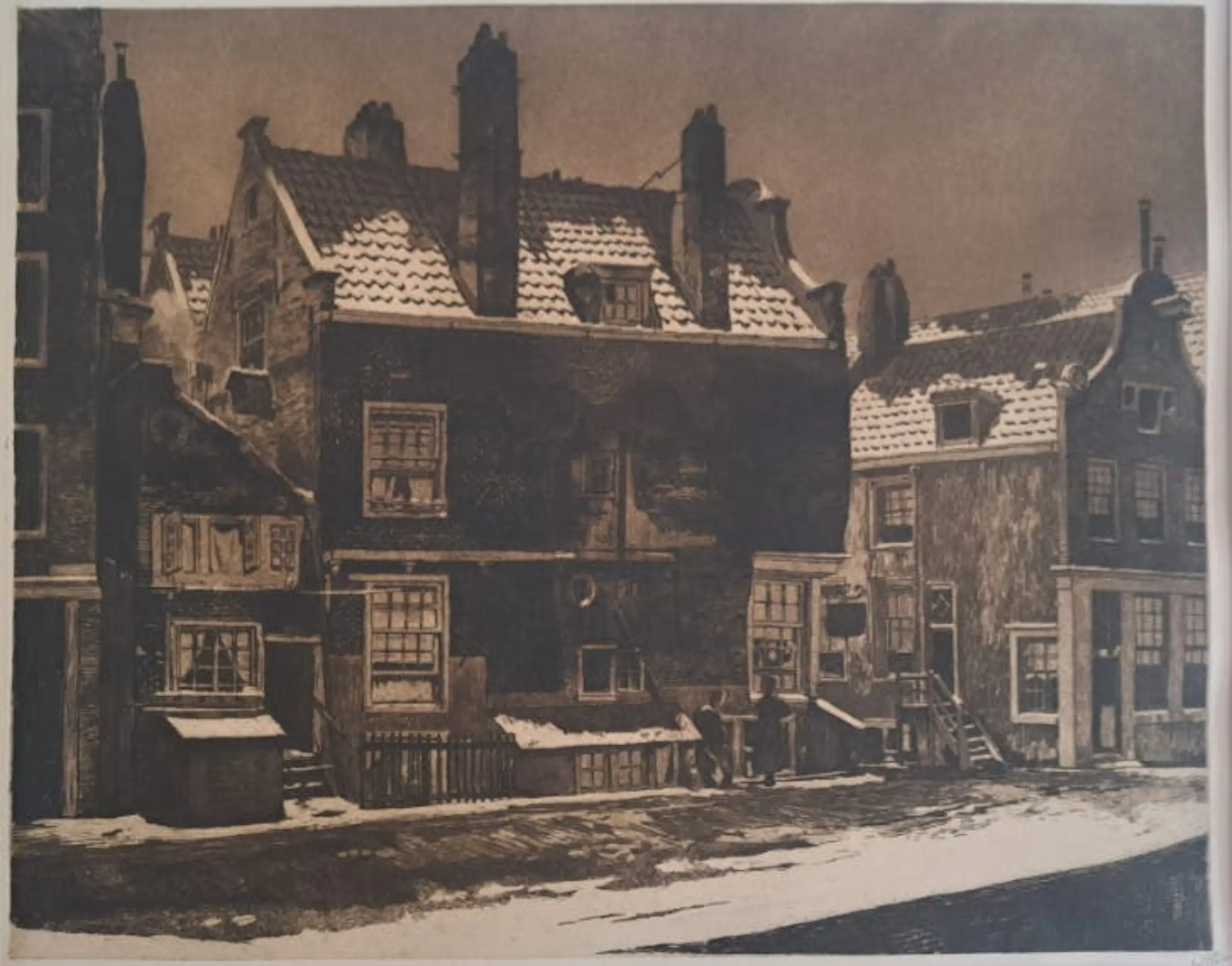 Witsen begon aan de ets Krom Boomssloot in 1907. De eerste staat werd in 1908 gedrukt. Rechts op de ets is de klokgevel van Krom Boomssloot 69 te zien, in het midden de zijmuur van het verdwenen pand Korte Dijkstraat 2 met het kleine huisje Krom Boomssloot 71. Links is een deel van het pakhuis op nummer 73 afgebeeld.