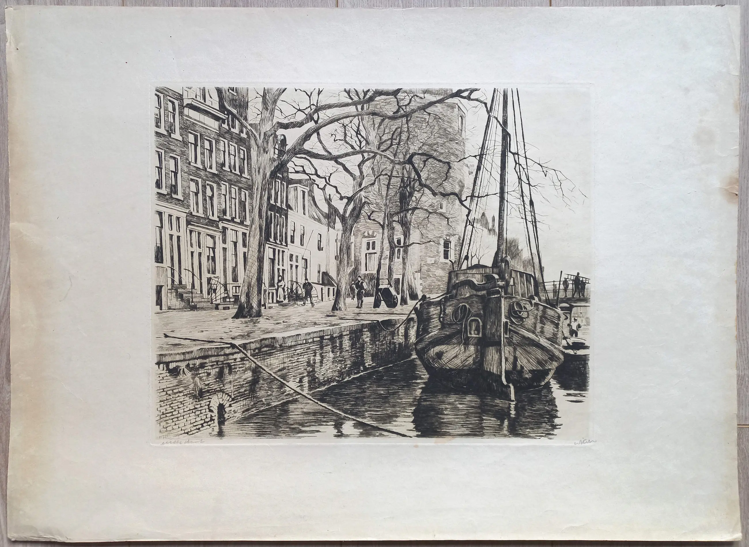 Mooie, bekende ets van Willem Witsen uit 1912. Ets op geschept papier, met potlood gesigneerd rechtsonder en “eerste staat” linksonder. In goede conditie. Literatuur: De Groot 165, Boon 159, Van Wisselingh 481.