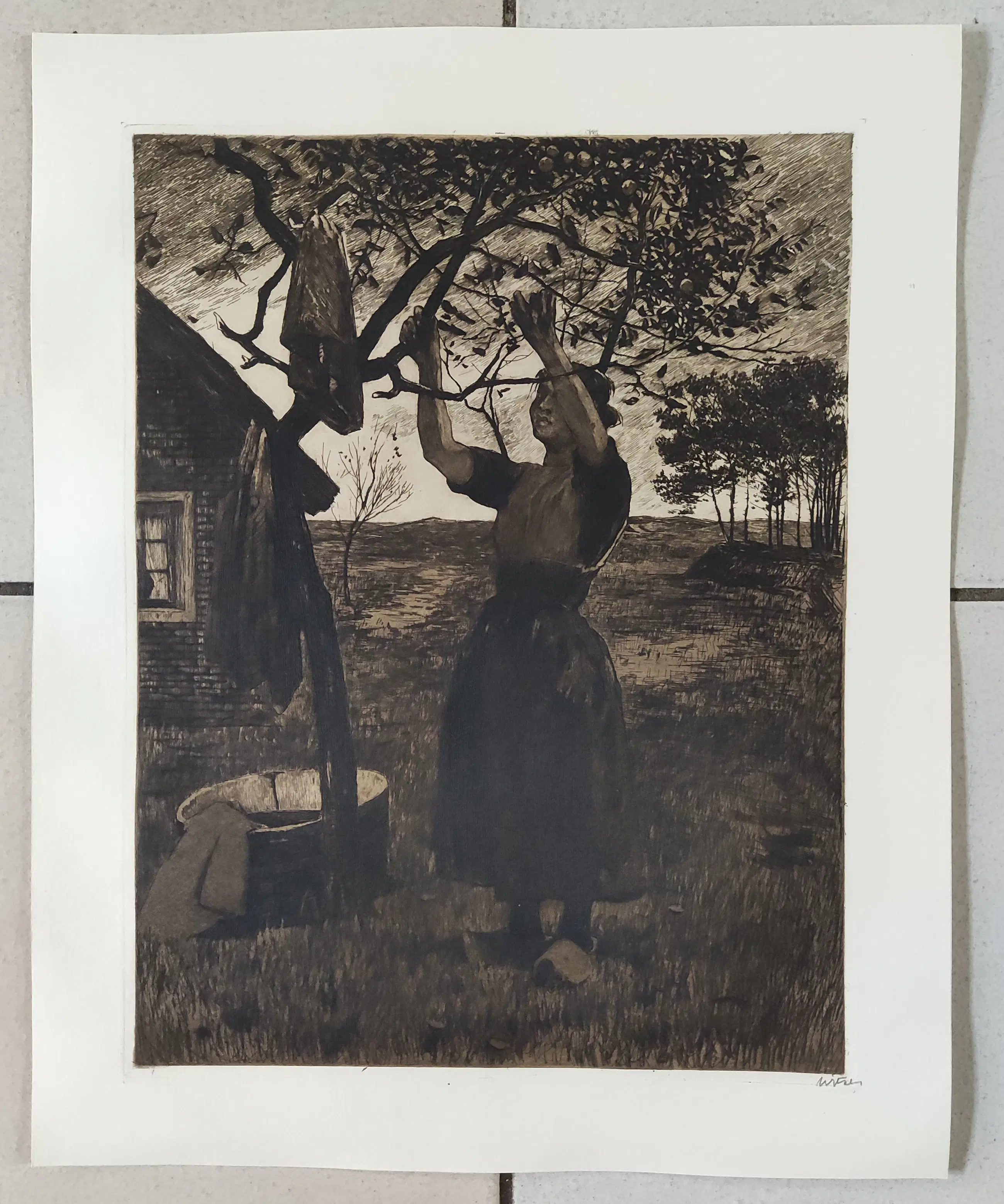 Potlood gesigneerd rechtsonder. Beeldmaat 46 x 35 cm. Plaatmaat 47 x 36 cm. Bladmaat 56 x 45 cm. Losbladig. Literatuur: Catalogus De Groot no.139, Boon no.130 en Van Wisselingh no. 456. Willem Witsen werd geboren te Amsterdam op 13 augustus 1860 en overleed aldaar op 13 april 1923. Opleiding aan de Rijksacademie voor Beeldende Kunst te Amsterdam. Leerling van August Allebé. Leraar van o.a. Dirk Harting en Willem Hofker. Werkte behalve in Nederland in Londen, Venetië, San Francisco en Indonesië. Was één van de zgn. Tachtigers en zeer bevriend met Georg Hendrik Breitner. Schilder, aquarellist en graficus. Vooral bekend om zijn Amsterdamse stadsgezichten.