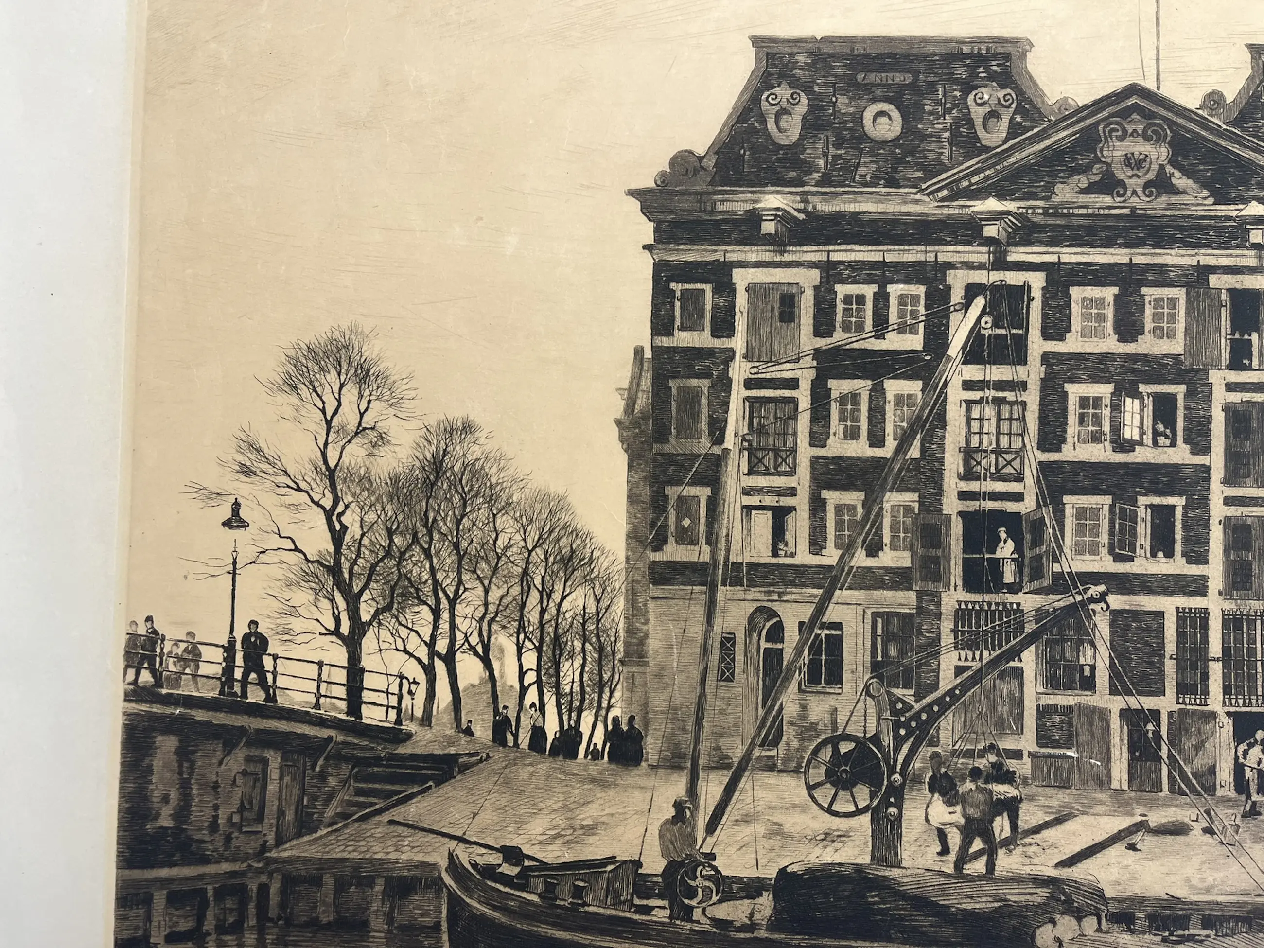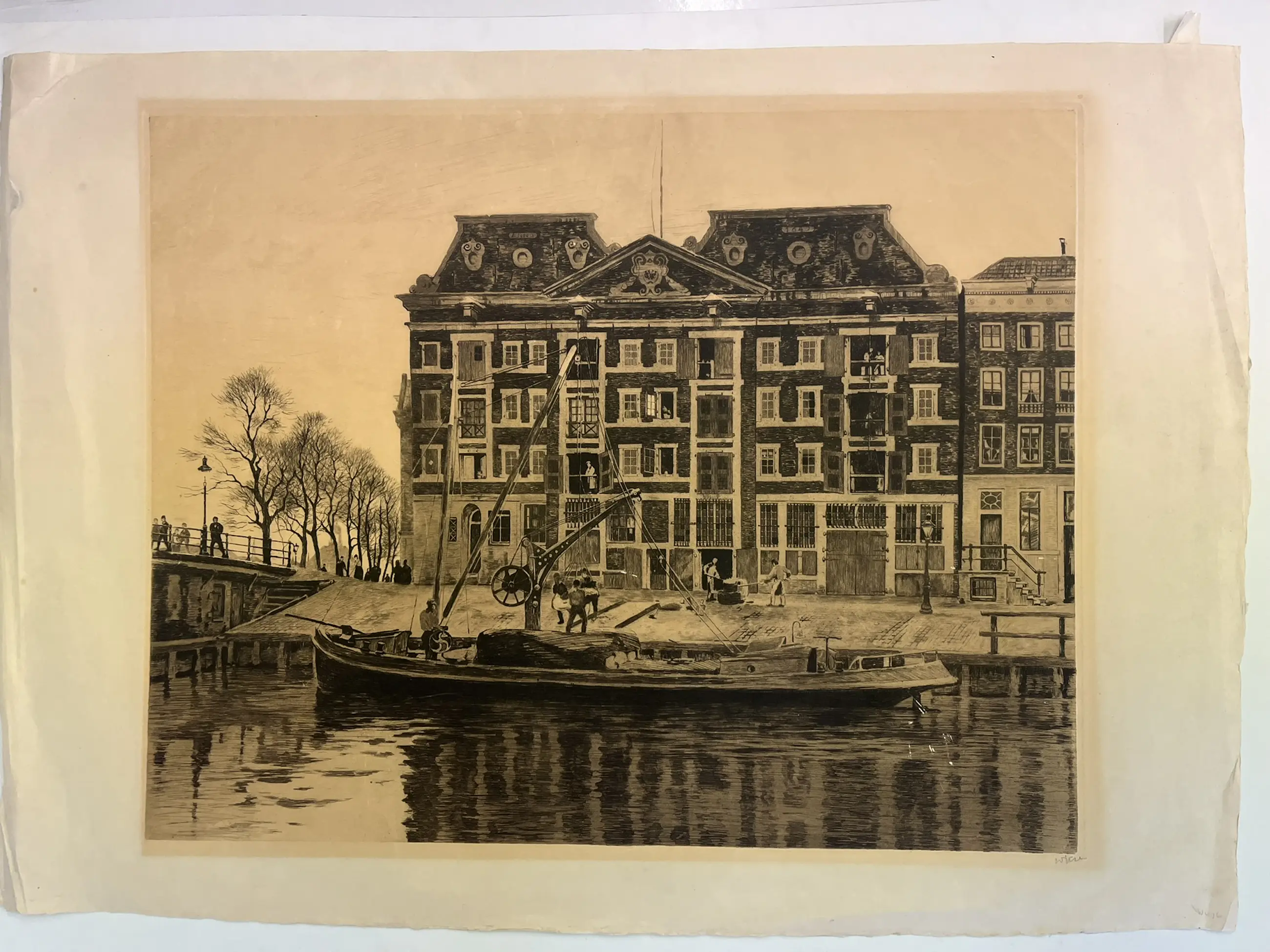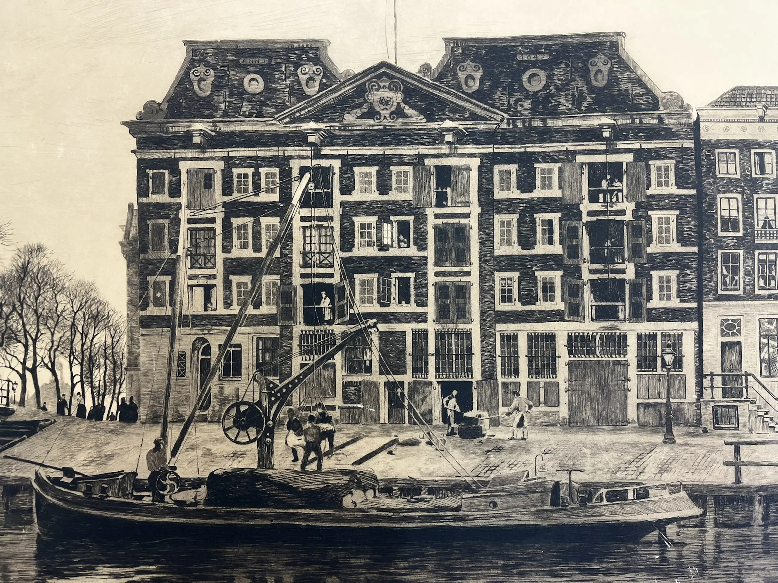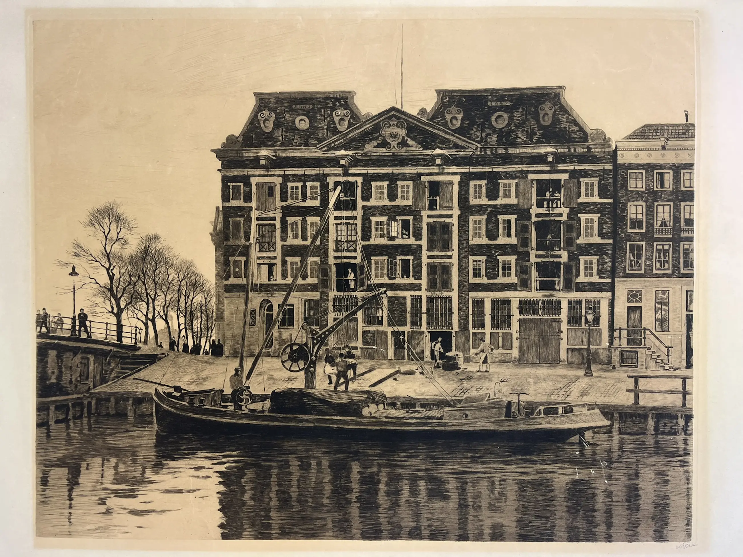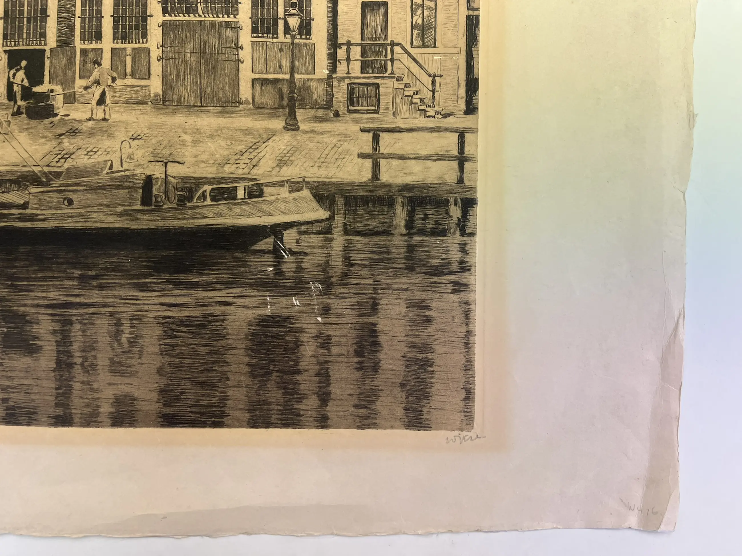 Hij gebruikte de etstechniek niet alleen om gebouwen vast te leggen, maar vooral om stemming te vangen: regenachtige kades, bruggen in nevel, verlaten grachten. Zijn prenten voelen vaak introspectief en bijna poëtisch aan.