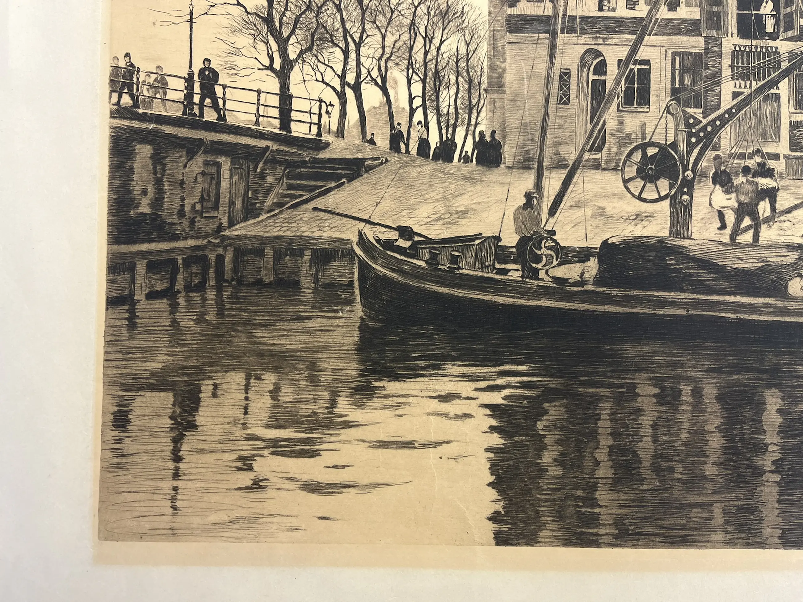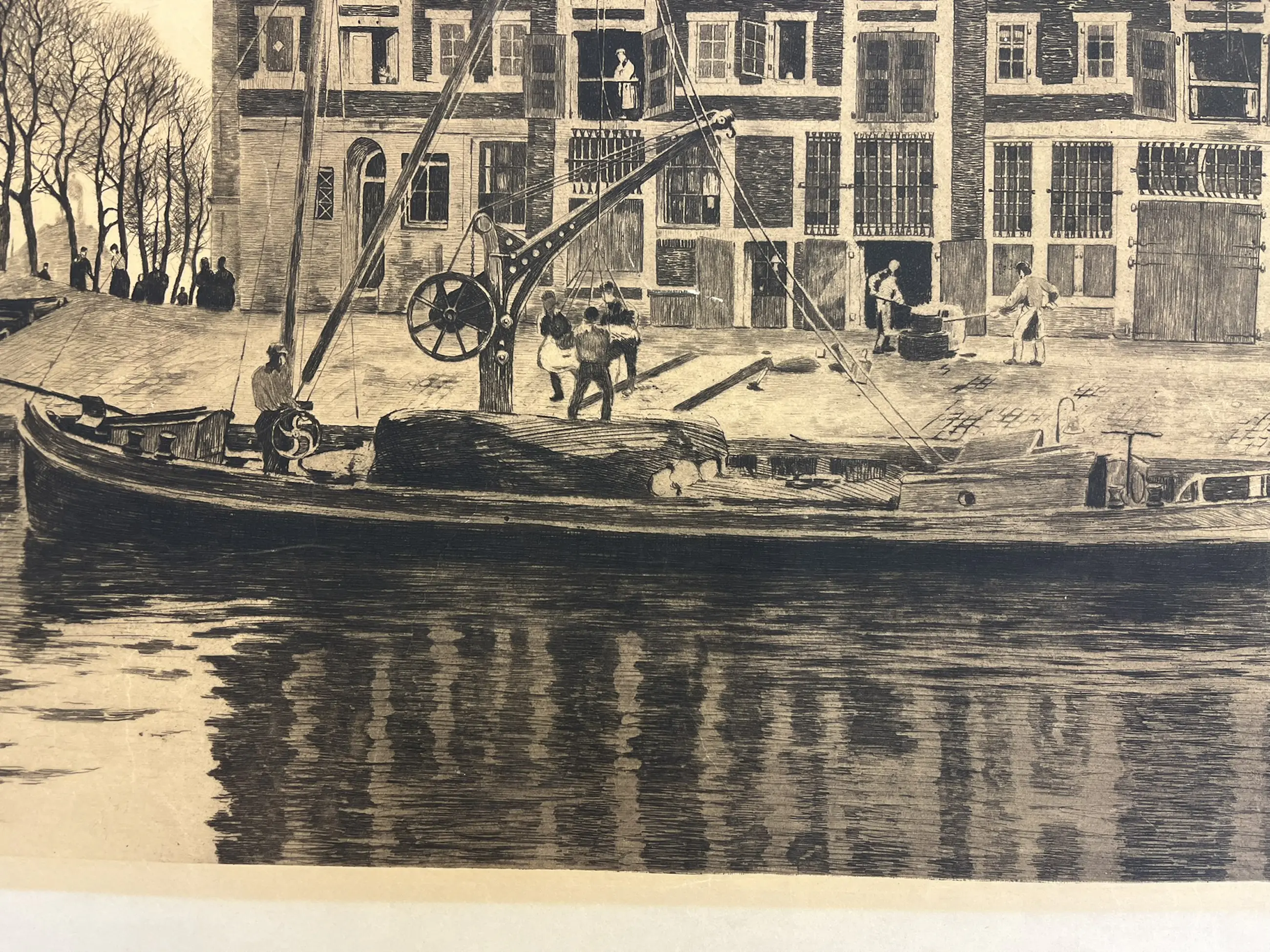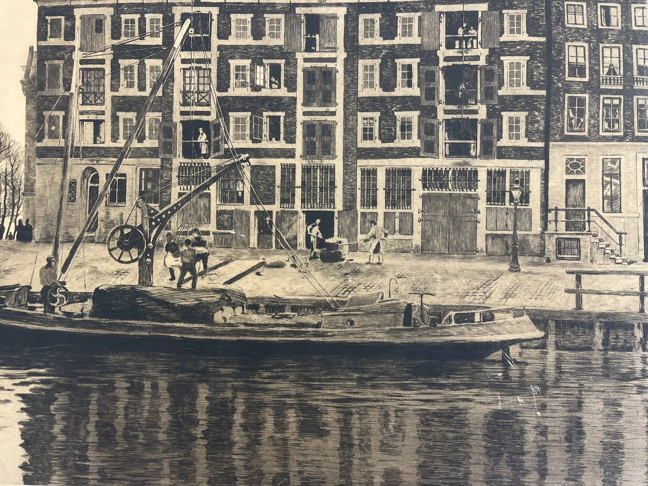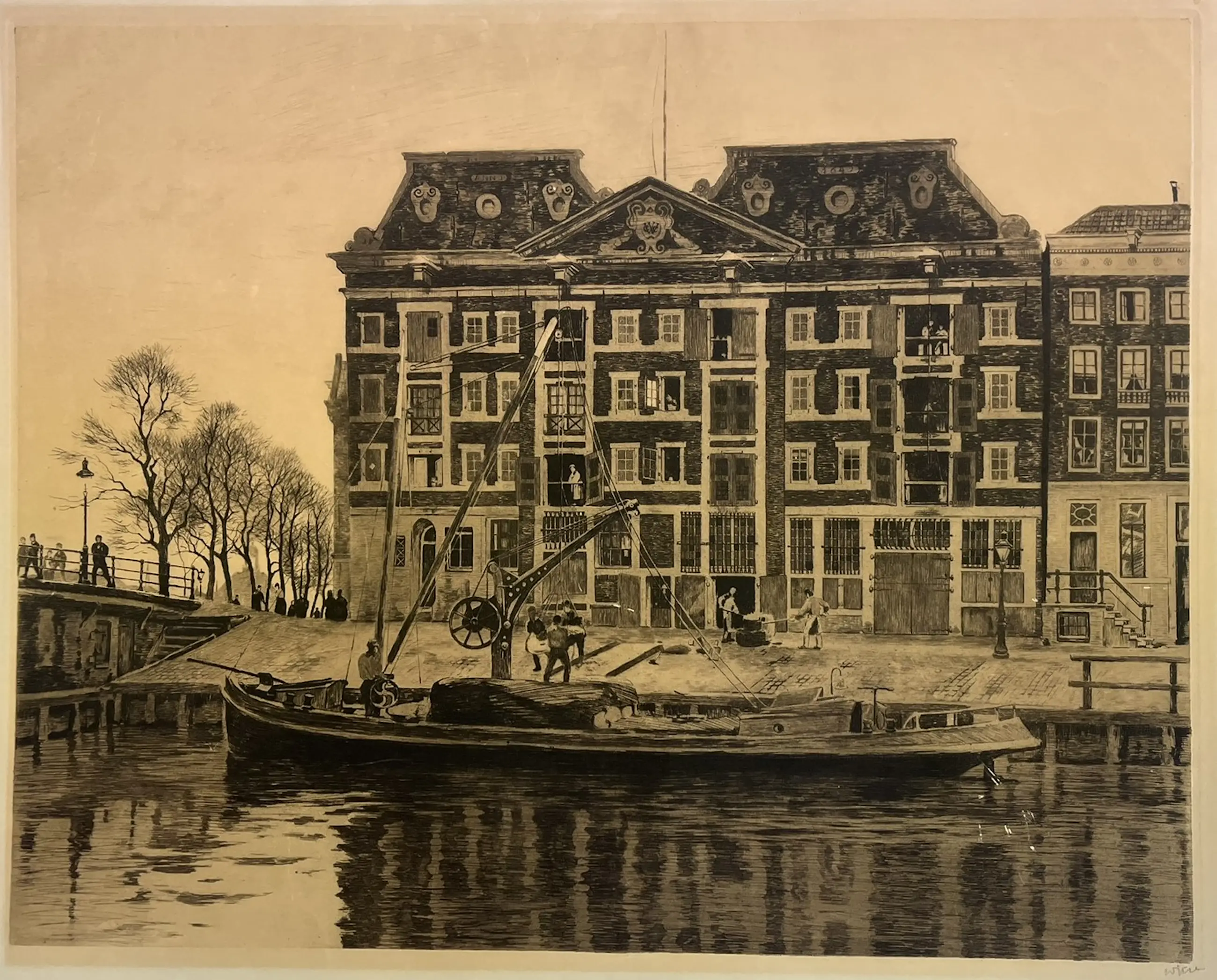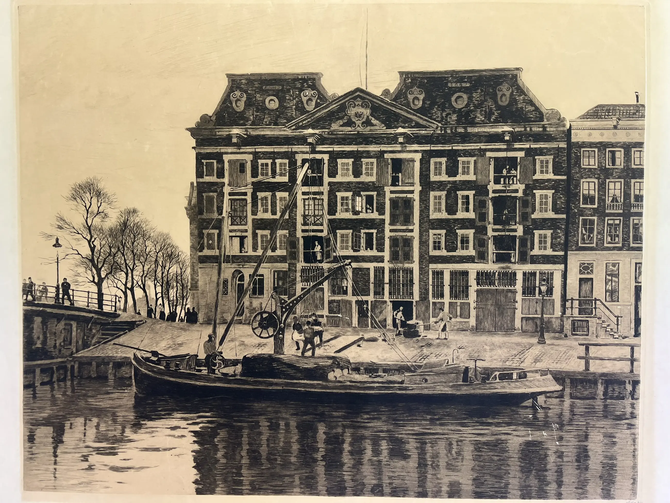 Hij gebruikte de etstechniek niet alleen om gebouwen vast te leggen, maar vooral om stemming te vangen: regenachtige kades, bruggen in nevel, verlaten grachten. Zijn prenten voelen vaak introspectief en bijna poëtisch aan.