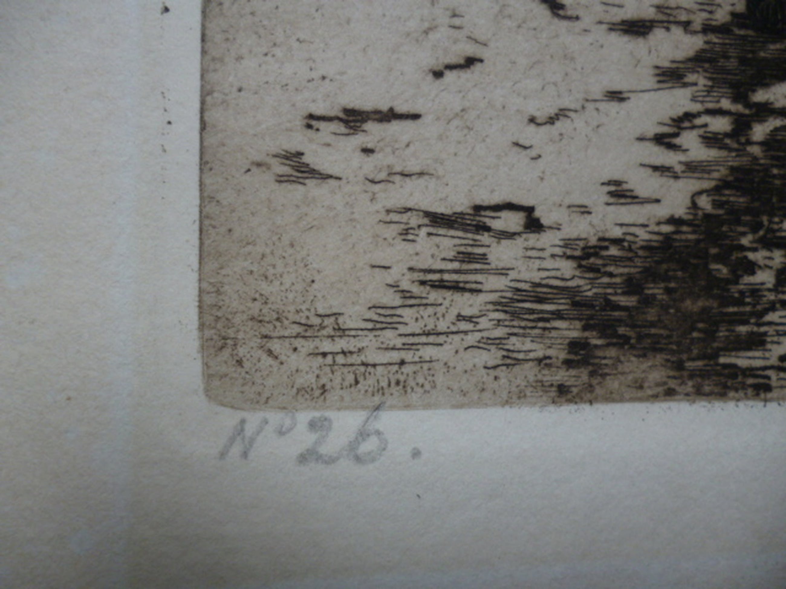 Ets, potlood gesigneerd rechtsonder. Genummerd 26 linksonder.
