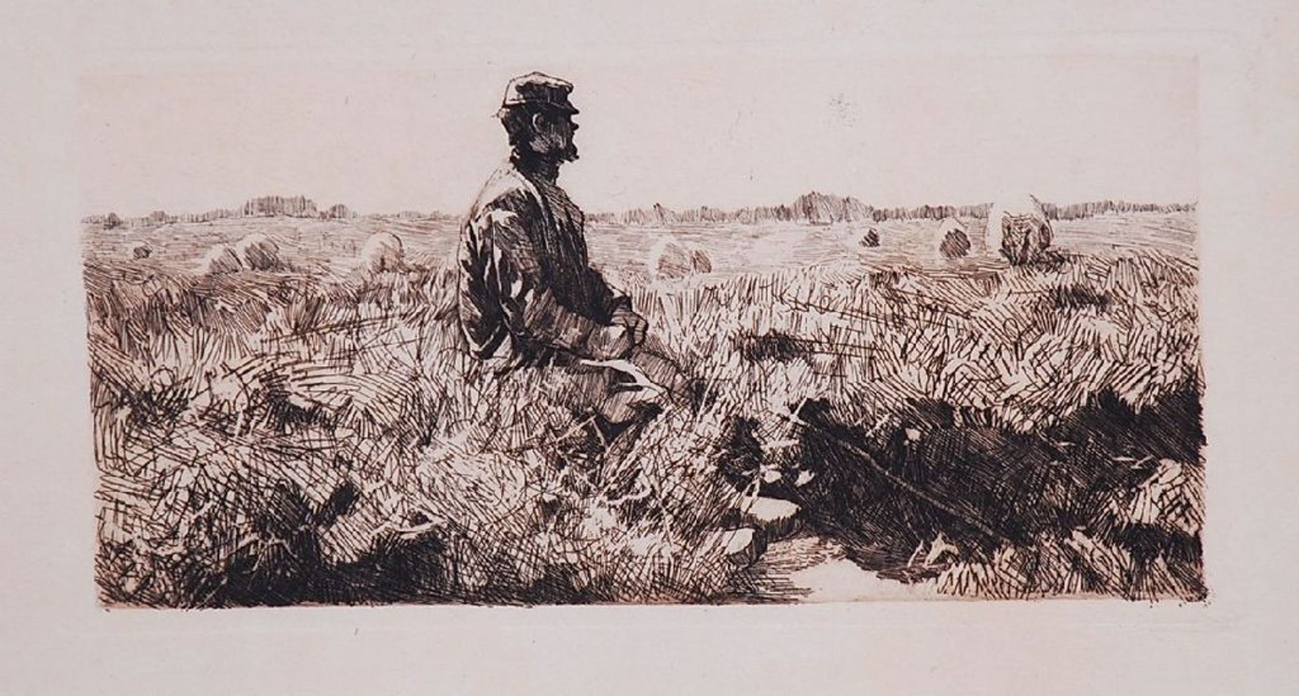 Het gaat hier om een originele ets uit de uitgave van de Portefeuille van de Nederlandse etsclub (oplage 100). Jaargang 1. Deze etsen zijn allemaal gedrukt op dun papier aan de bovenkant is bevestigd (meestal in de hoeken) op een groot vel dik papier om iedere ets uit de portfolio op gelijk formaat in de bundel te kunnen opnemen. Dit blad wordt in principe niet gebruikt als u het werk laat inlijsten en de conditie van het achterblad wordt dan ook niet beschreven en is bij dit portfolio vaak gevlekt (is vaak zo onder invloed van de tijd/vocht op dit papier). We beschrijven dus alleen de ets/etsblad.