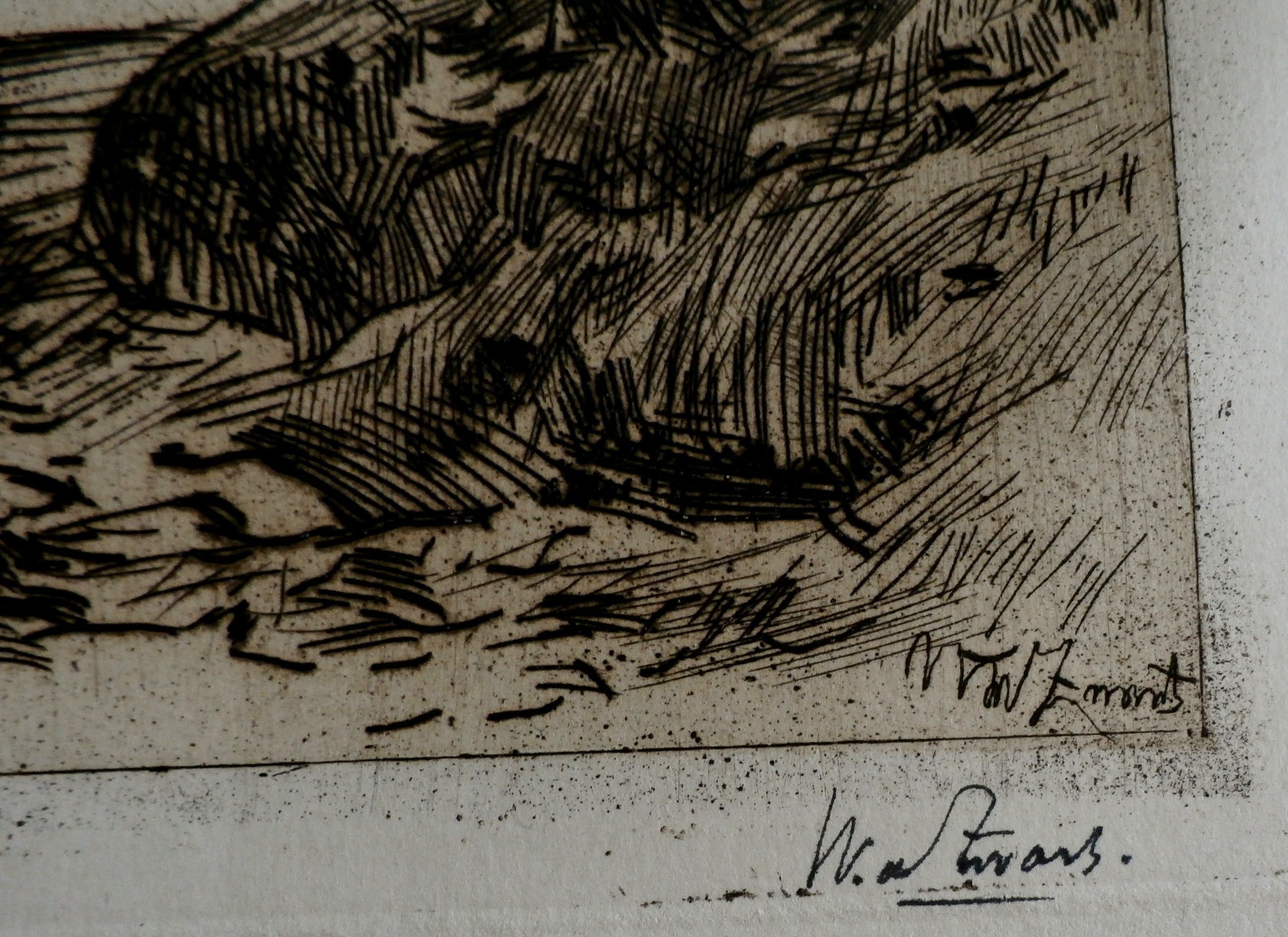 Ets van Willem de Zwart. Titel: Ruine in het bos 3. Het werk is rechtsonder, met potlood, gesigneerd en gedateerd door de kunstenaar. Nummer: 48 (linksonder). Afmetingen blad: H45 x b35.5cm. Afmetingen voorstelling: H27 x b18 cm. De authenticiteit van dit werk wordt volledig gegarandeerd. Een certificaat van echtheid kan, op aanvraag, worden gemaild.