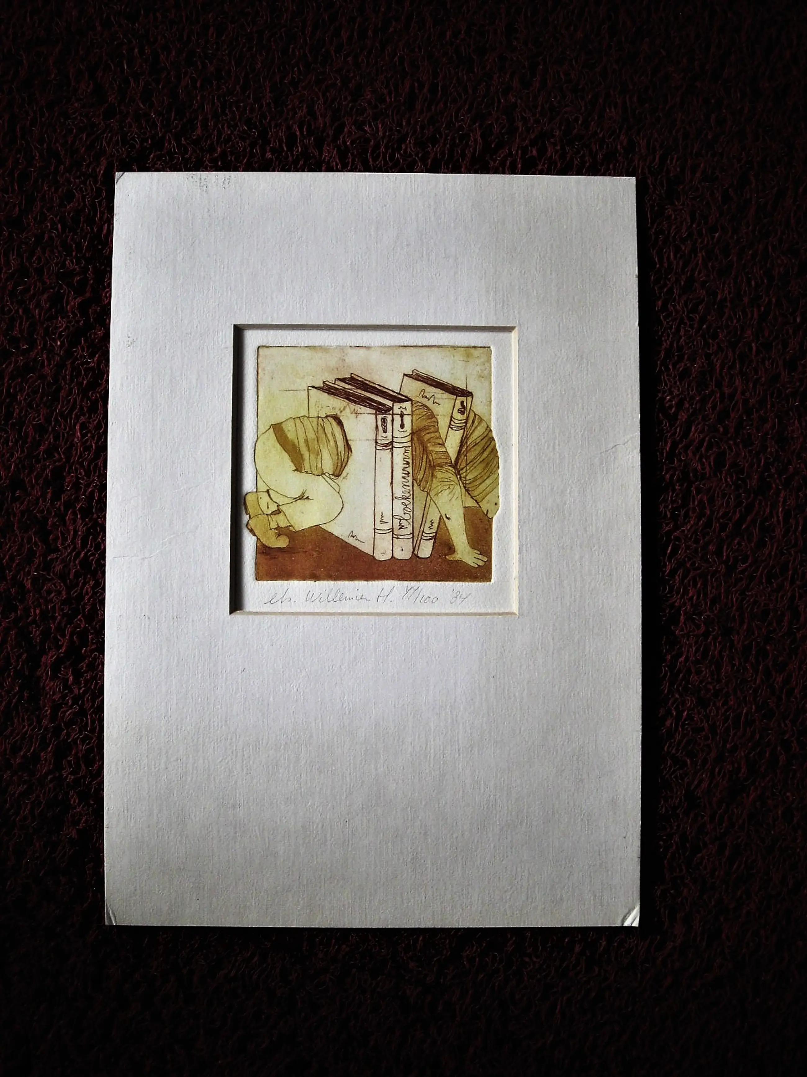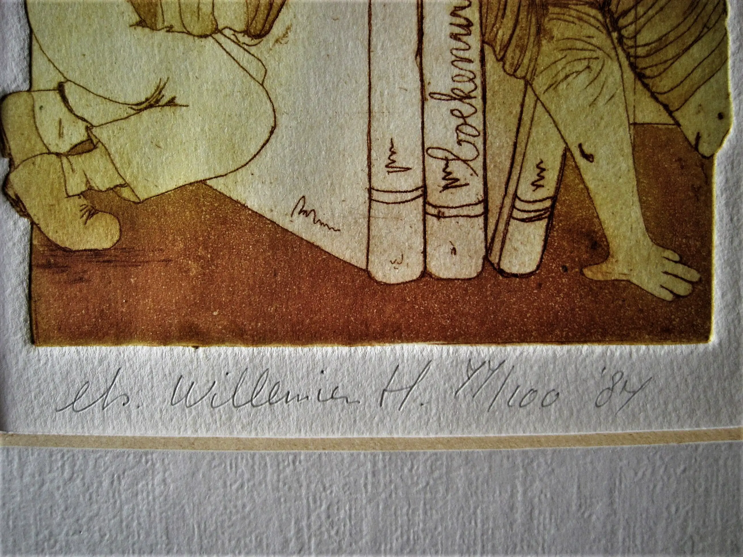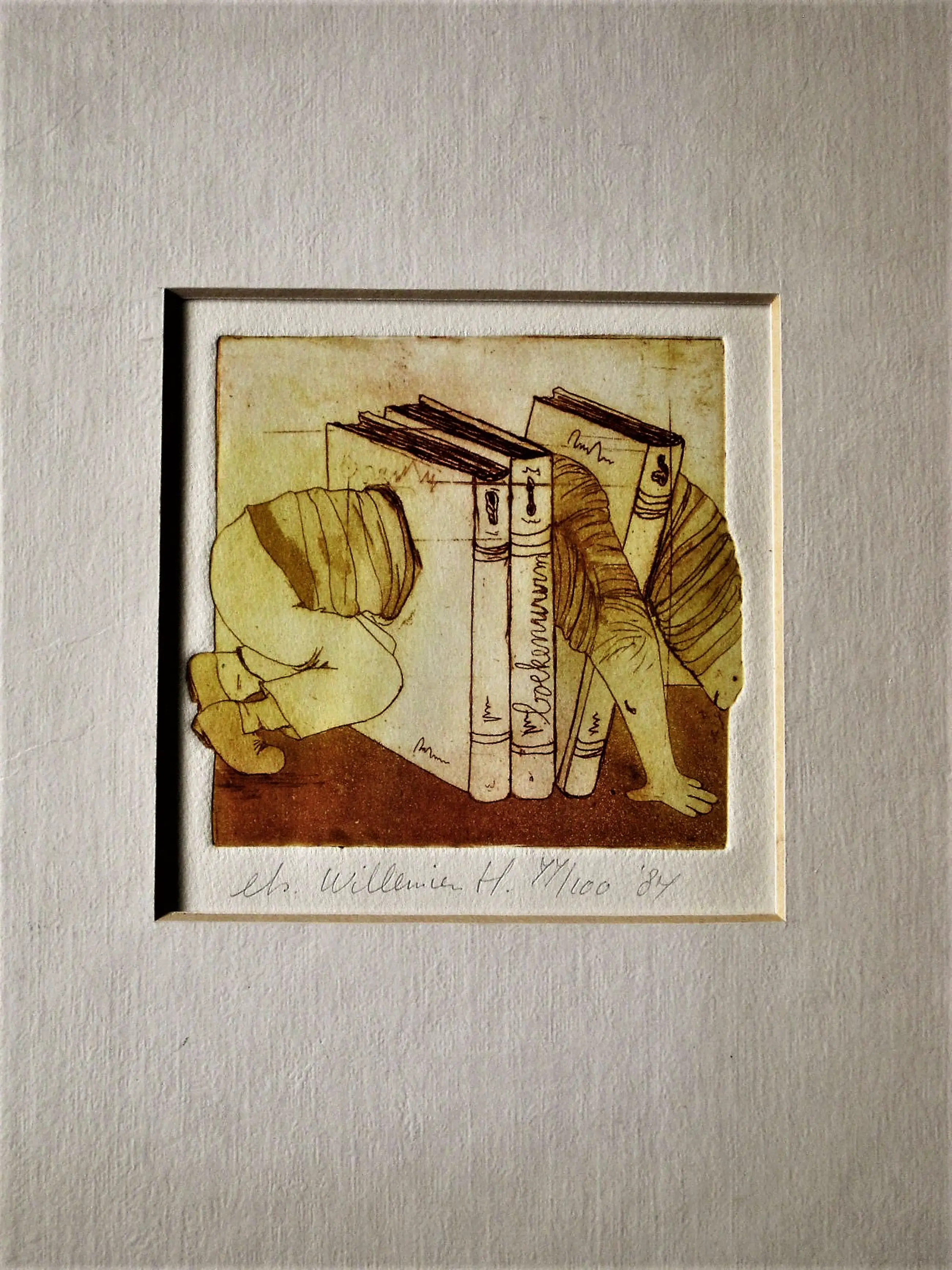 Al vele jaren houd ik me bezig met het maken van grafisch werk. Vooral etsen en kleuretsen hebben mijn voorkeur. Ik verkocht ze in het verleden in Galerie De Stoof in Deventer. In het centrum voor kunsteducatie De Leeuwenkuil in Deventer gaf ik les in het maken van etsen en kleuretsen. Veel mensen heb ik geleerd hoe een ets tot stand komt en hoeveel plezier en voldoening het geeft om een geslaagde afdruk onder de pers vandaan te halen. Niet alle afdrukken kregen mijn goedkeuring. Het mooie, maar als ets afgekeurde materiaal gebruikte ik voor het maken van schalen in papier-maché. In een later stadium voegde ik daar ander materiaal aan toe zoals in de natuur gevonden objecten. Het is verrassend te ontdekken hoe een tak of stukje hout met ingrepen en toevoegingen veranderd in een bijzonder ruimtelijk werk. Een boswandeling kan een heel gelukkige wandeling worden als ik een mooie tak vind of een, bij het snoeien van bomen, prachtig gevormd stuk hout. In een periode van rust heb ik me verdiept in het maken van “zentangles”, tekeningen gemaakt met pennen van diverse diktes. Gemaakt vanuit vaste patronen maar ook vanuit intuïtie en meditatie. Ook deze tekeningen lenen zich net zoals het grafische werk voor een 3 dimensionale aanpak. Naast bovengenoemde kunstuitingen is ook het maken van aquarellen voor mij een geliefde bezigheid. Vaak maak ik ze in opdracht. (bron: willemienholterman.nl)