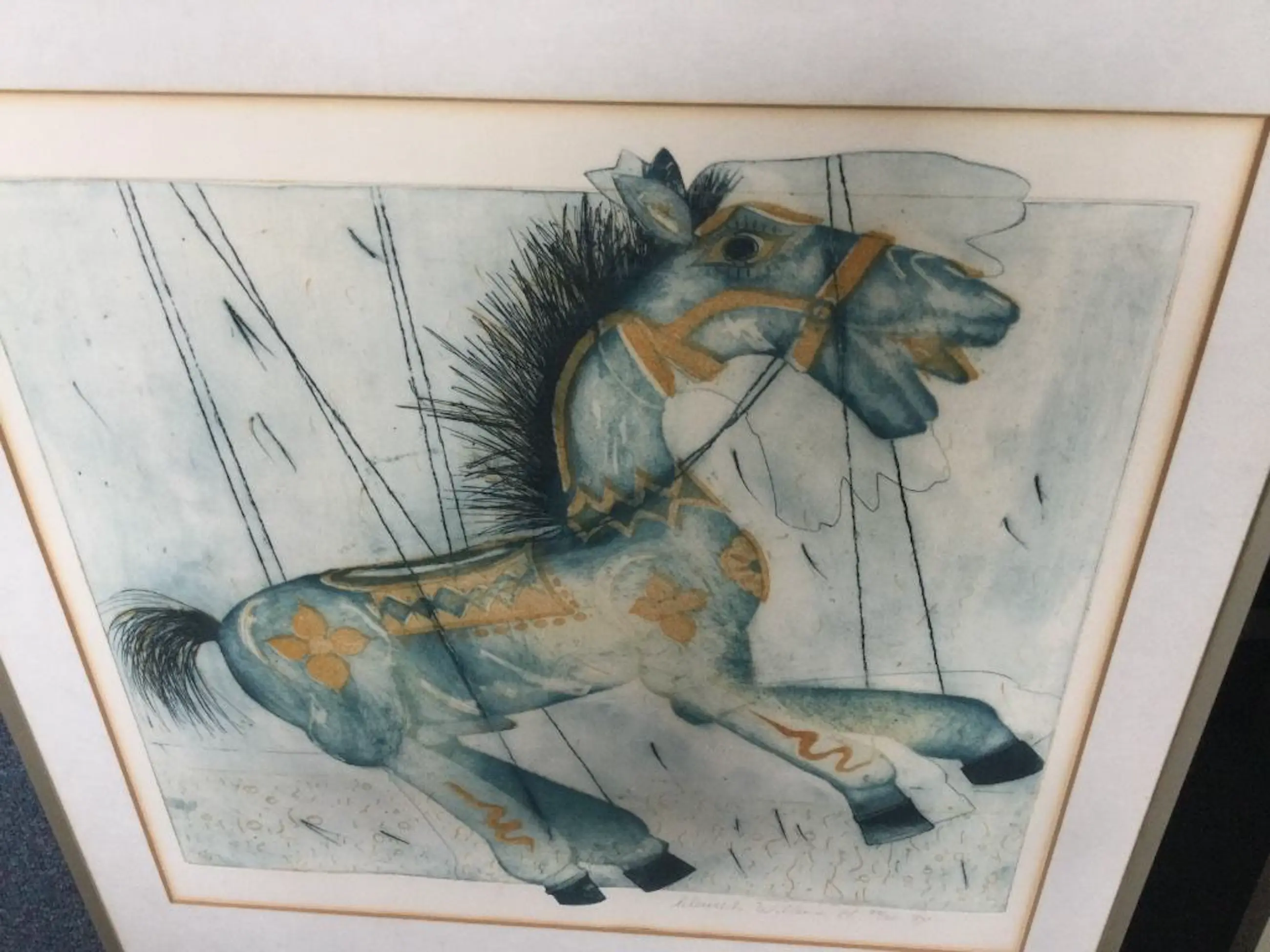 zeefdruk/Kleurenetsen van twee paardjes. Lijsten, Zeefdrukken en Passe-Partout in prima staat. Eventueel in overleg ook los te koop