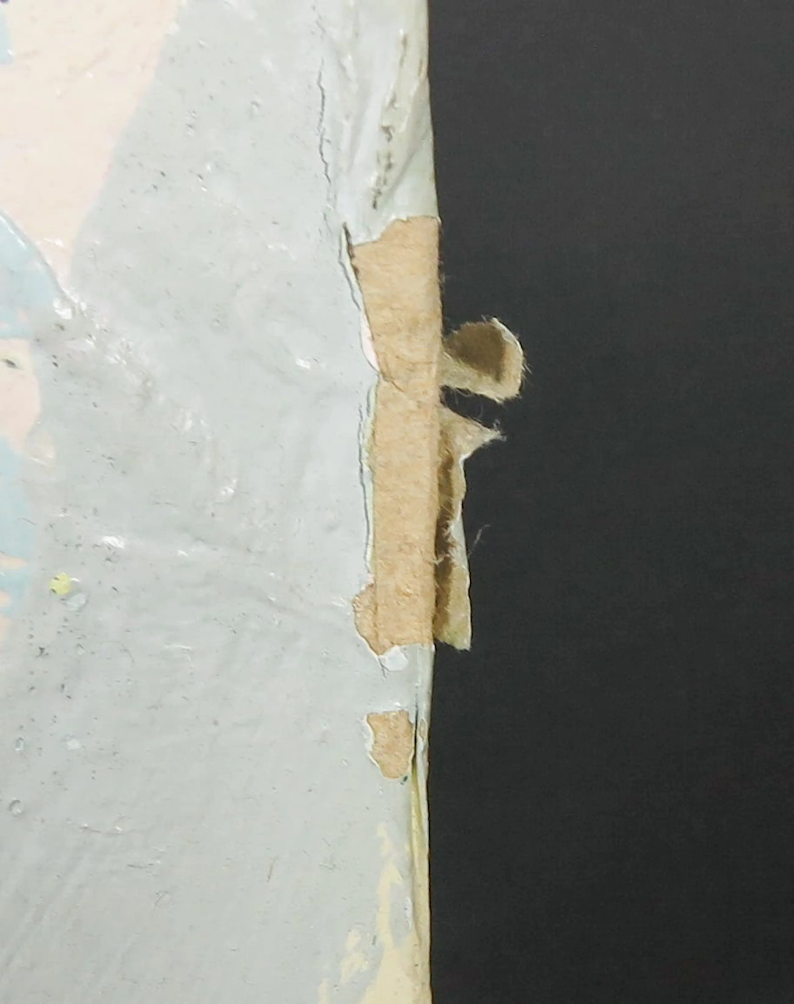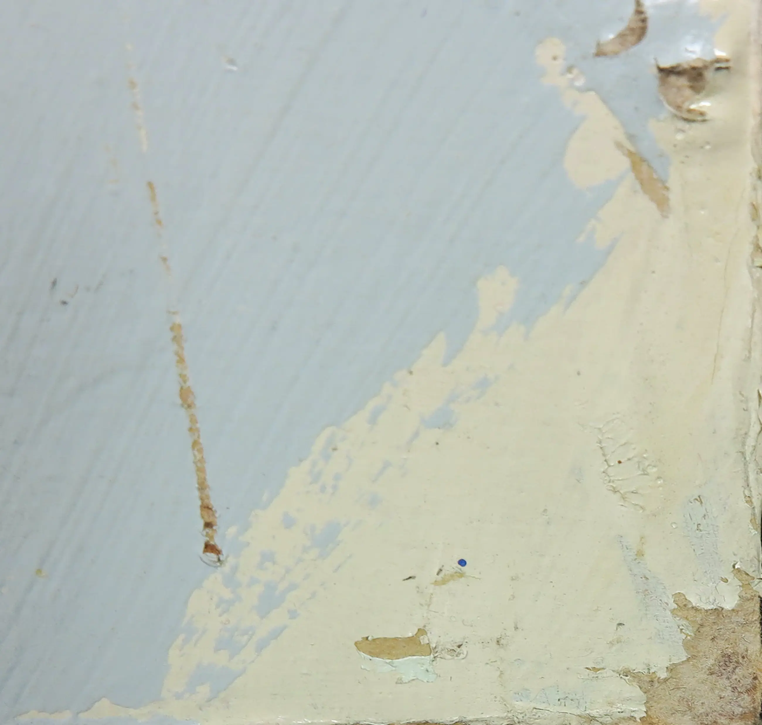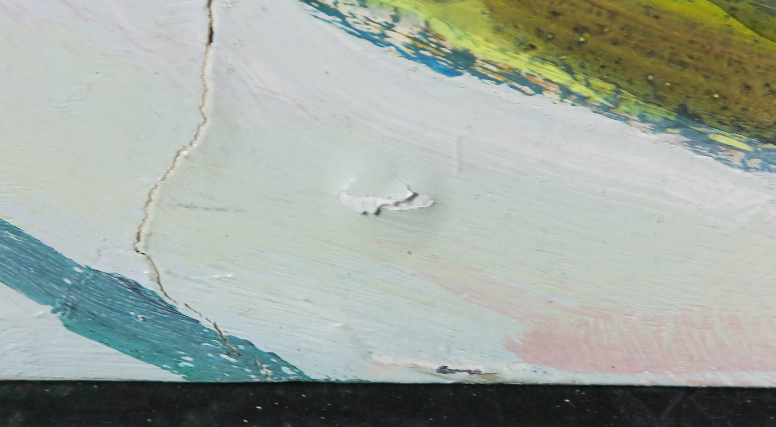 | Het werk heeft op meerdere plekken oppervlakteschade. De detailfoto's proberen een indicatie te geven van de huidige staat van het werk. | |