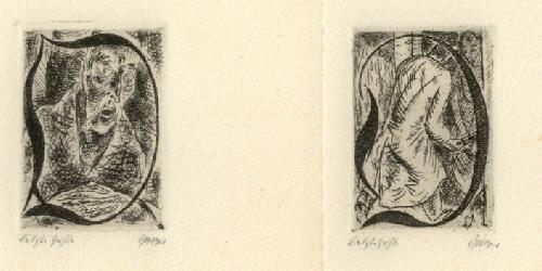Willi Geiger Initialen zu Dostojewskijs Krotkaja 5 Blätter als letzter Zustand bezeichnet und jeweils eihgenhändig signiert. Plattengröße 6,7 mal 8 cm. Diese Blätter haben zeitgemäße Altersspuren und Druckerspuren.Auf kräftigem Velin.Dazu drei Blätter als zweiter Zustand, erster Probeedruck bezeichnet und jeweils signiert.Diese drei Blätter haben einen breiten Rand, der jeweils im rechten Bereich häßliche braune Flecken hat. Trotzdem ist das Ganze fast singulär.Fragen unbedingt vorher klären.Scans können geschickt werden.Ersteigert bei Winterberg.Privatverkauf.Versand 8 Euro.