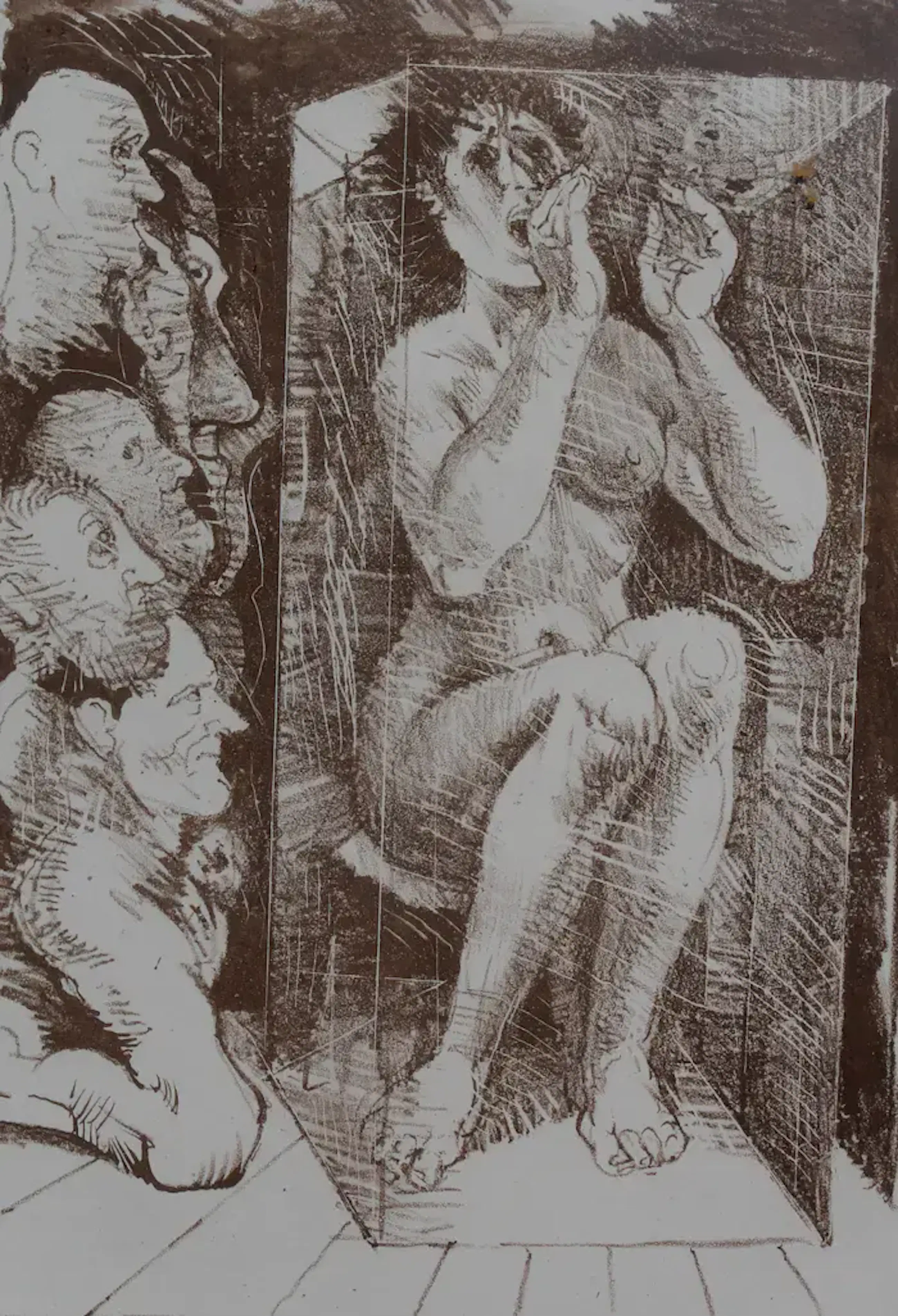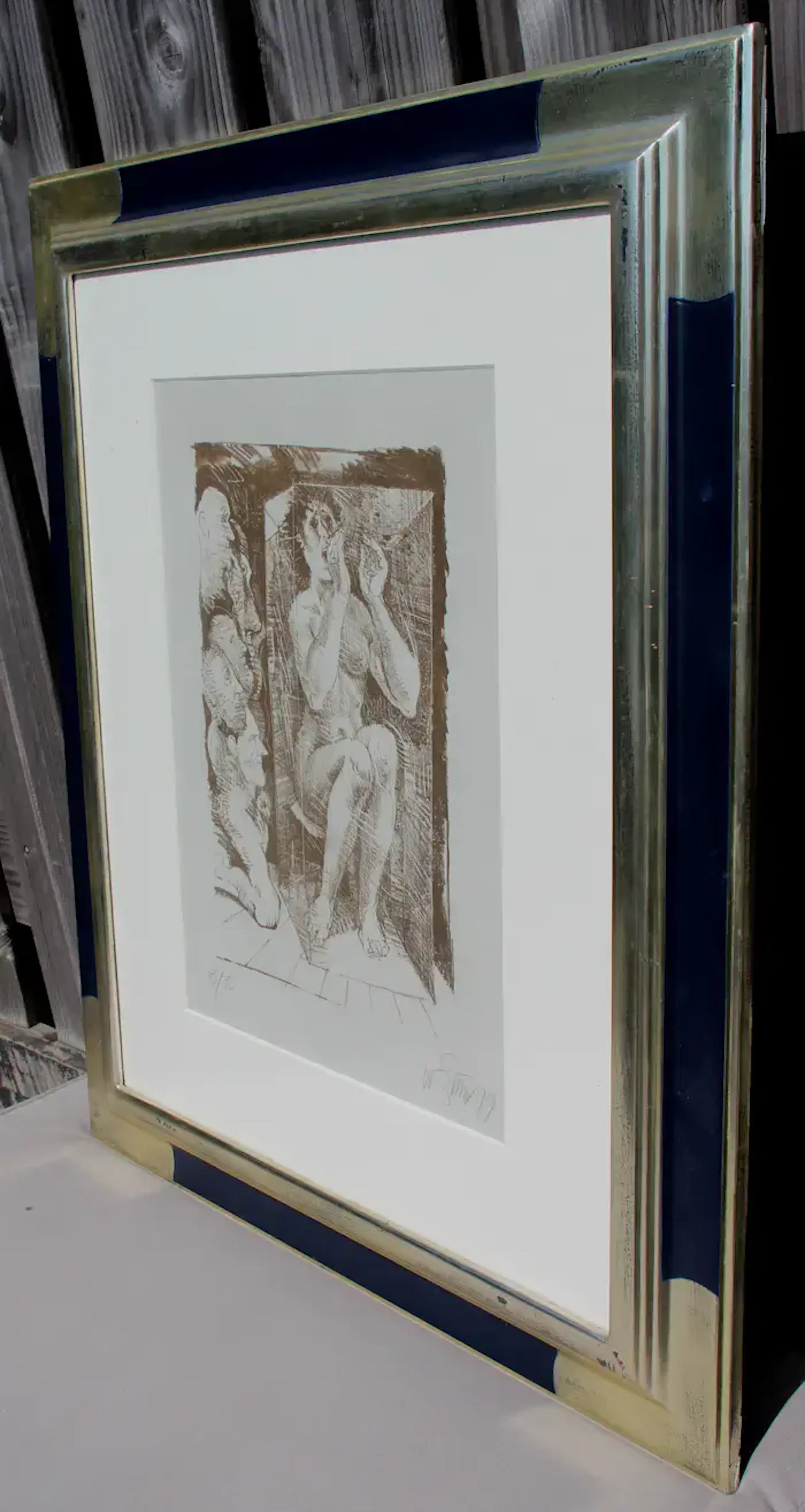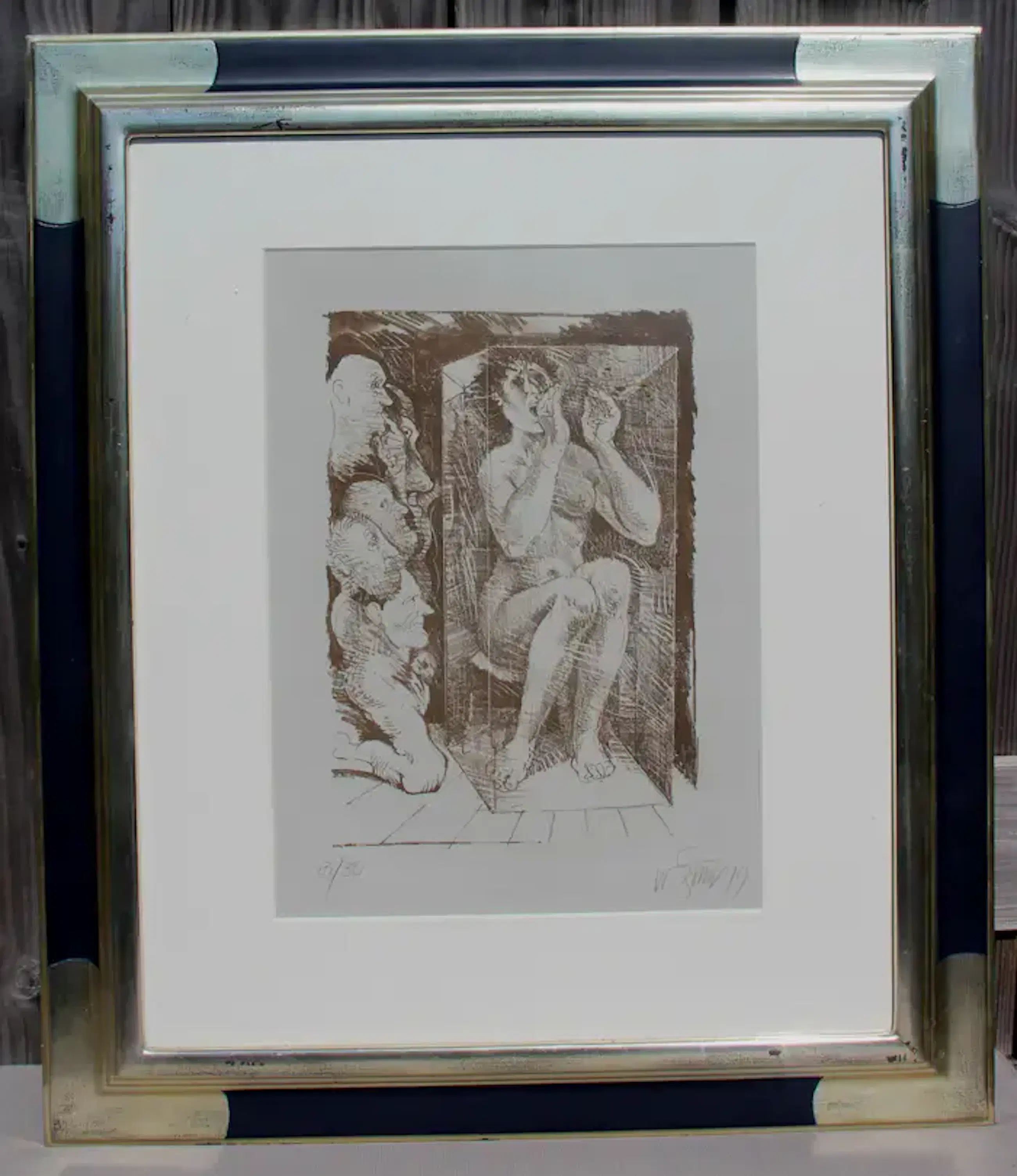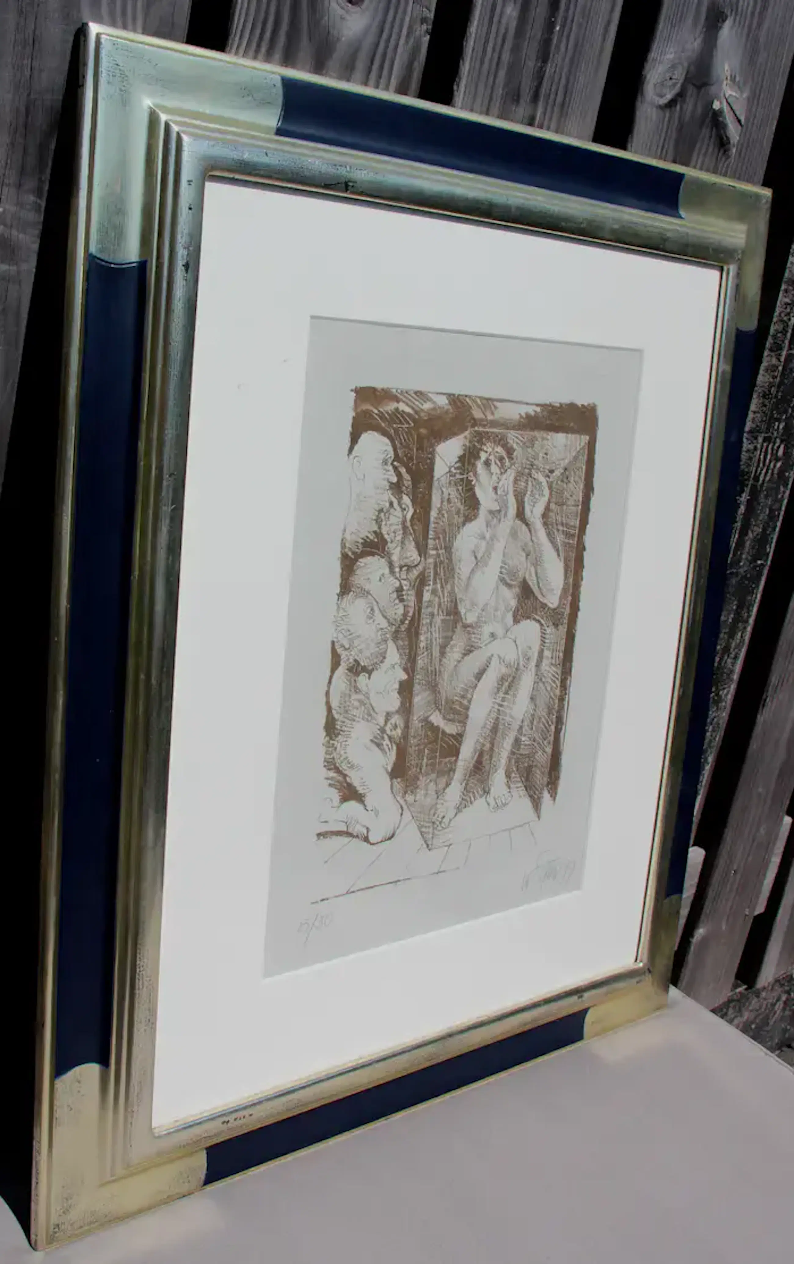 Ingelijste litho van Willi Sitte uit 1999. Een figuratieve voorstelling. Oplage: 23/30. Afmetingen incl lijst: H72 x b62cm. Afmetingen voorstelling: H42 x b30cm. Het werk is rechts onder gesigneerd en gedateerd door de kunstenaar. De authenticiteit van dit werk wordt volledig gegarandeerd. Een certificaat kan, op aanvraag, worden gemaild.