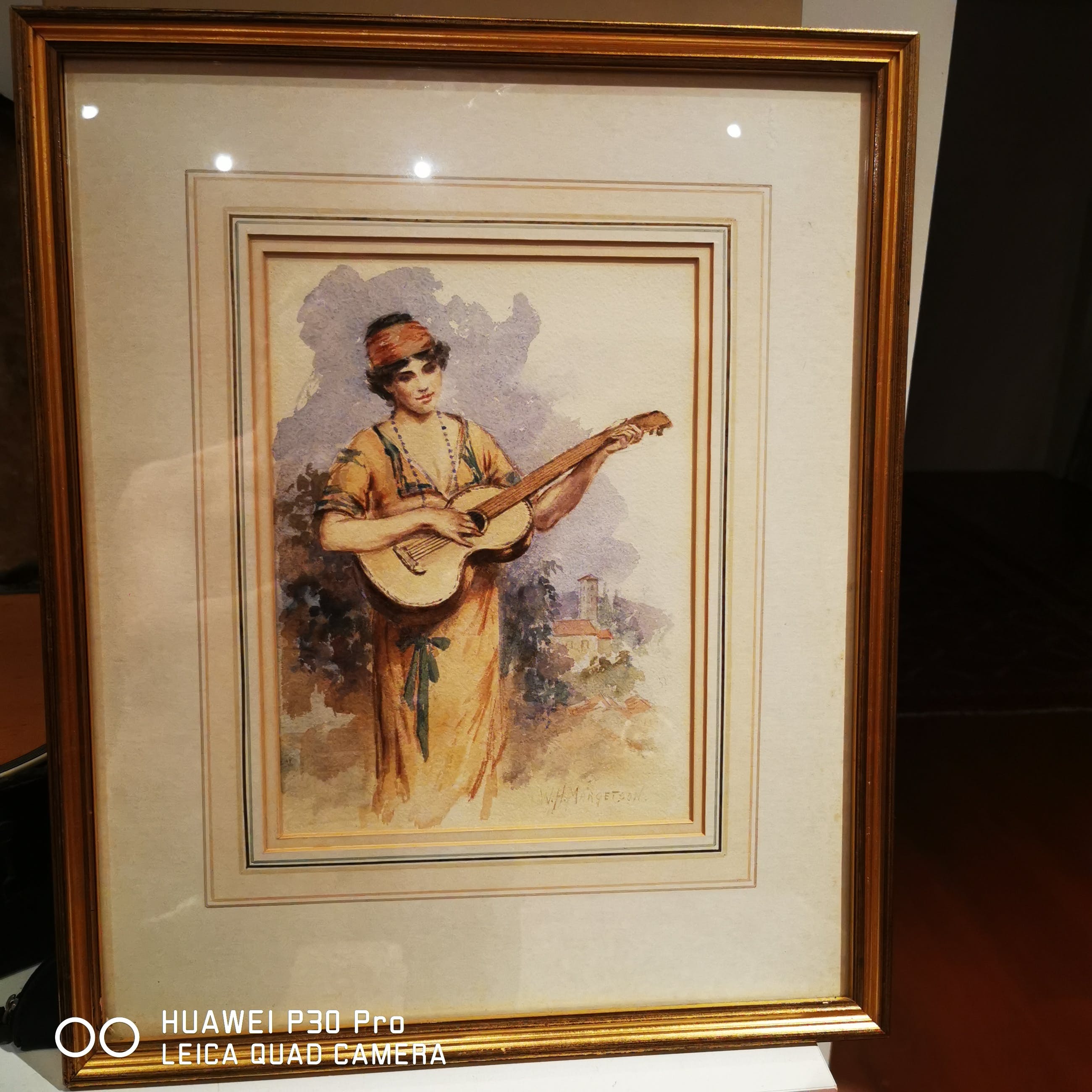 William Henry Margetson - vrouw spelend op een romantische gitaar