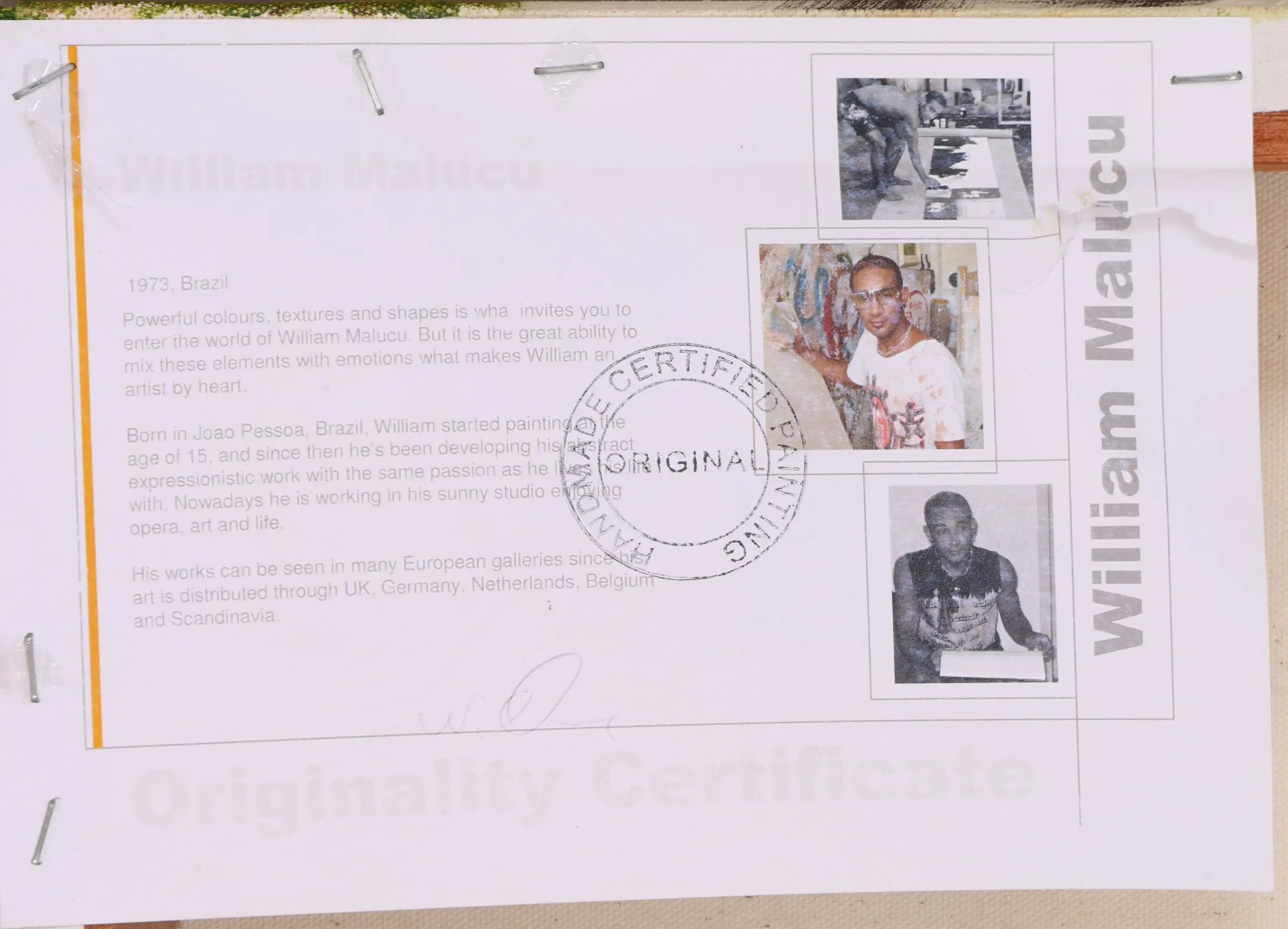 Dit werk is van William Malucu (1975) , een Braziliaanse kunstenaar die bekendstaat om zijn expressieve, kleurrijke abstracte werken. Zijn doeken barsten van energie en beweging, waardoor de emotie als het ware van dit schilderij afspat.