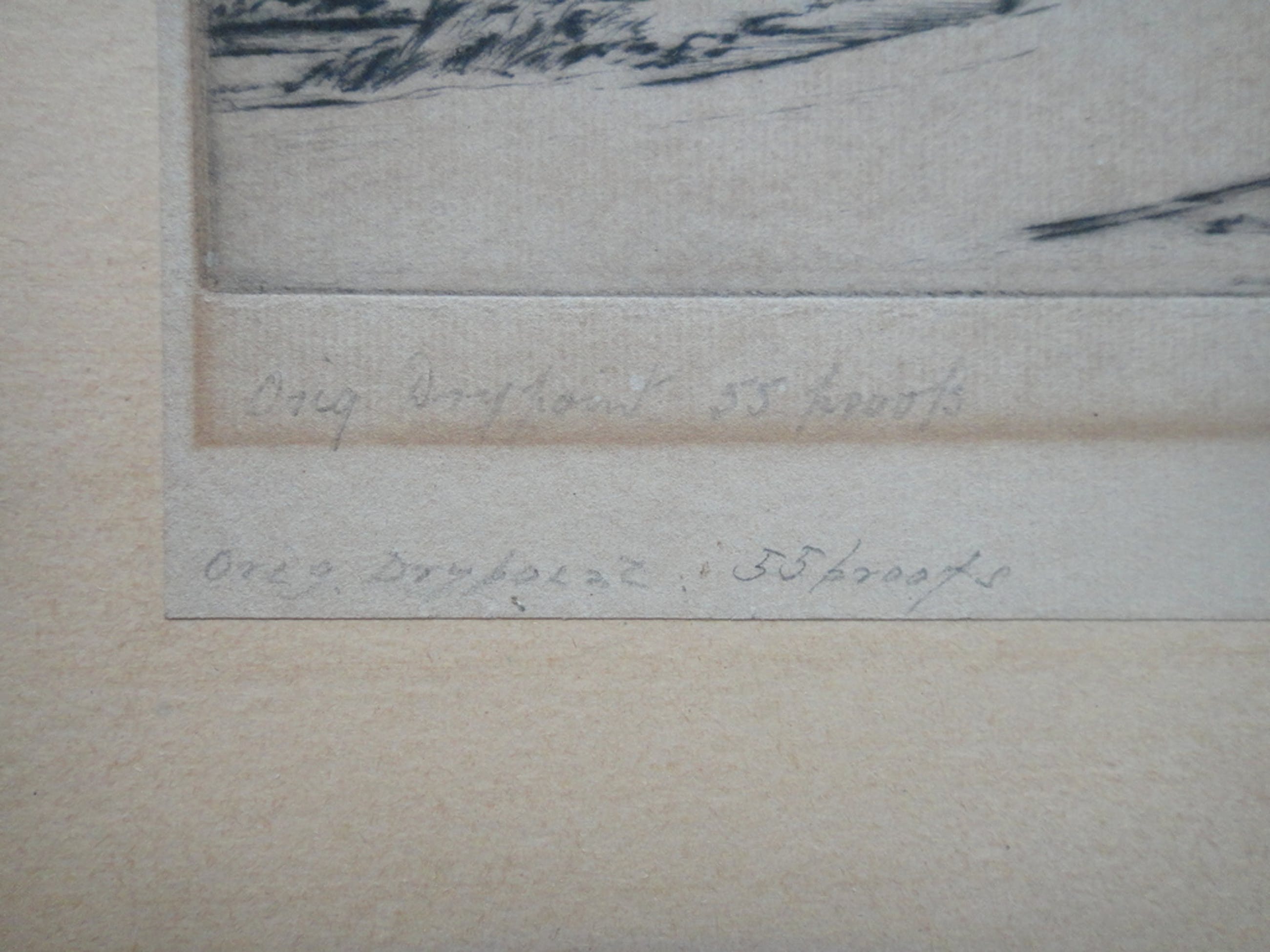 Droge naald ets van de Engelse kunstenaar William Palmer Robins.