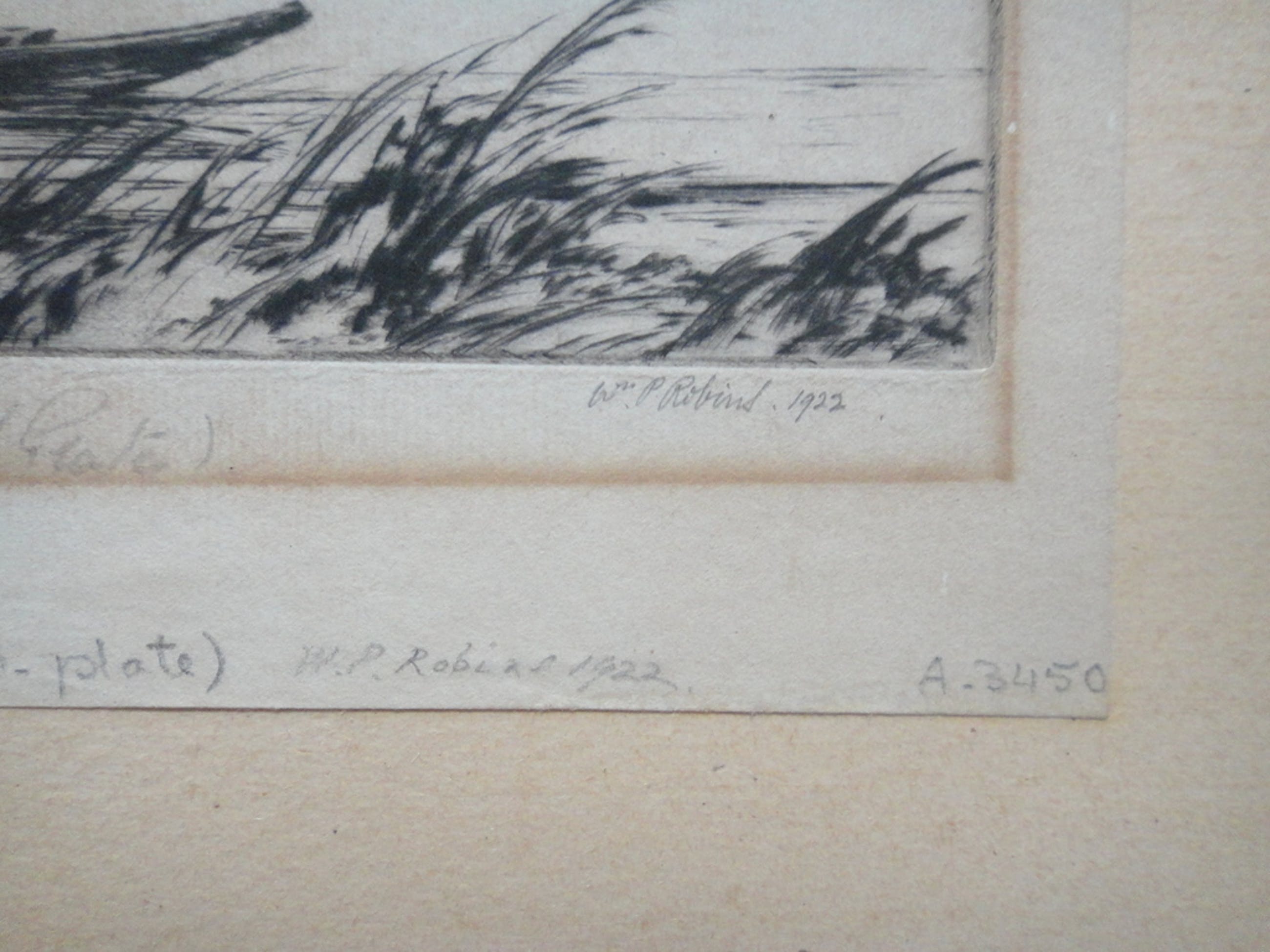 In potlood: 'Orig dry paint, 55 proofs, The stour at Manningtree (2nd plate) WP Robins 1922'.