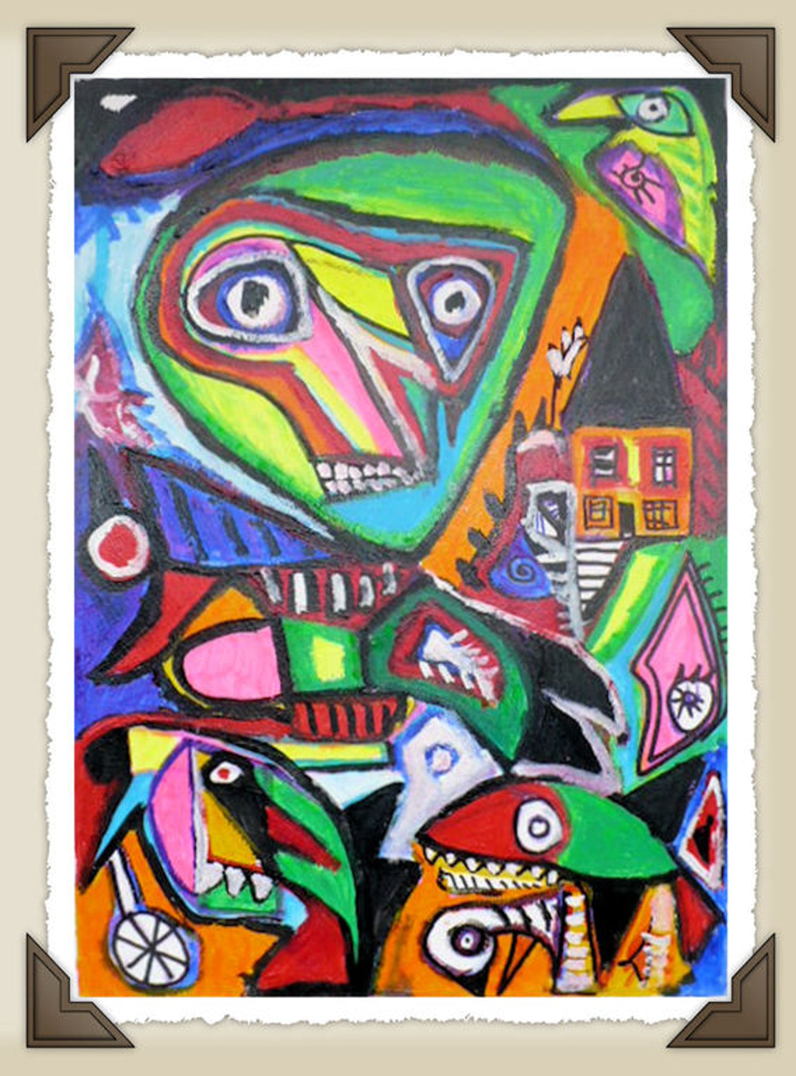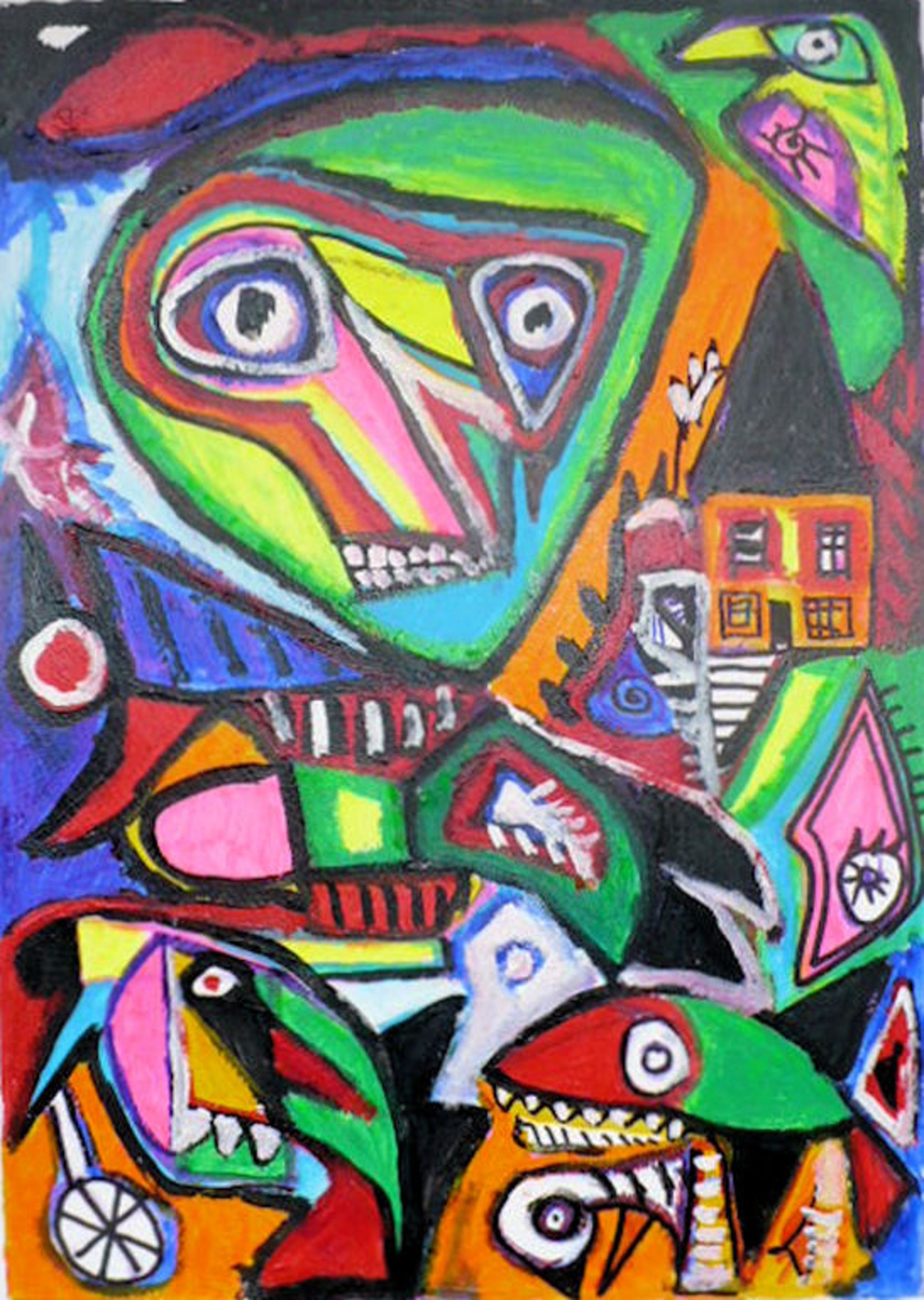 Fraai kleurrijk Cobra schilderij van de bekende Belgische schilder William Remory.