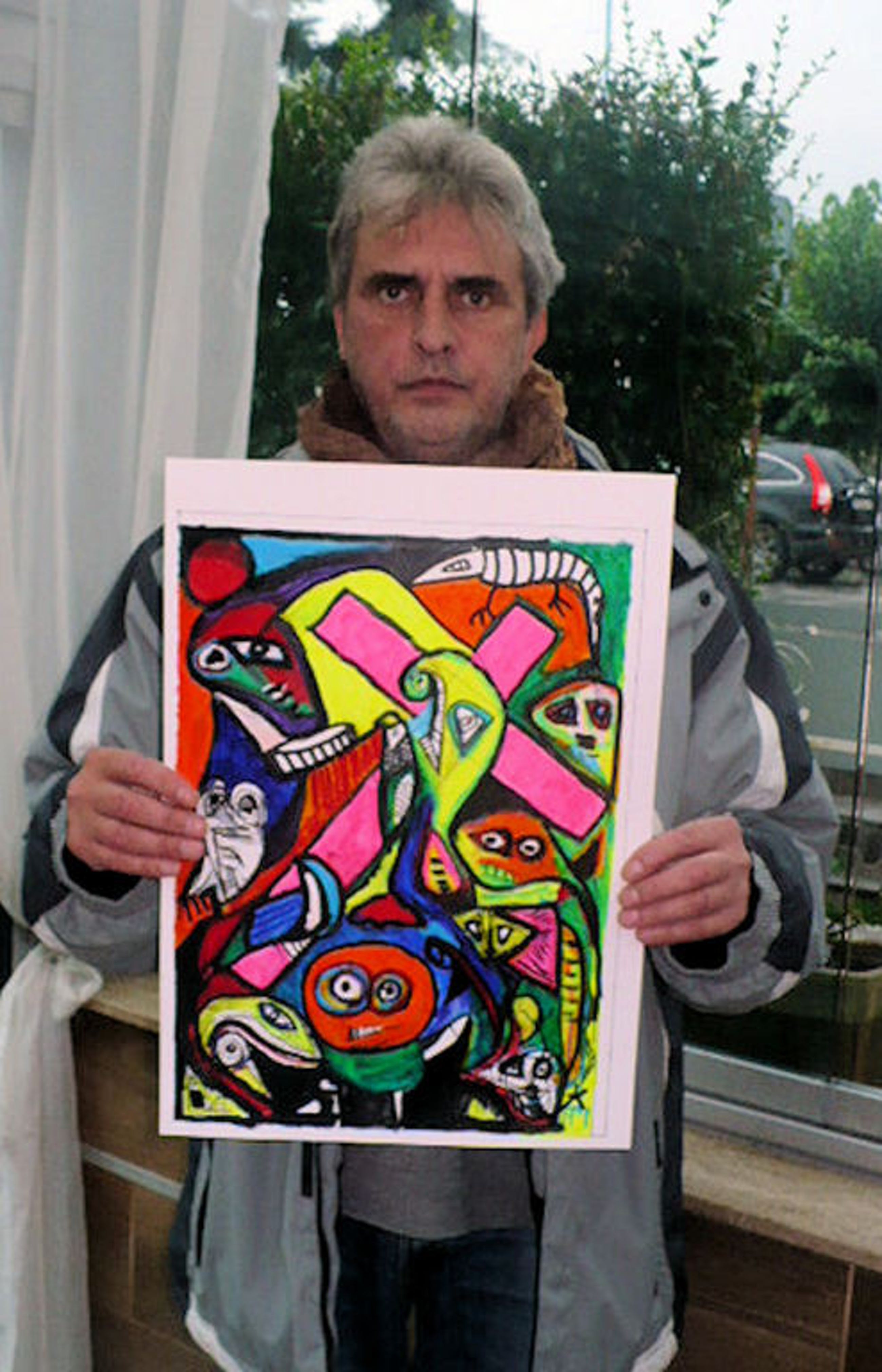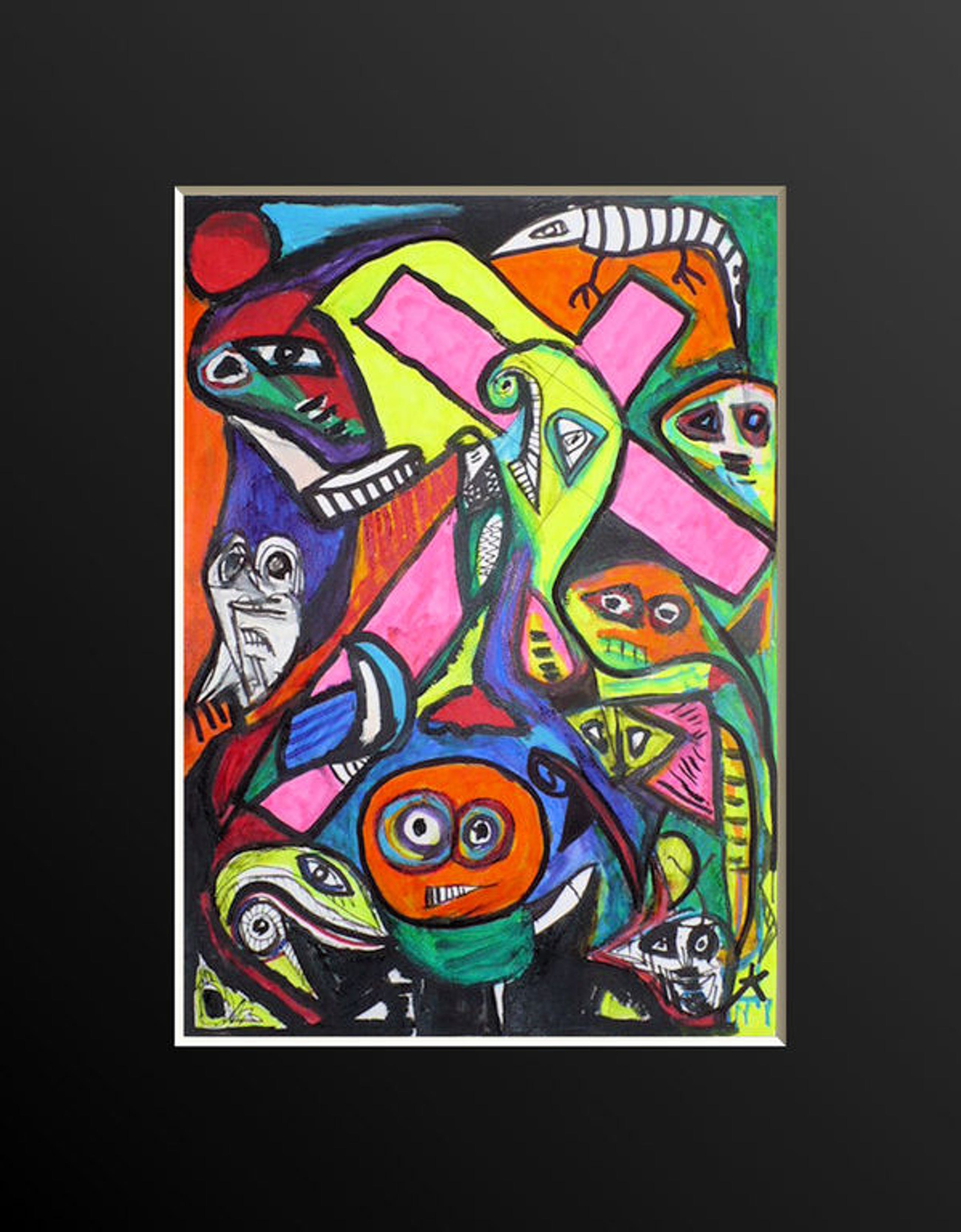 Fraai kleurrijk schilderij in de Cobra stijl van de Belgische kunstenaar William Remory.