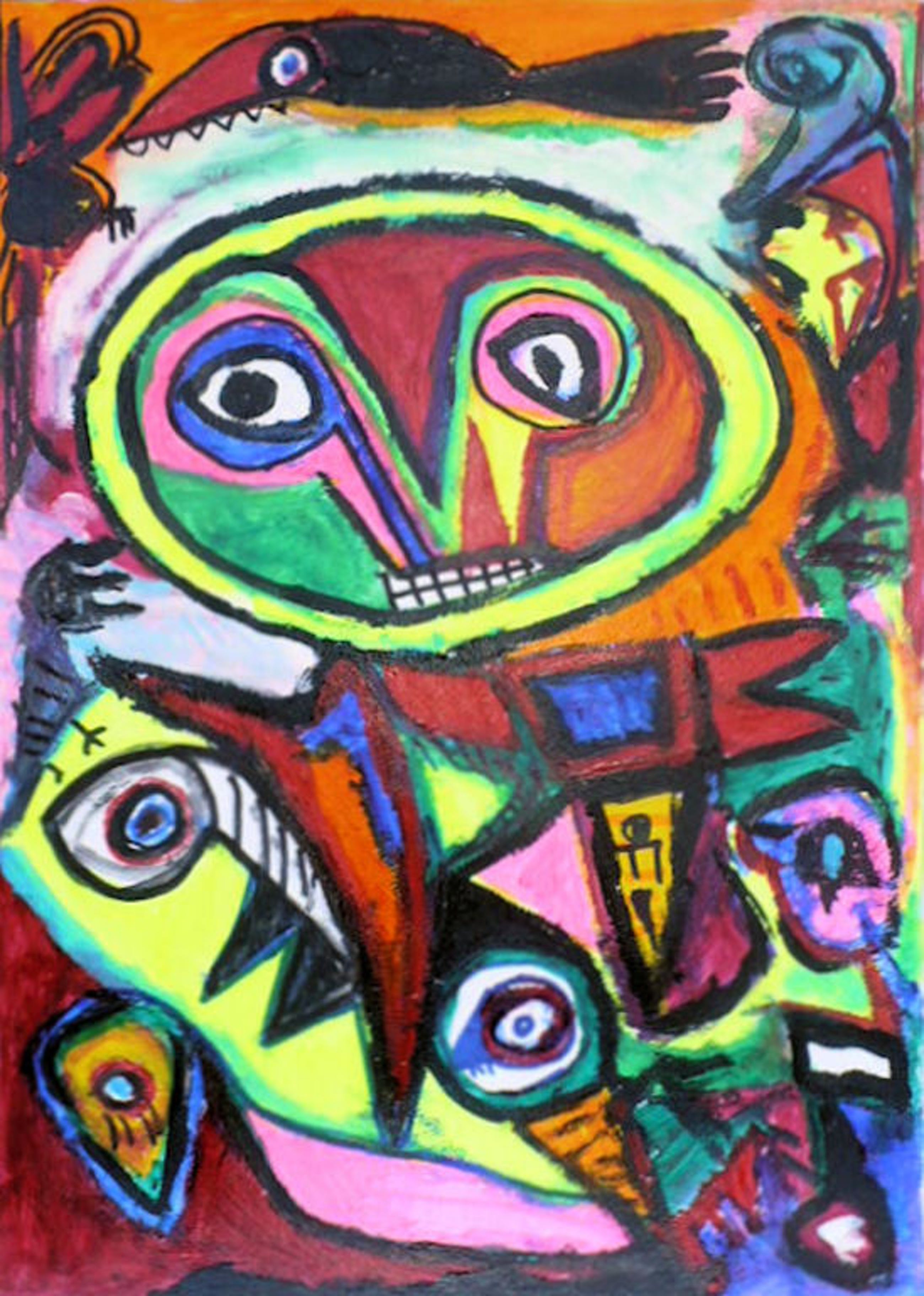 Fraai kleurrijk Cobra schilderij van de bekende Belgische schilder William Remory.