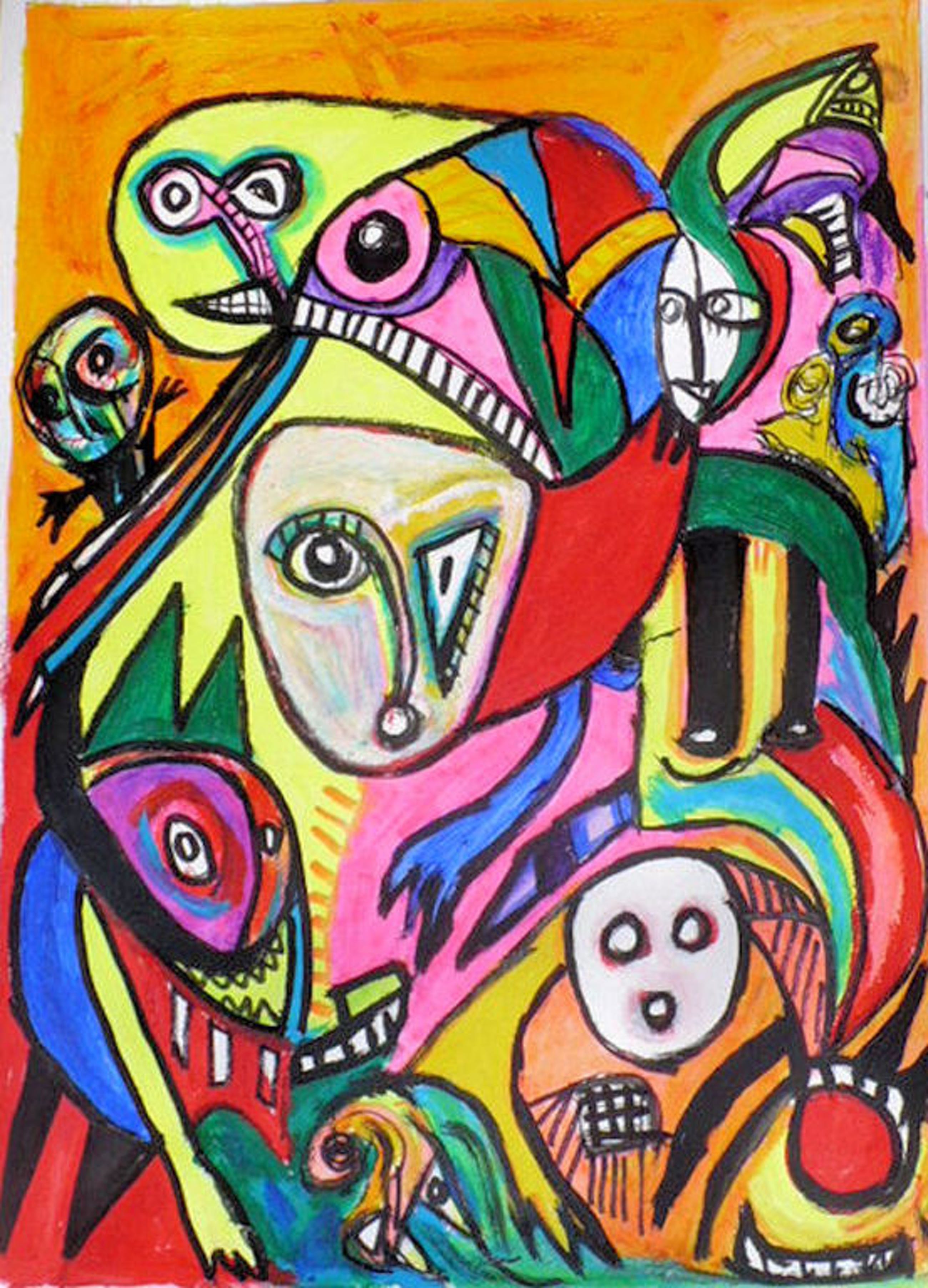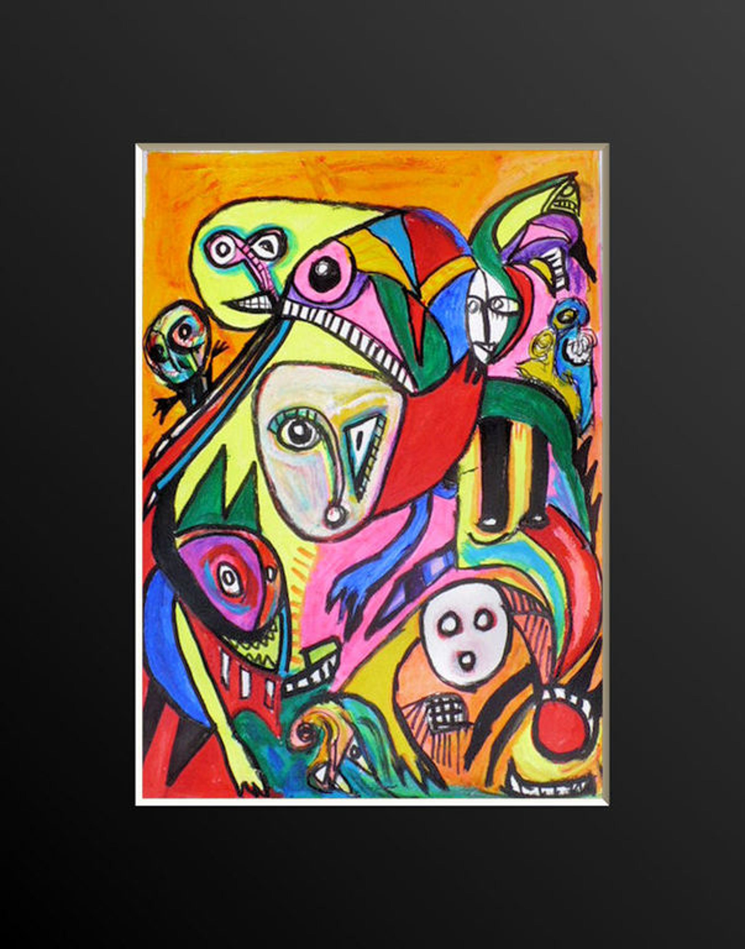 Fraai kleurrijk Cobra werk van de bekende Belgische schilder william remory in zijn 'eigen' Cobra stijl.