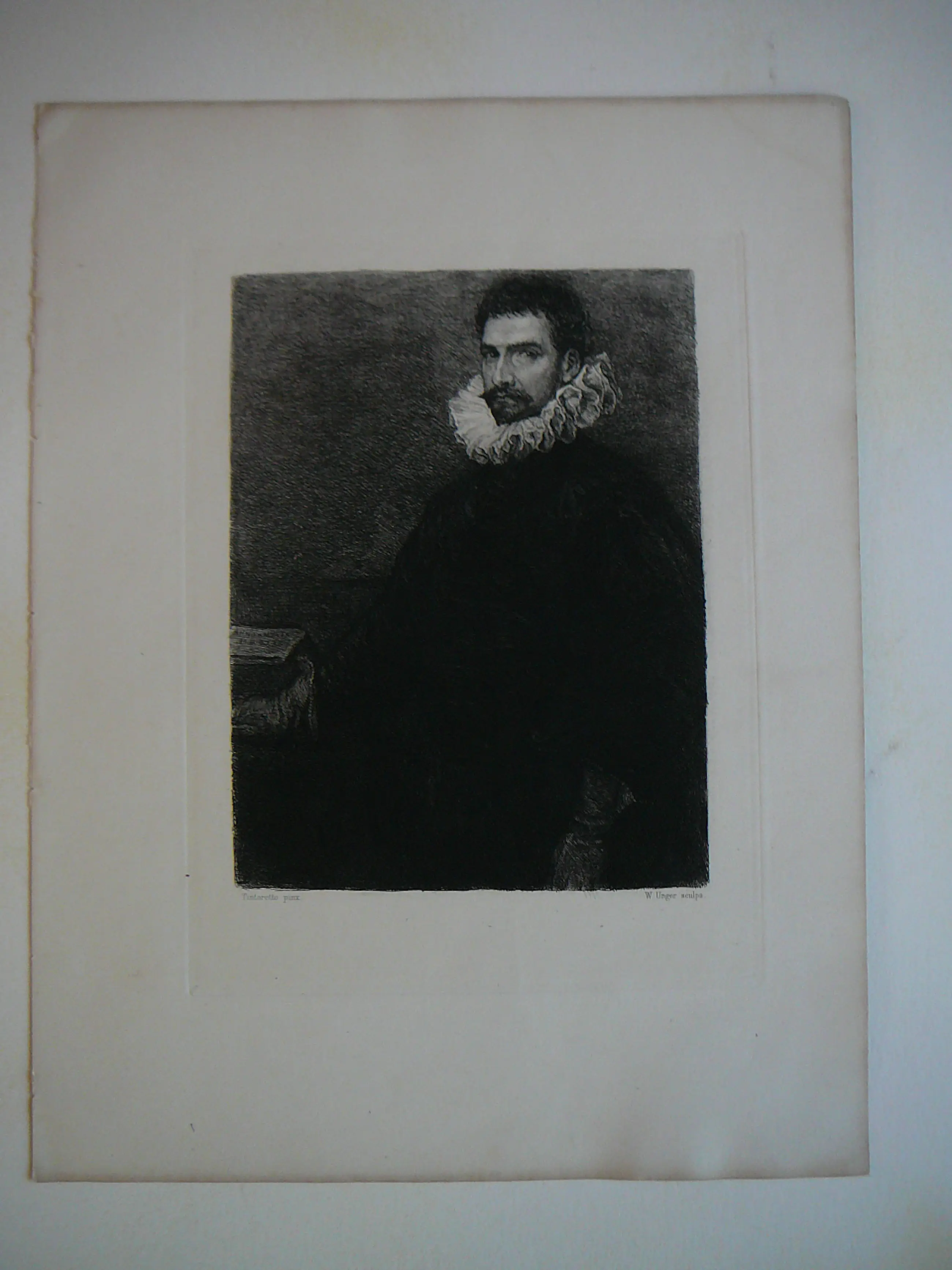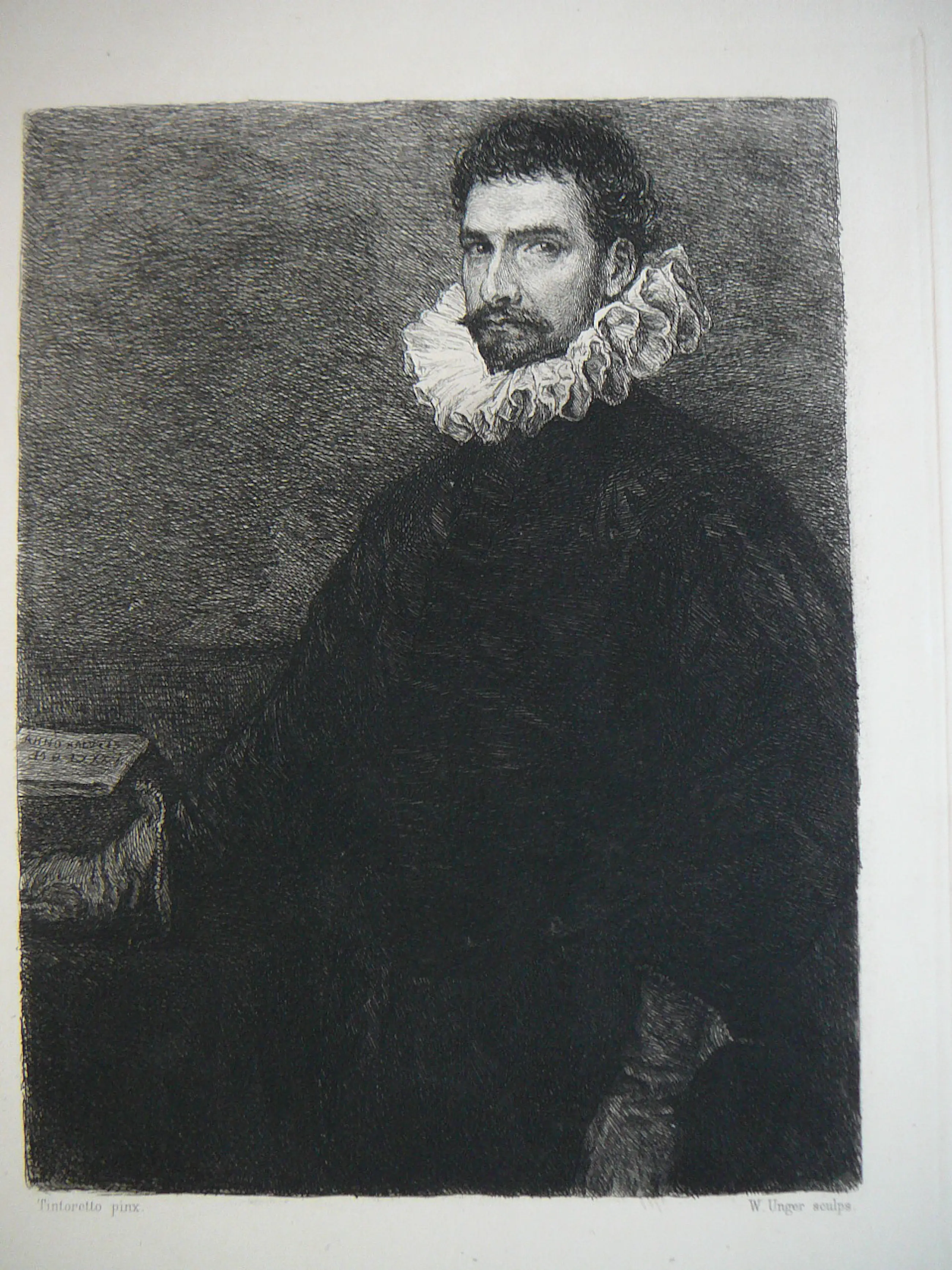 Mooie ets van Il Tintoretto (Venetiaanse edelman )doo W Unger naar een schilderij van Jacopo Robusti afm papier 34 26 cm