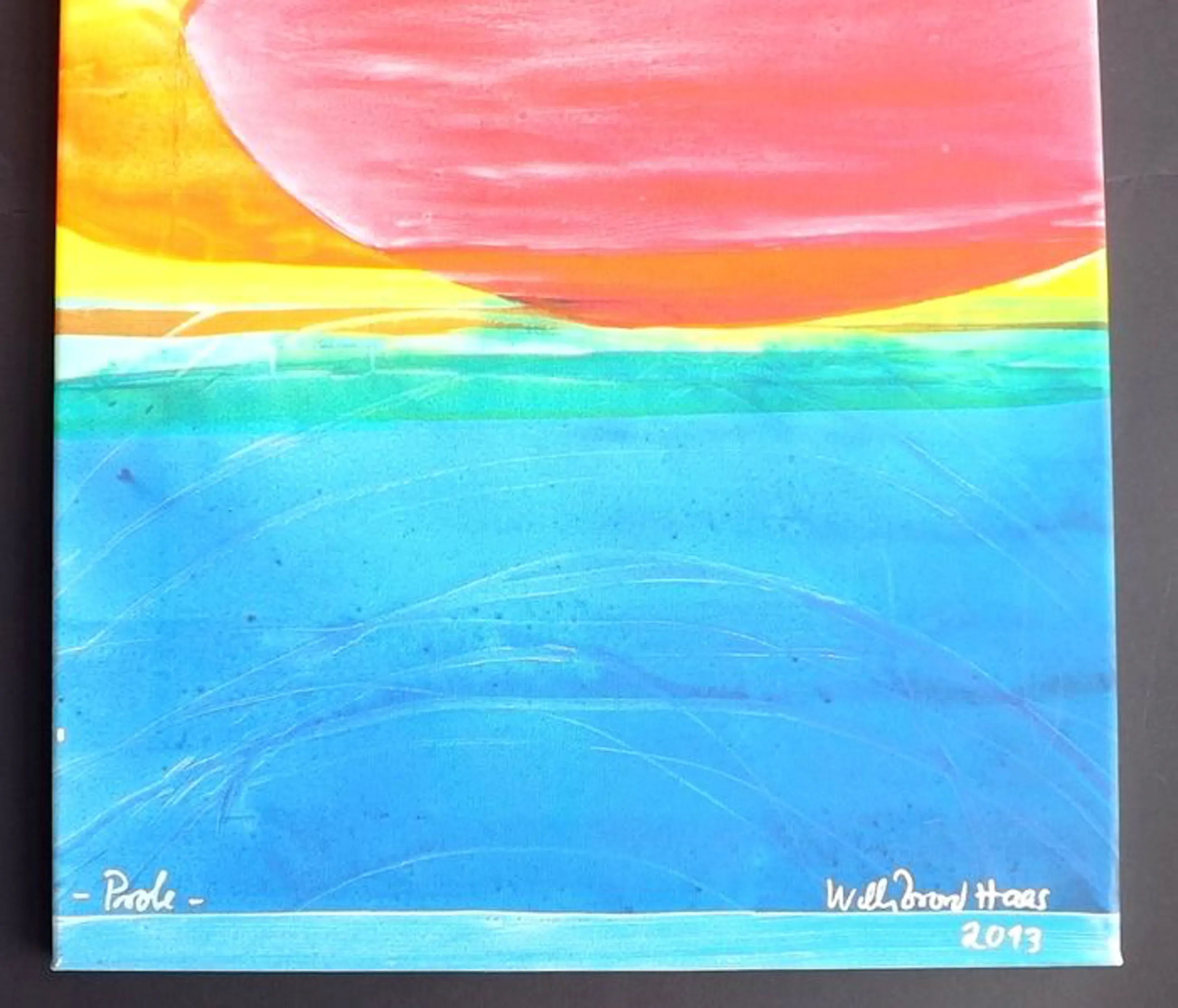 | Gicleeprint uitgevoerd in heldere kleuren in zeldzame compositie (unika), geplaatst op een canvas frame. Hand gesigneerd in witte verf: r.o. -Wlllibrord Haas- en -2013-. - l.o. in de Duitse taal -Probe-.Afm: 36.5 x 54.8 x1.5 cm. - gewicht: 620 gram Conditie: kleuren in goede staat - aan de randen kleine plekjes met verfverlies door eerdere inlijsting. Foto's zijn onderdeel van de beschrijving. | |||||||||||