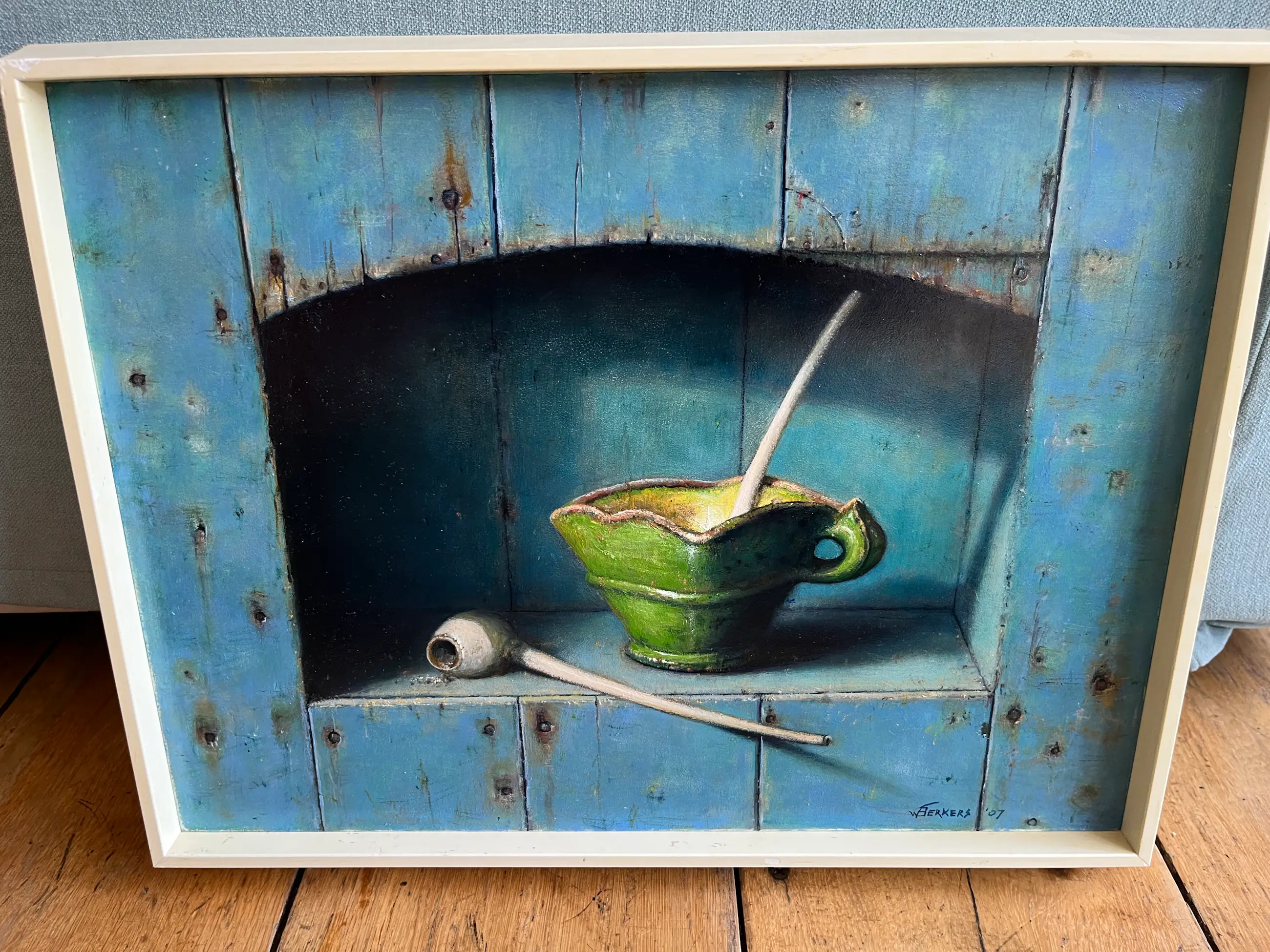 Het werk is af te halen op locatie. Als koper dient u zelf verpakkingsmateriaal mee te nemen. De locatie is: Almere, Nederland