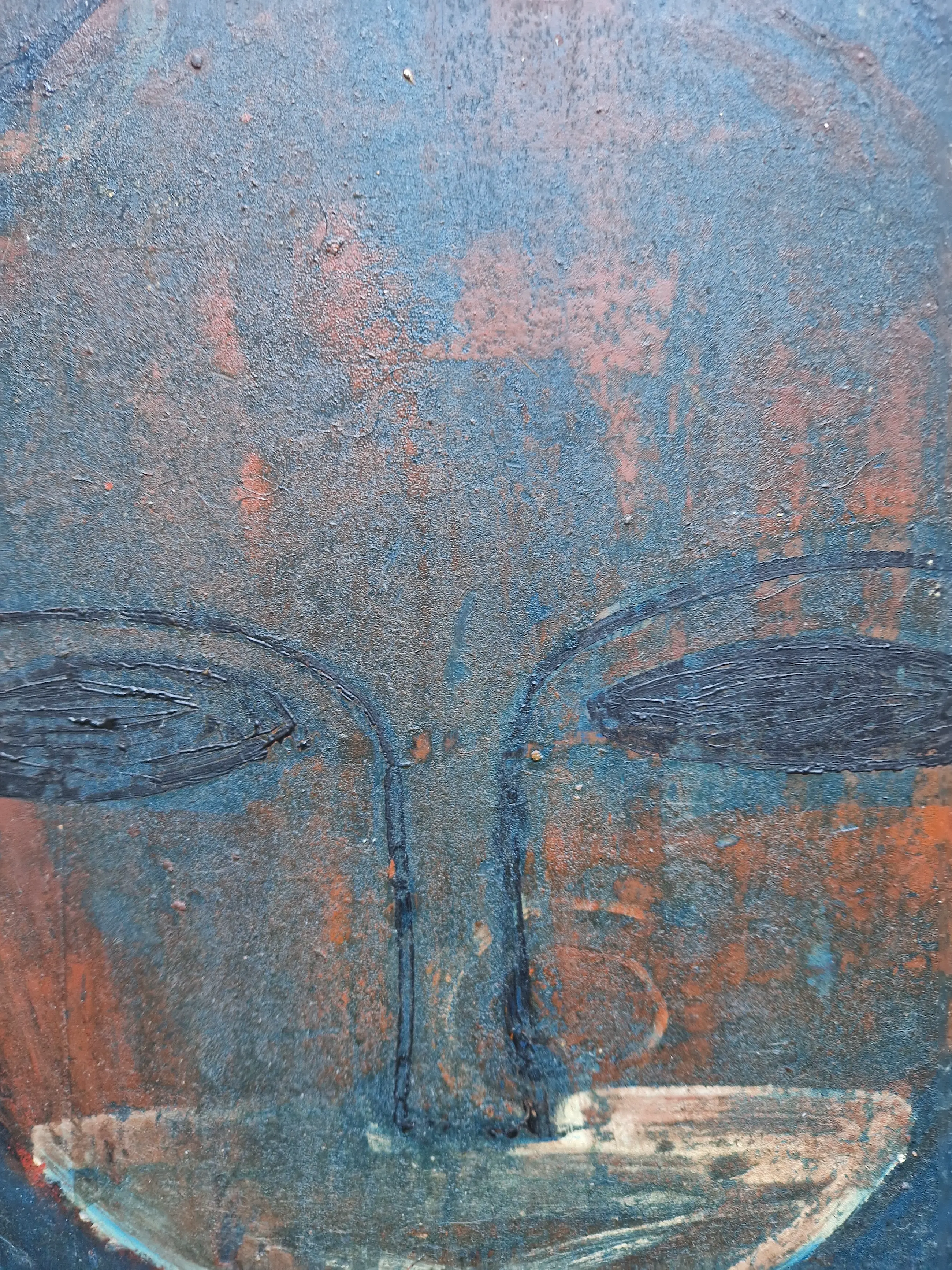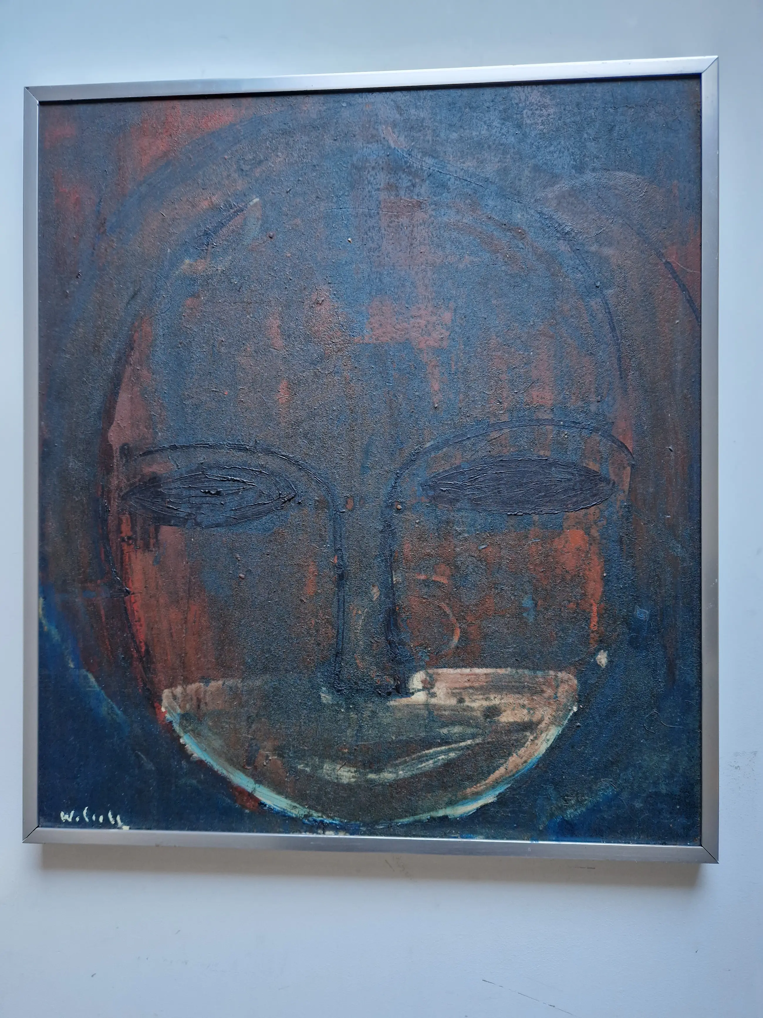 Indringend werk van de Belgische kunstschilder Willie Cools (1931-2011). Olieverf op paneel, ingelijst in aluminium lijst. Prima conditie. Afmetingen zonder lijst 46.5 x 41.5cm.