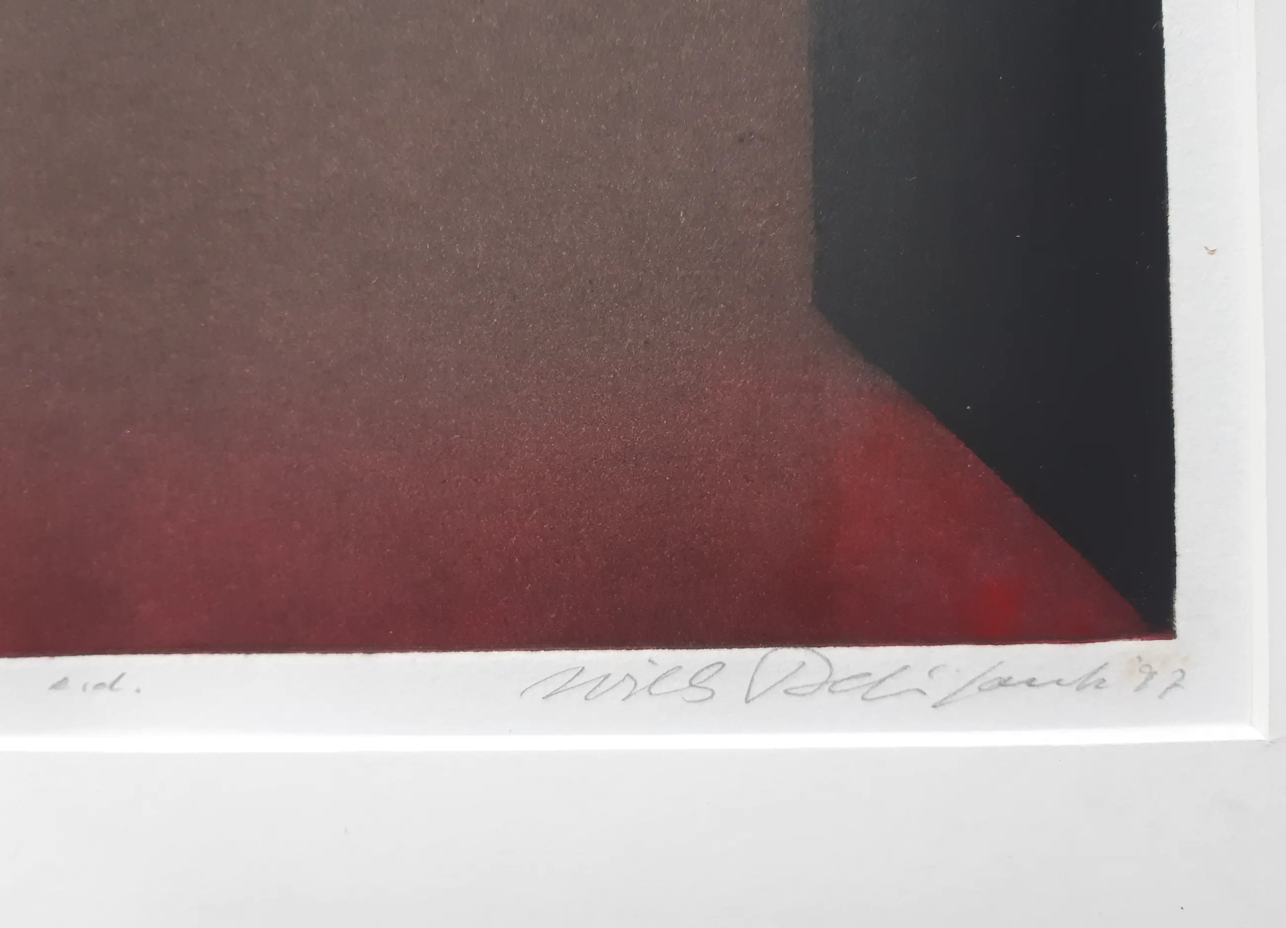 Kleurenets van Willy Belinfante, met de hand gesigneerd, genummerd, gedateerd en voorzien van titel en annotatie e.d. Ingelijst in stijlvolle aluminium lijst. De conditie van het geheel is uitmuntend.