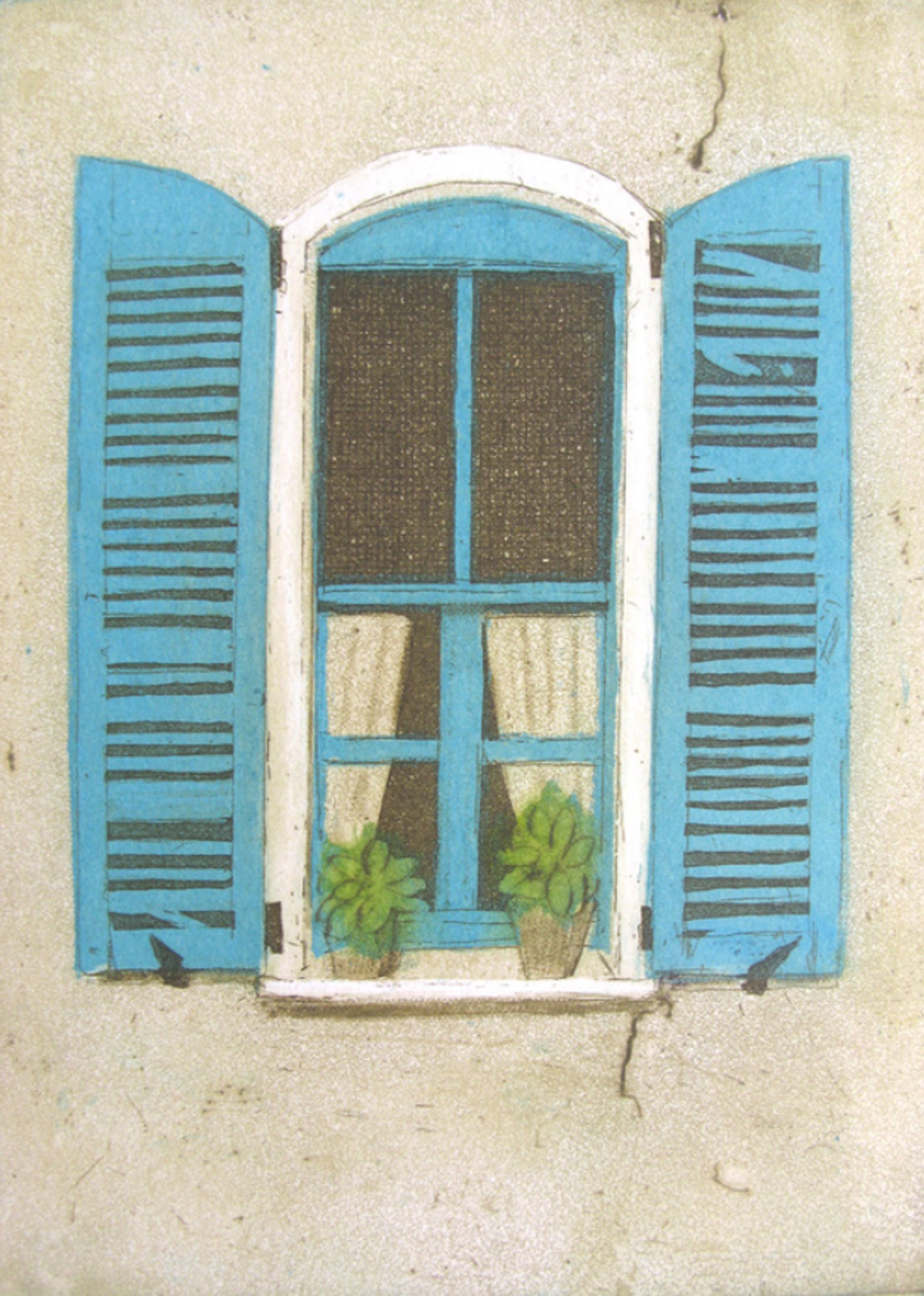Sfeervolle kleurets in de maten 13 cm. x 18 cm. Oplagegegevens zijn niet bekend, maar de ets is door de kunstenaar met potlood gesigneerd en voorzien van titel en jaartal.