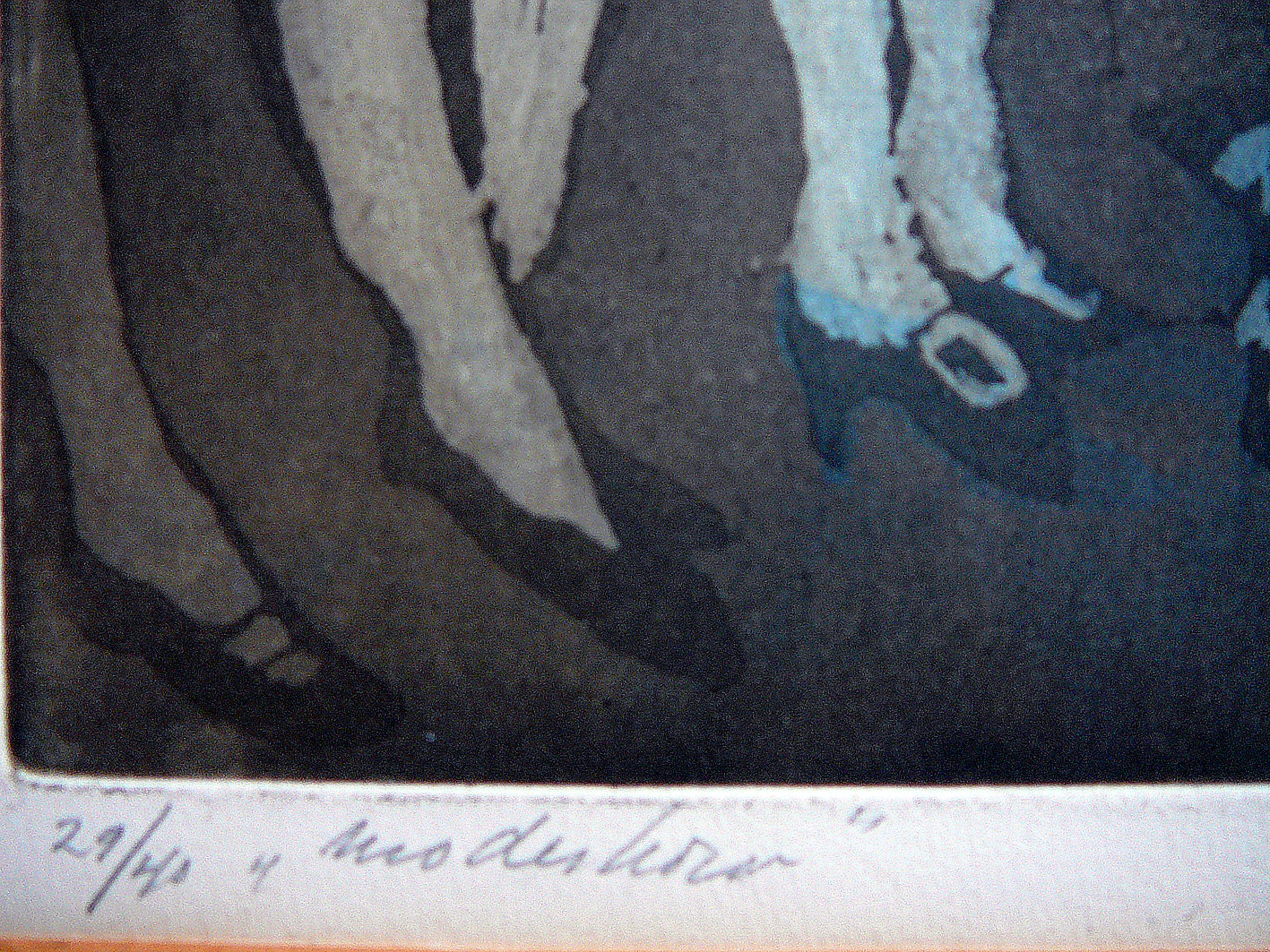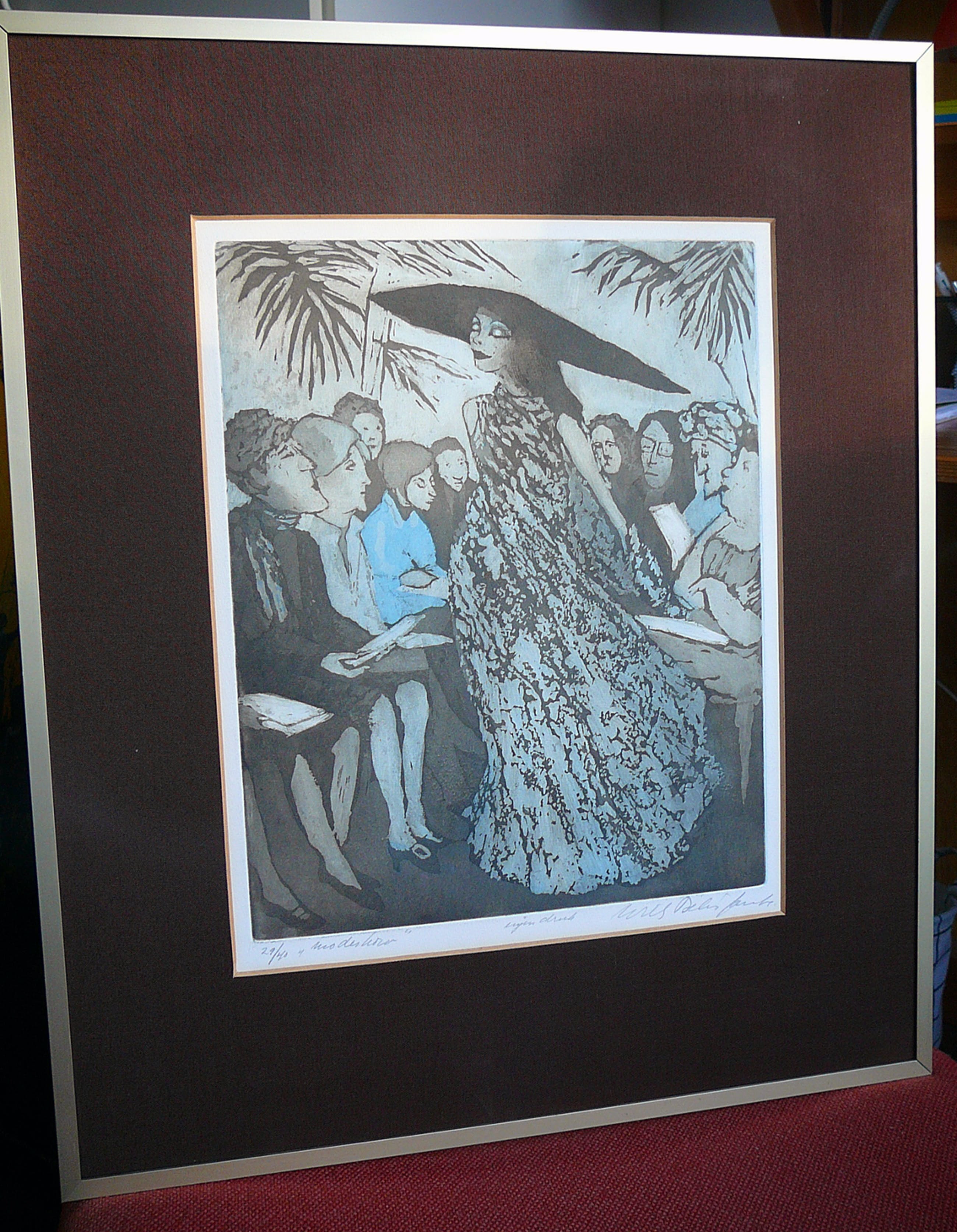 Herkenbaar werk van Willy Belinfante, jaren 90 vorige eeuw in zeer goede staat. Degelijke bronskleurige Barthlijst zonder glasplaat.