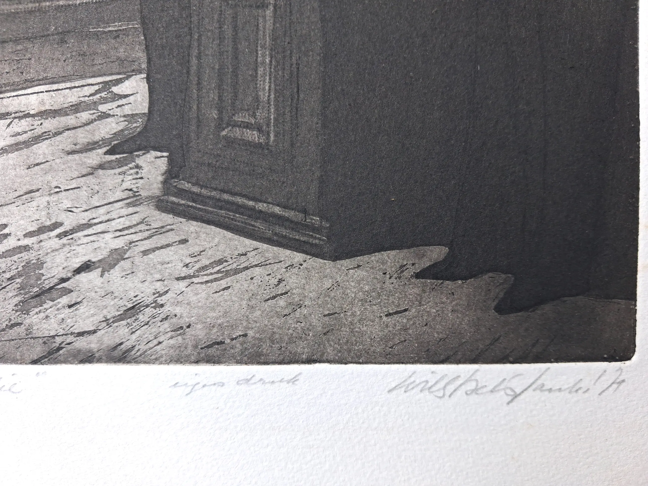 Ets/aquatint van Willie (Wies) Belinfante. Met potlood voorzien van signatuur, datering, oplagenummer en vermelding 'eigen druk.' De afbeelding meet 24 x 18 cm. De ets is in nieuwstaat.