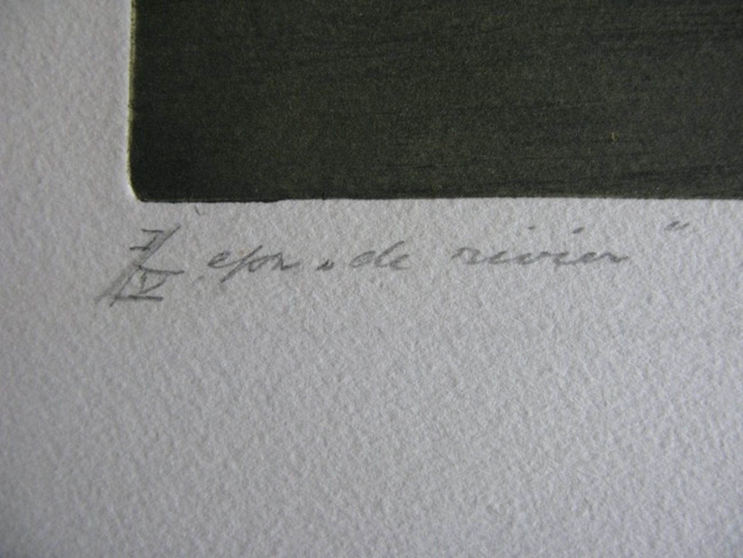 De afmeting van het blad waarop deze sfeervolle ets staat afgedrukt heeft een afmeting van 52 x 58. De afbeelding zelf meet 39 x 48. Met potlood is door de kunstenaar aangegeven dat het aangeboden werk de eerste afdruk is van een vijftal "epreuves". Het werk is rechtsonder door Willy Belinfante gesigneerd.