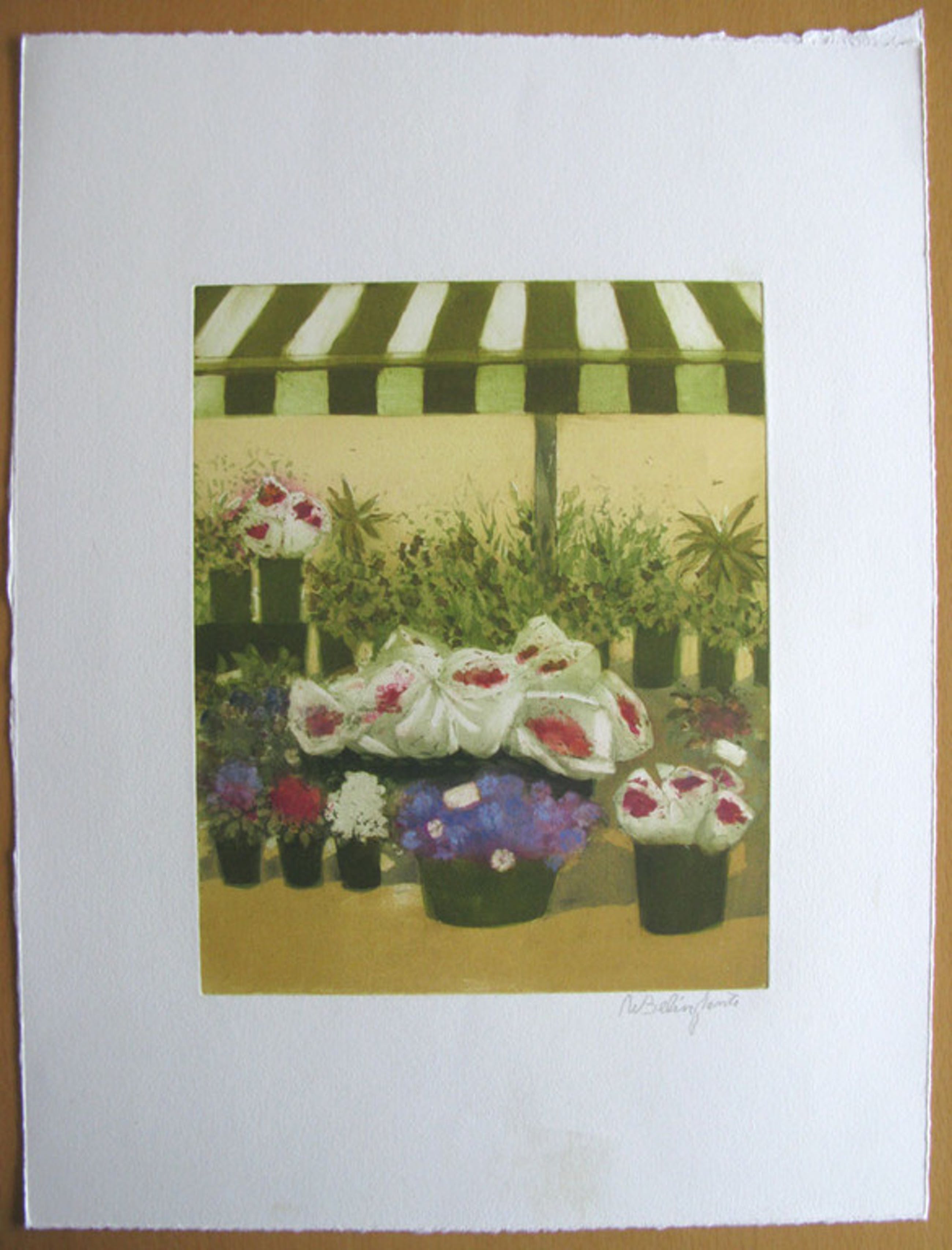 Deze kleurrijke ets heeft een afmeting van 30 x 24 en het gehele blad meet 50 x 39. Onder de afbeelding staat alleen de handtekening van de kunstenaar, die duidelijk later is geplaatst. Titel, oplage en jaartal zijn niet vermeld. Aan de uiterste onderzijde van het blad zit een lichte vlek. Door het blad in een passe-partout te plaatsen zal dat niet zichtbaar zijn. De conditie van de afbeelding is uitstekend, door de lichte vlek is de gehele conditie van de kleurets goed. Verzending is aangetekend via PostNL.