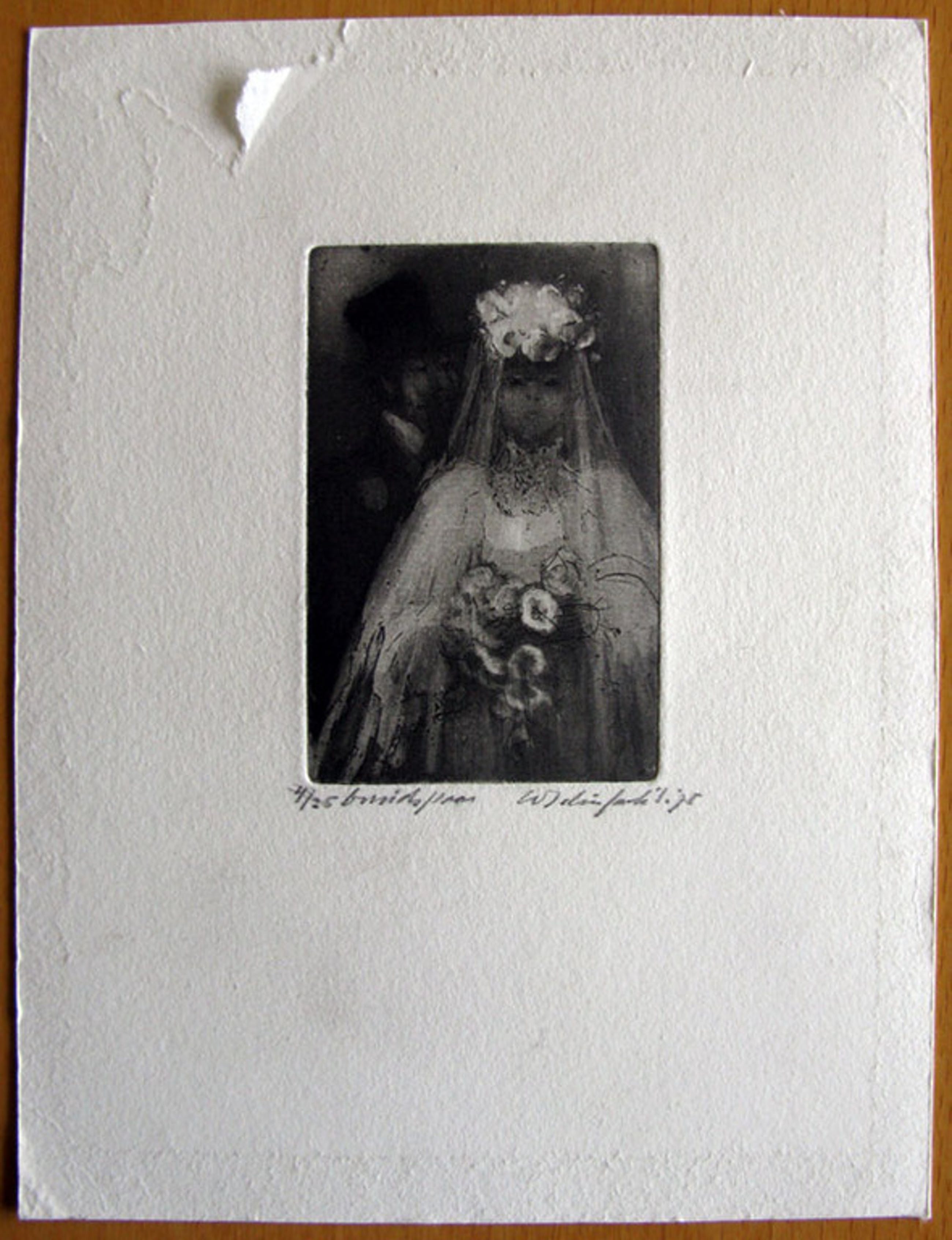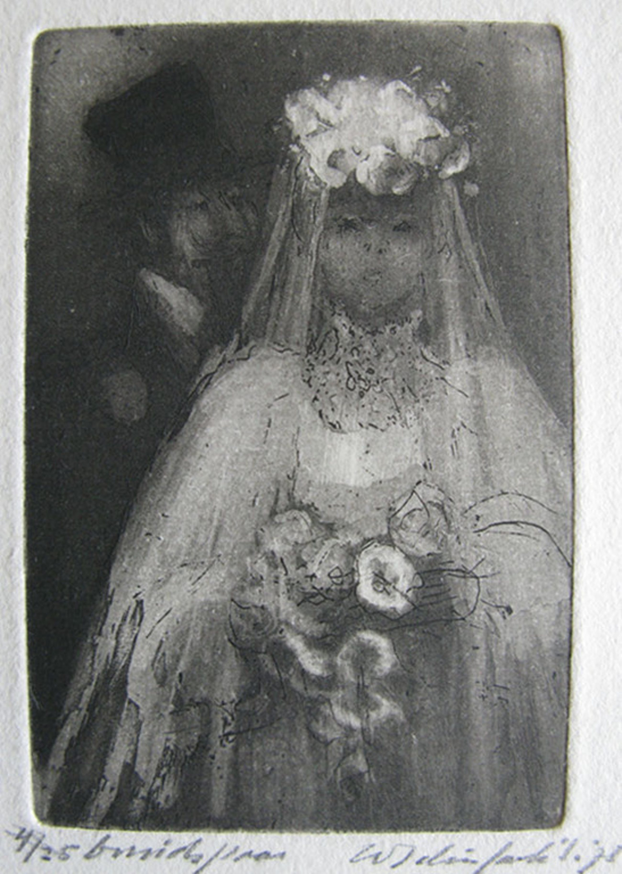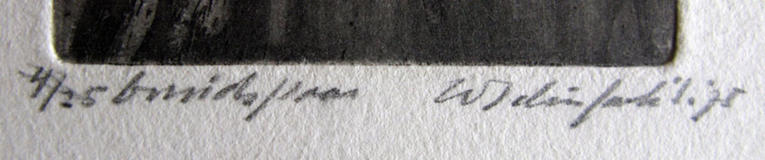 Een zeer kleine ets, de afmeting van de afbeelding is 9 x 6, hetblad meet 20 x 16. De ets is door de kunstenaar van titel, oplage 4/25 en handtekening voorzien. Het jaartal is 1975. Zoals op de afbeelding van het blad is te zien zit er aan de bovenzijde van het blad een beschadiging. Door het plaatsen van de ets in een passe-partout is dat niet meer zichtbaar.